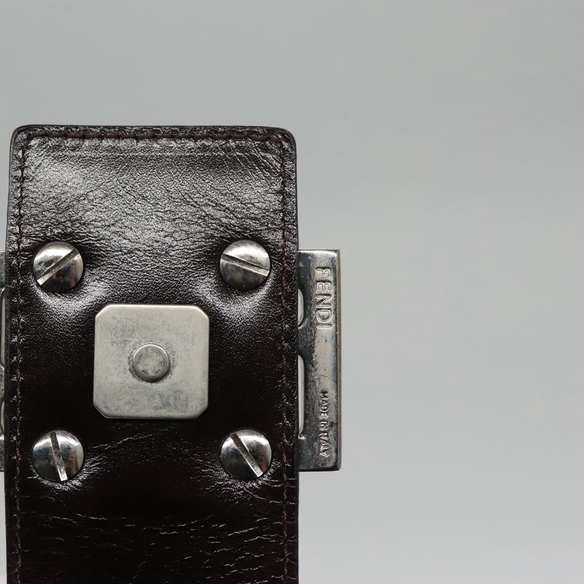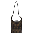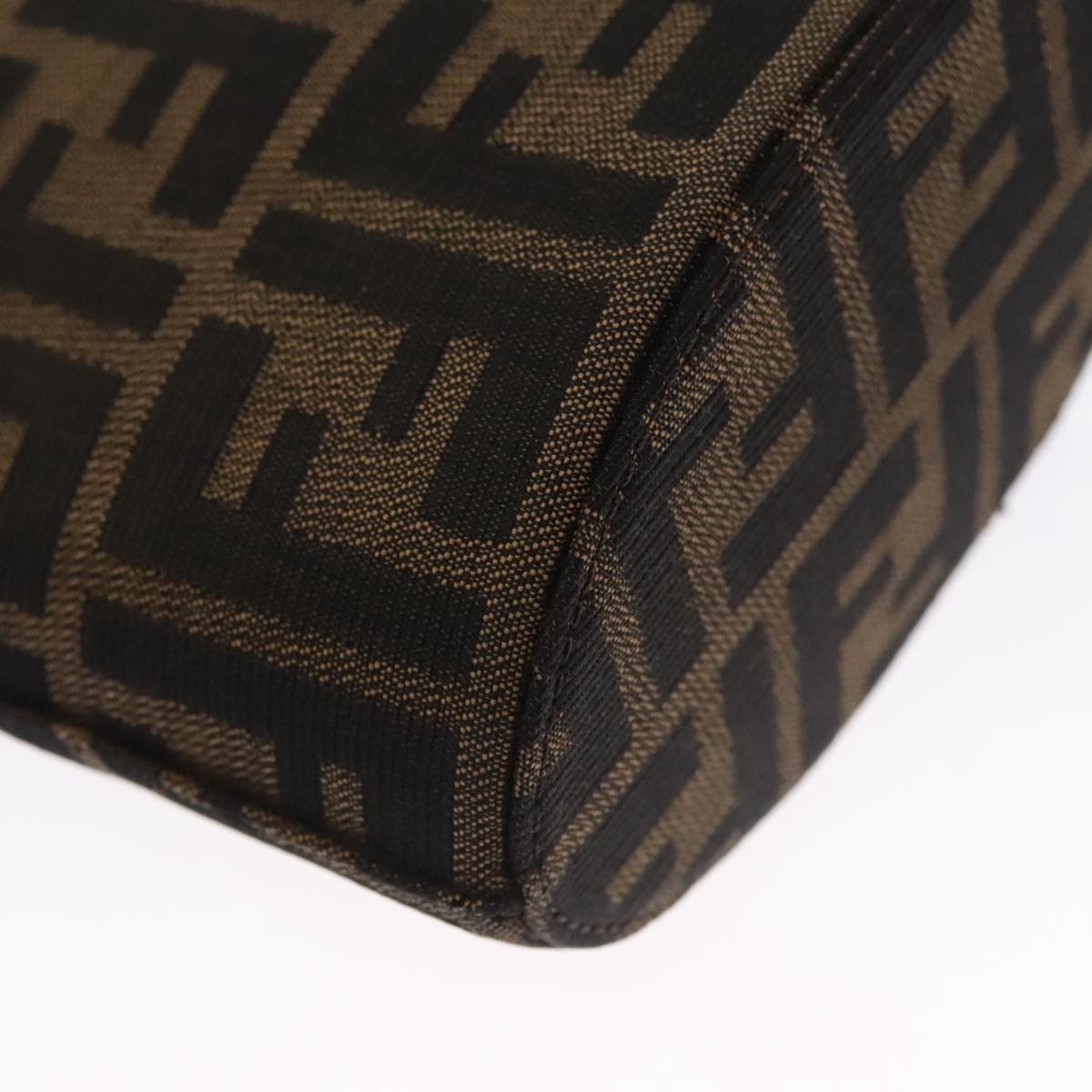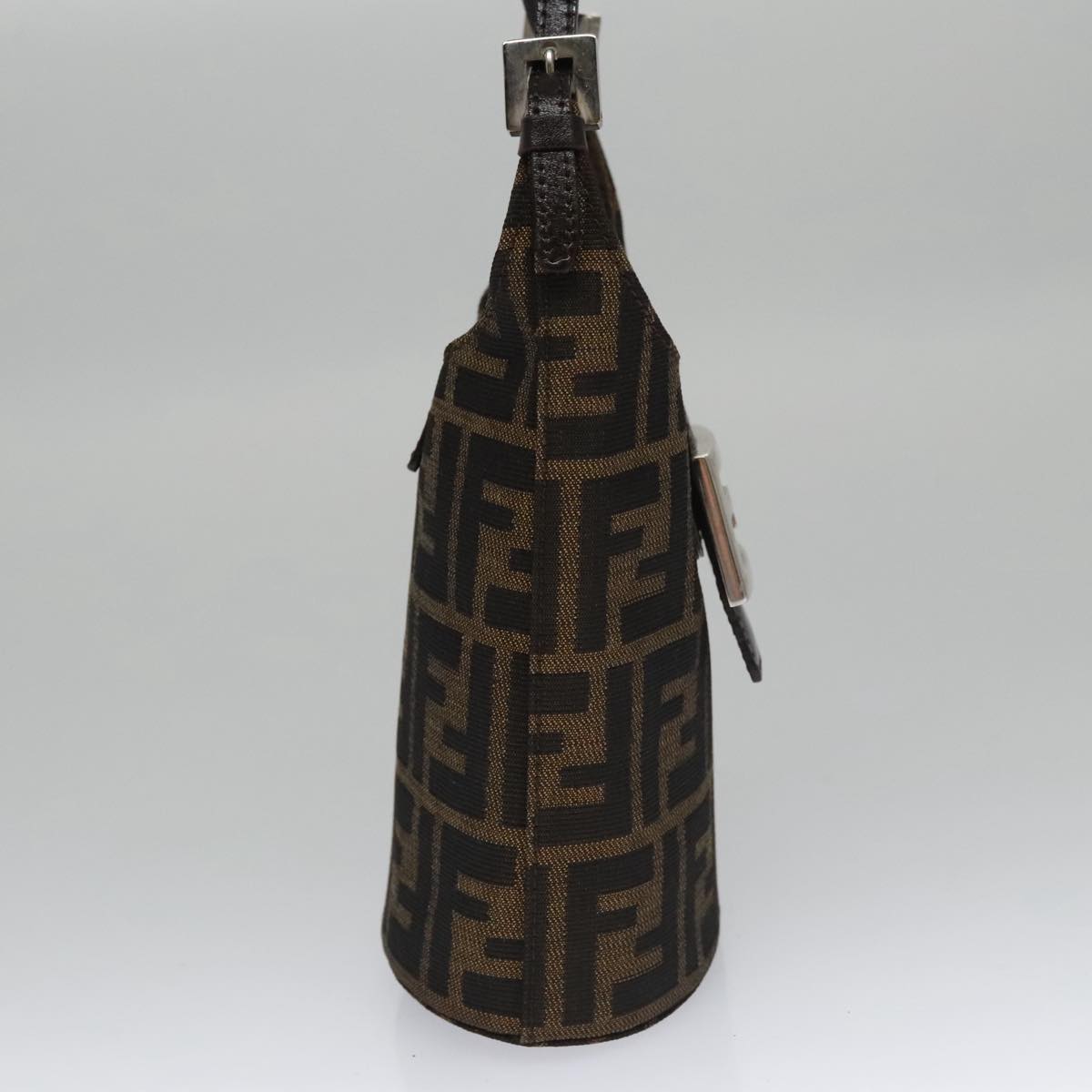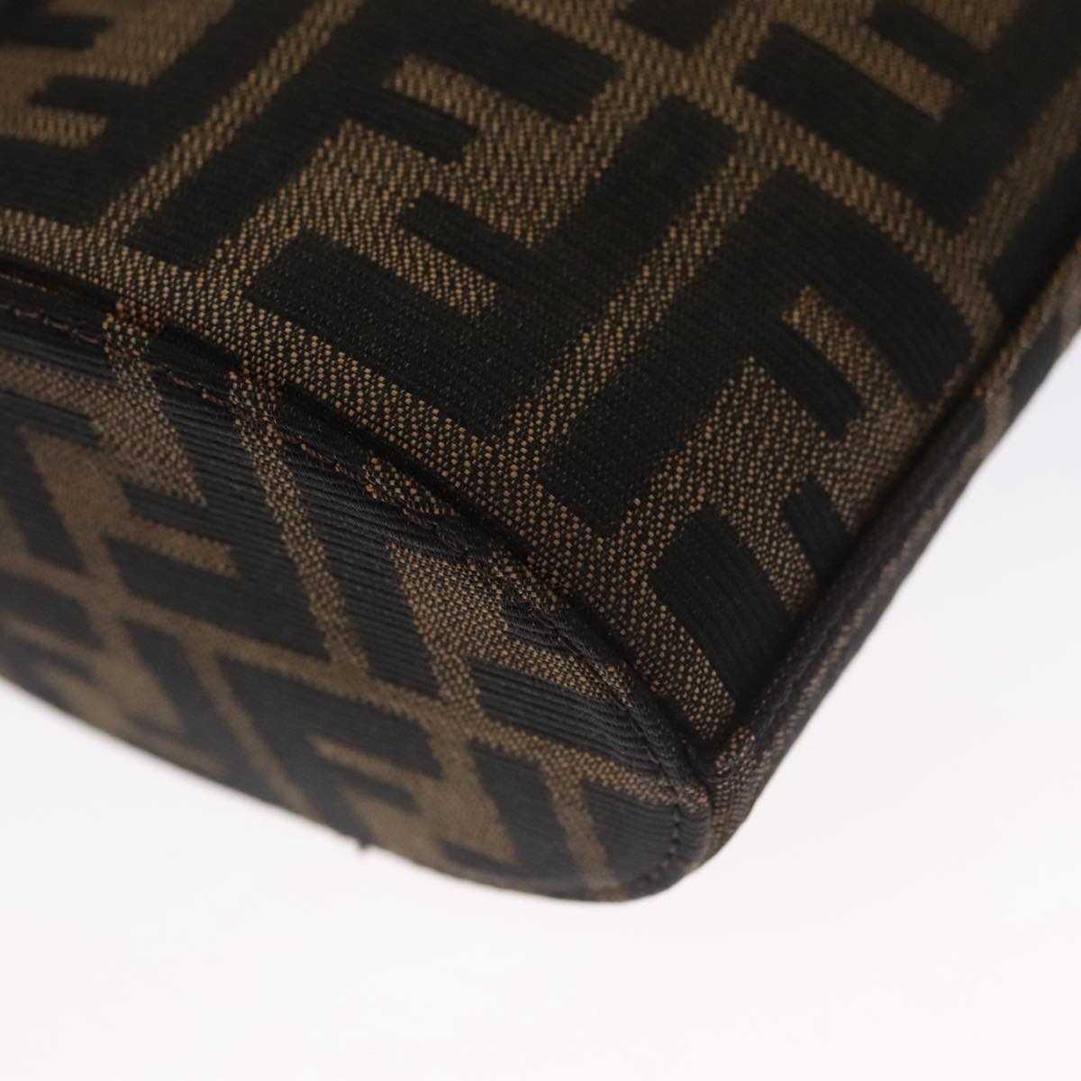 FENDI Zucca Canvas Shoulder Bag Brown Black Silver Auth 102811V