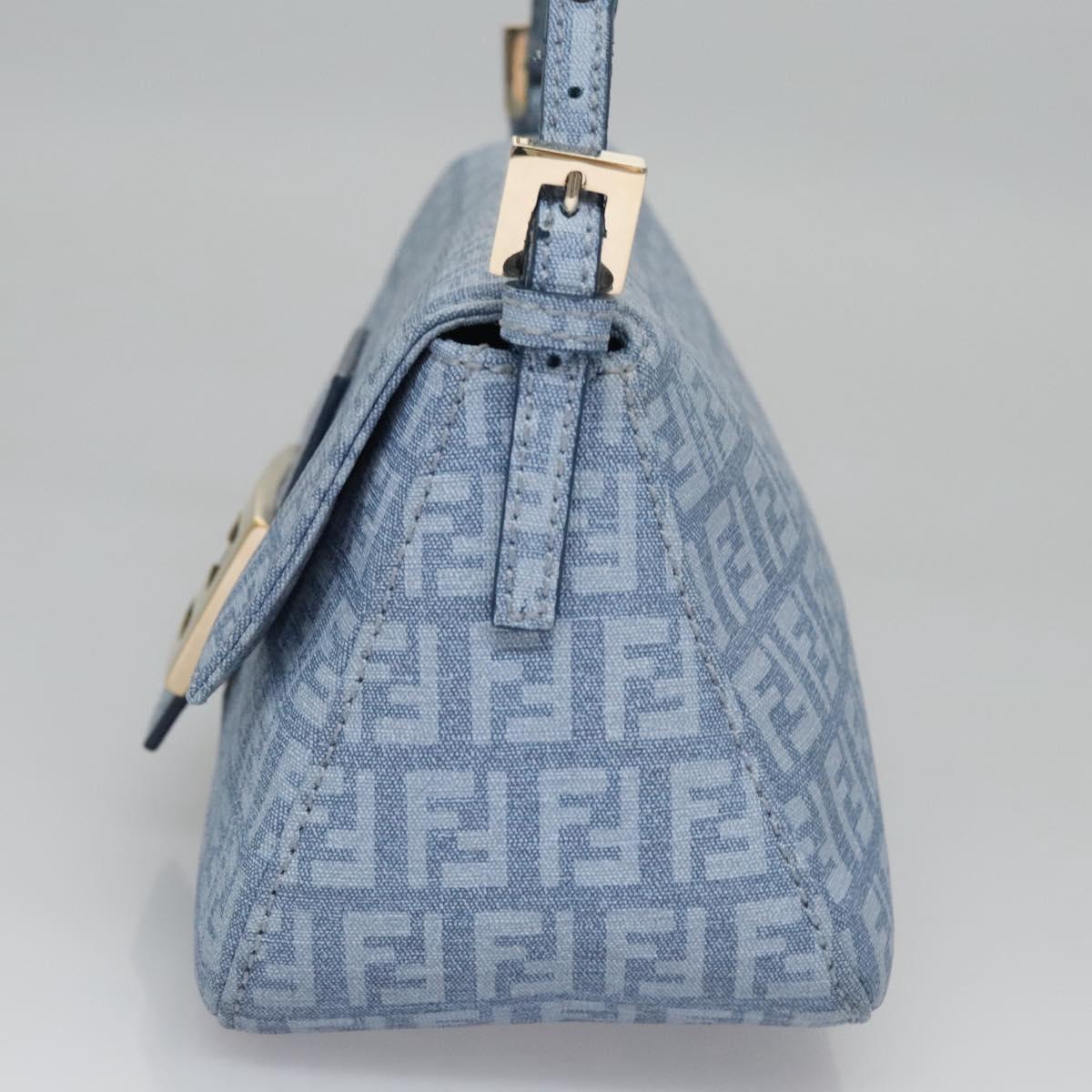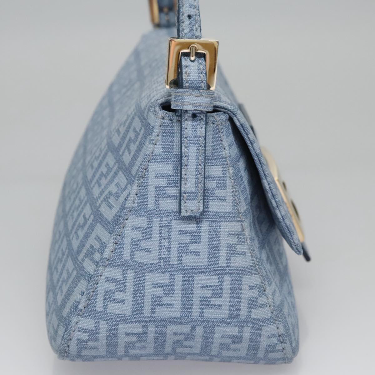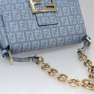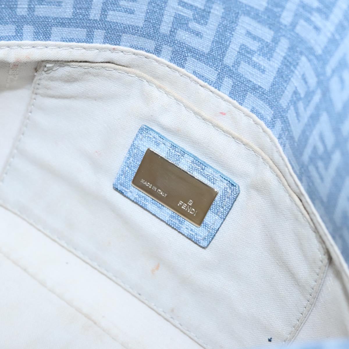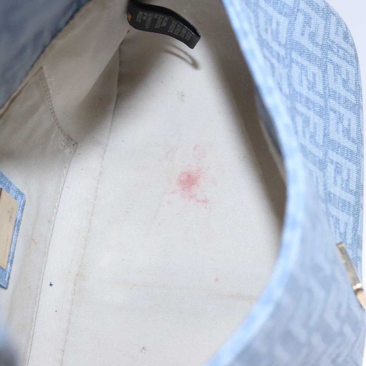 FENDI Zucchino Canvas Mini Mamma Baguette Bag PVC Baby Blue Gold Auth BD235M