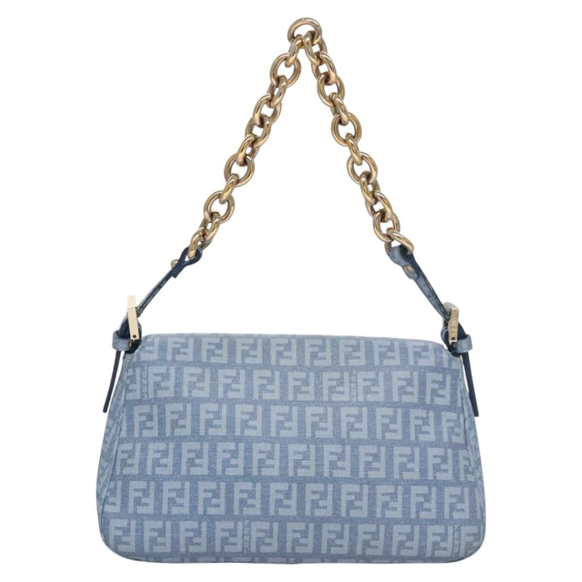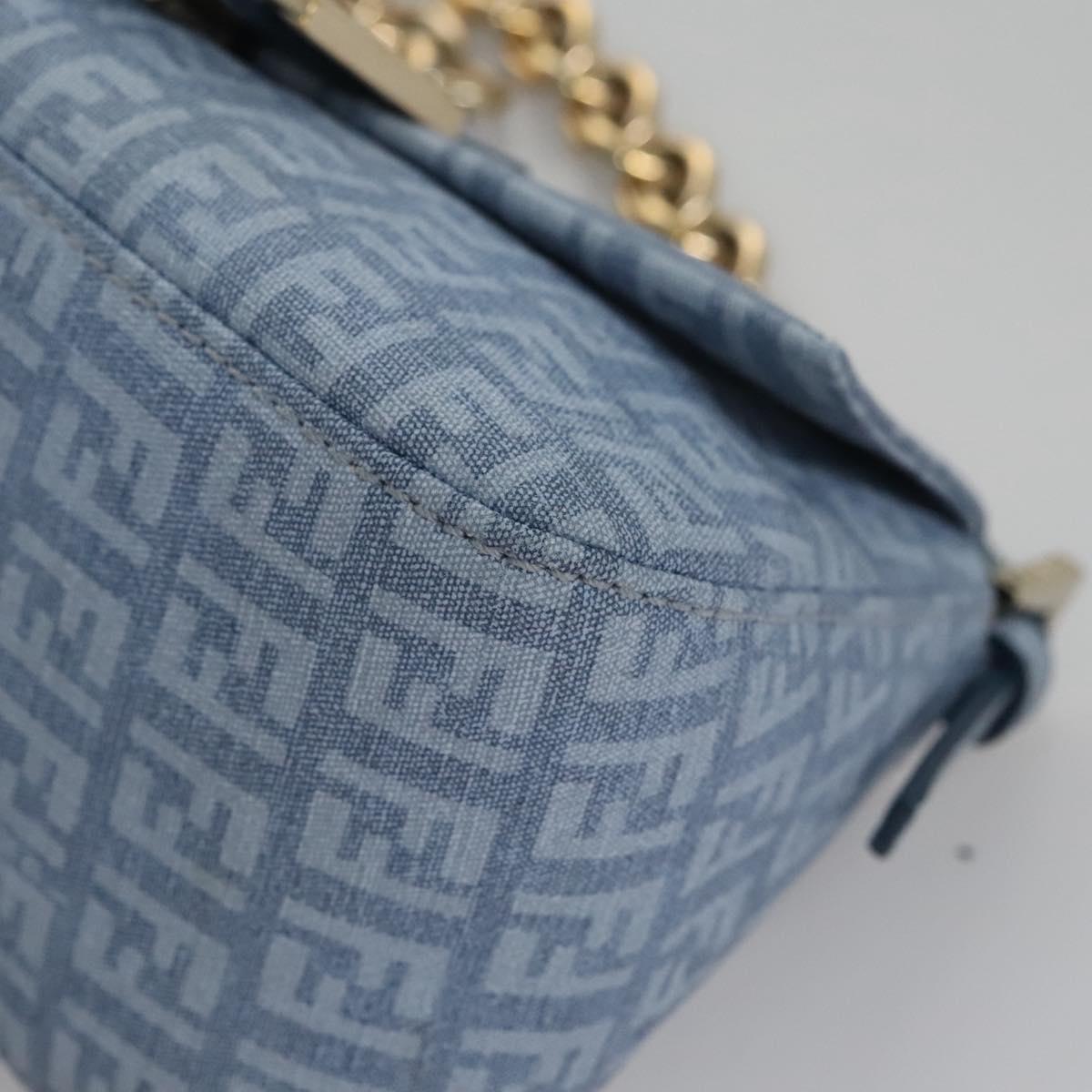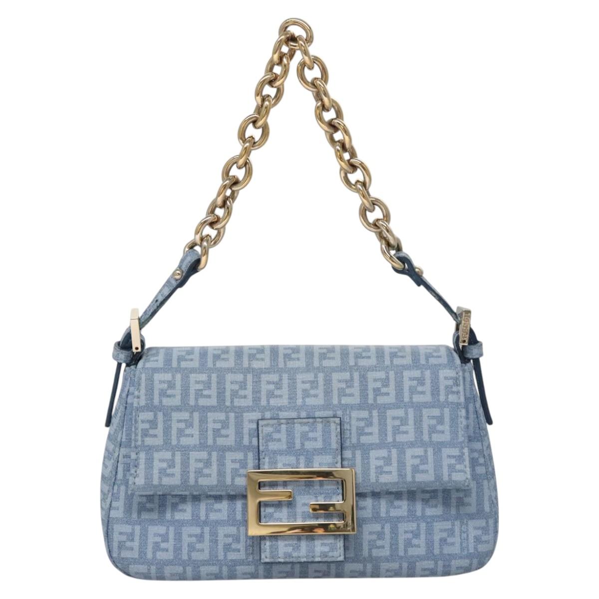 FENDI Zucchino Canvas Mini Mamma Baguette Bag PVC Baby Blue Gold Auth BD235M