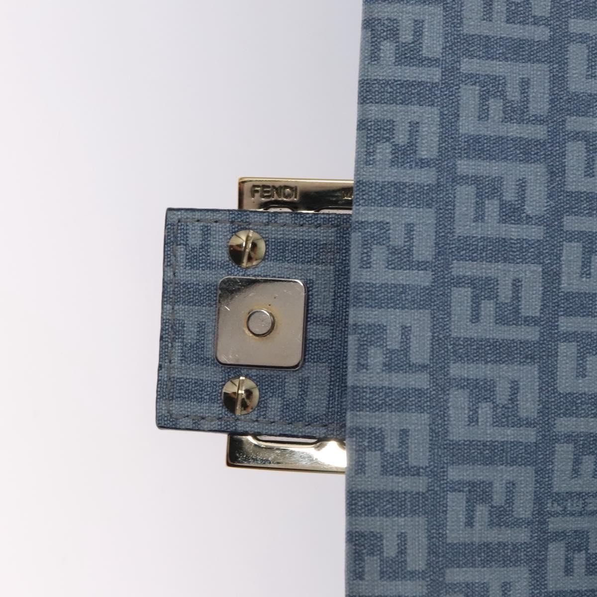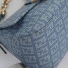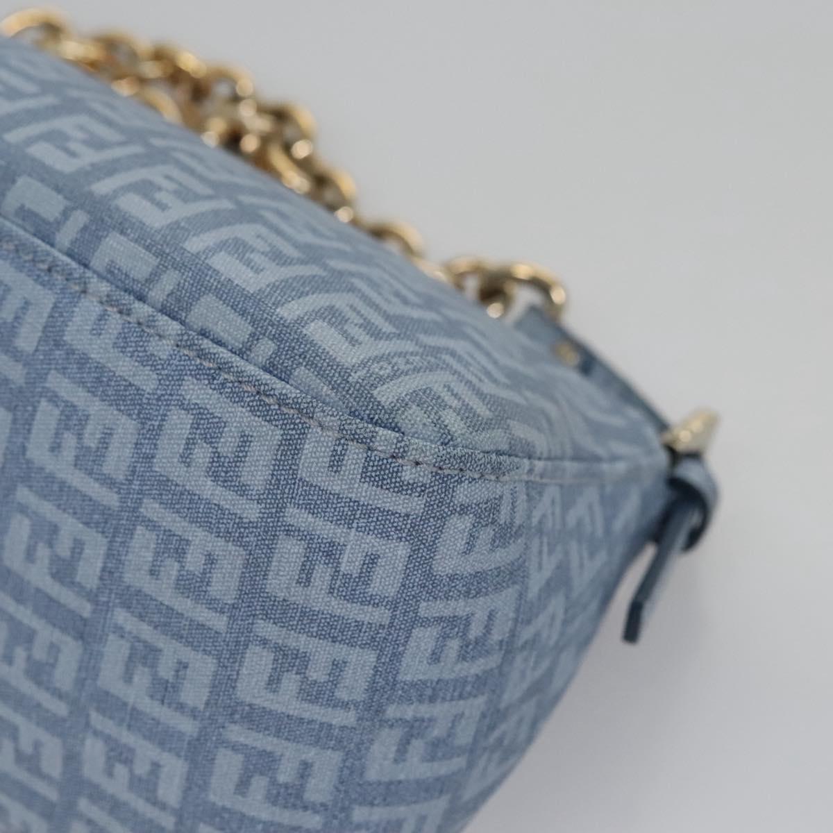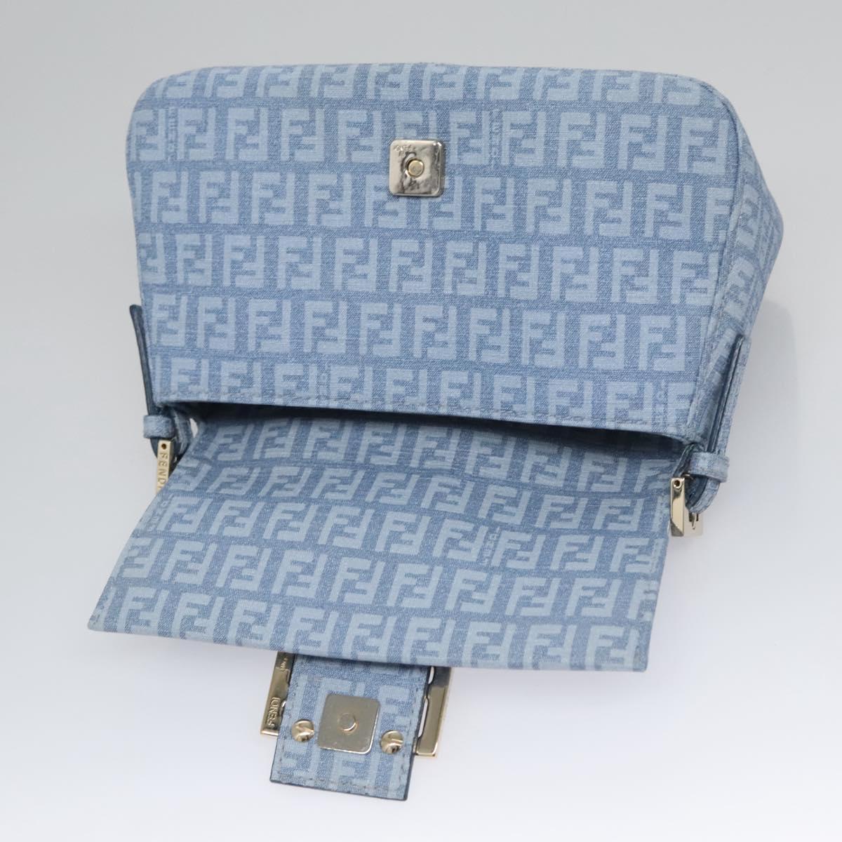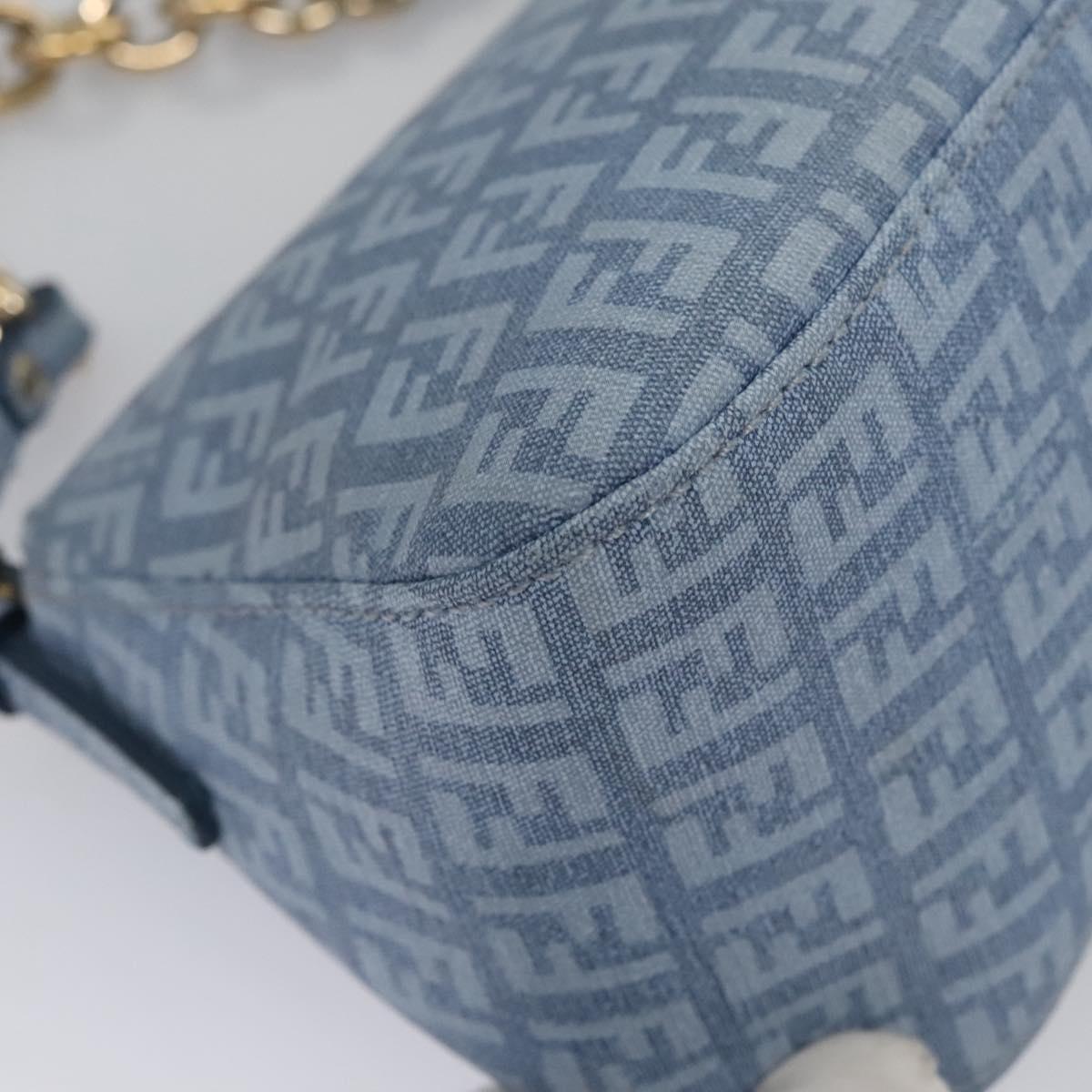 FENDI Zucchino Canvas Mini Mamma Baguette Bag PVC Baby Blue Gold Auth BD235M