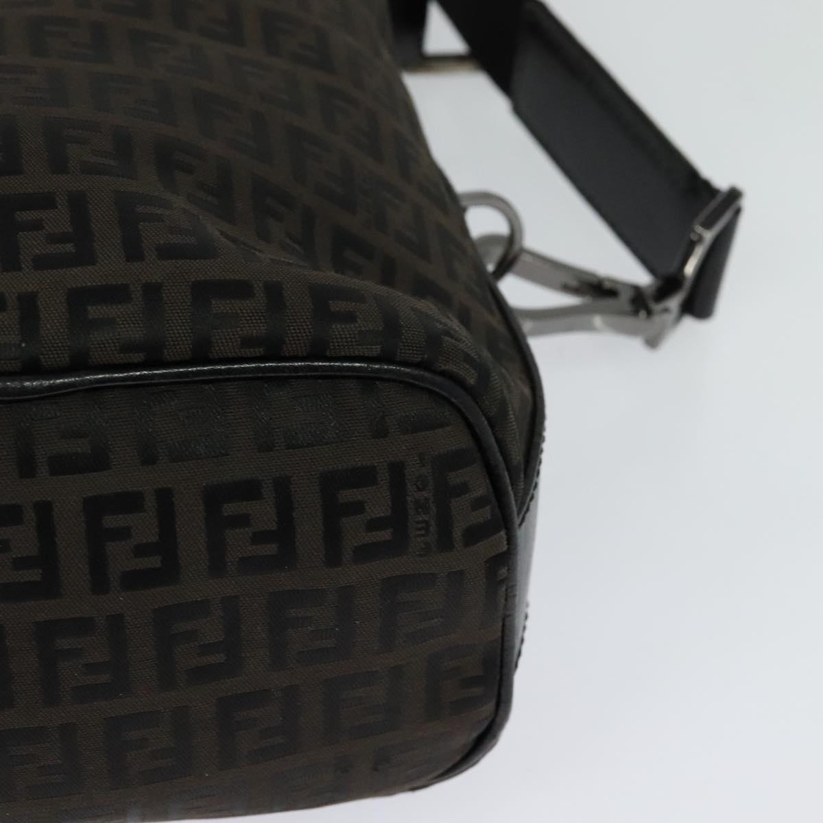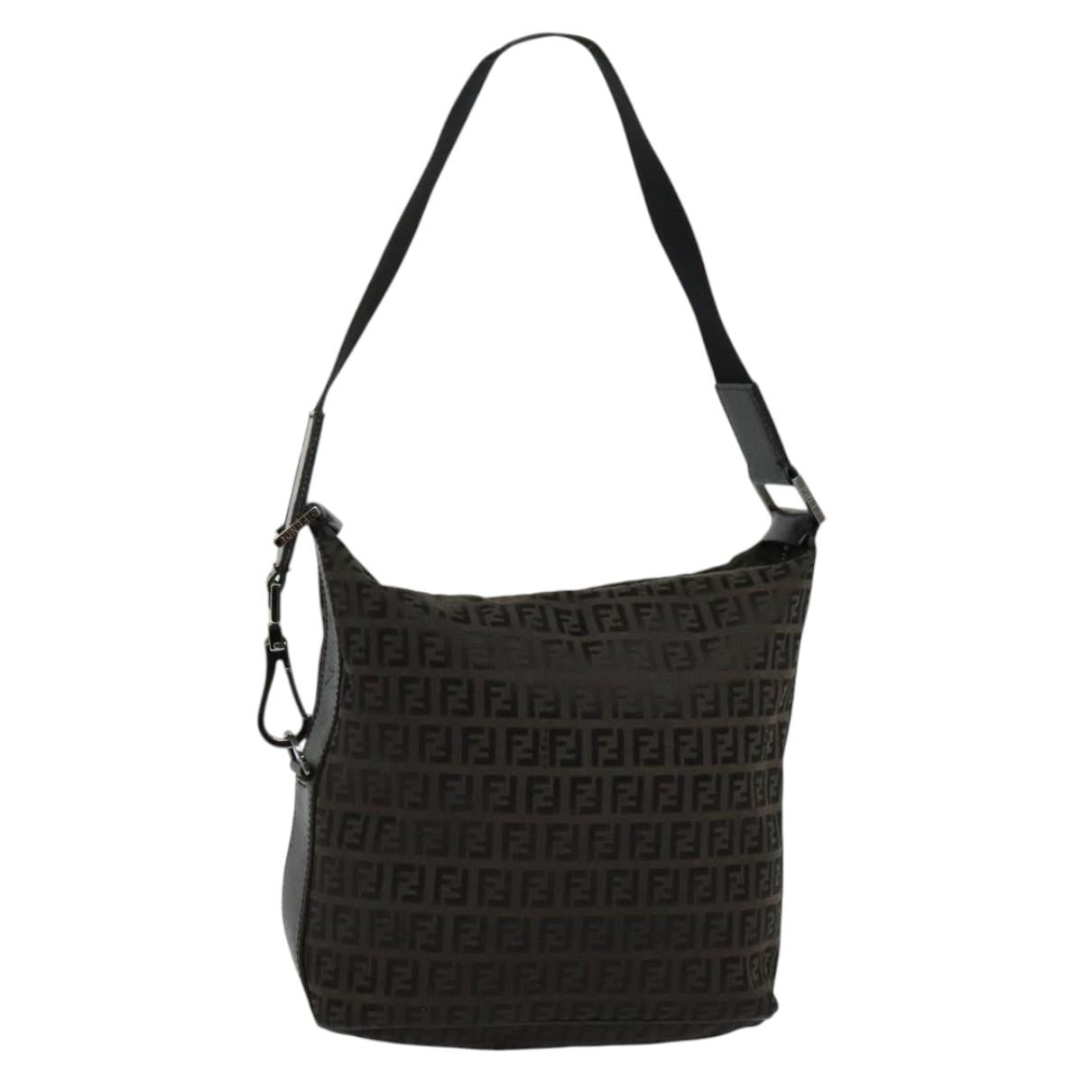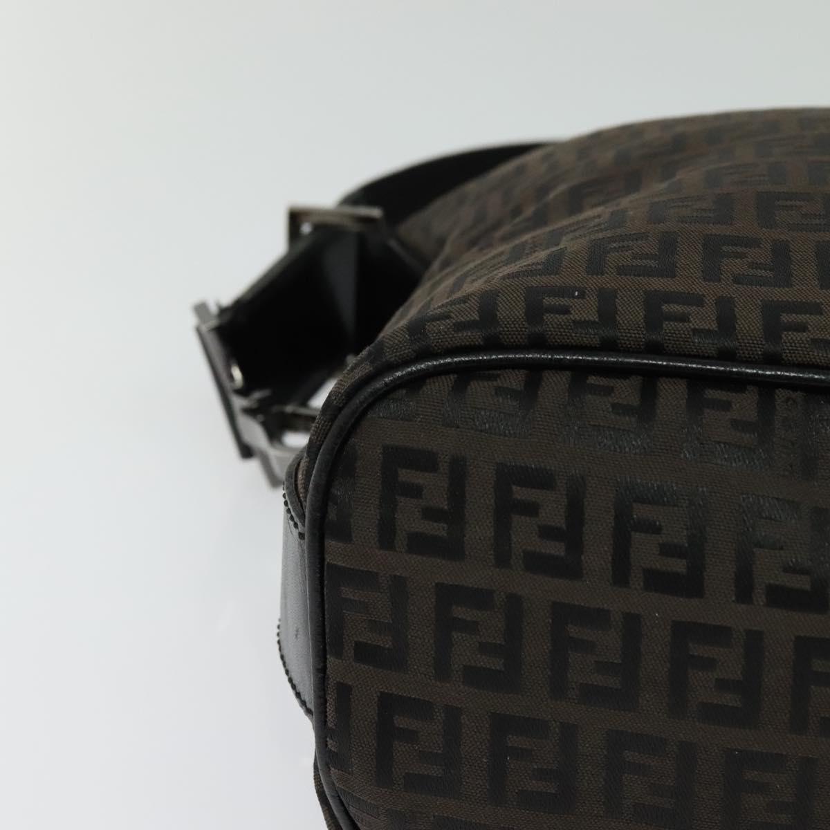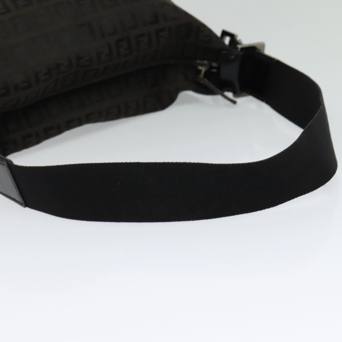 FENDI Zucchino Canvas Shoulder Bag Brown Silver Auth am8251V