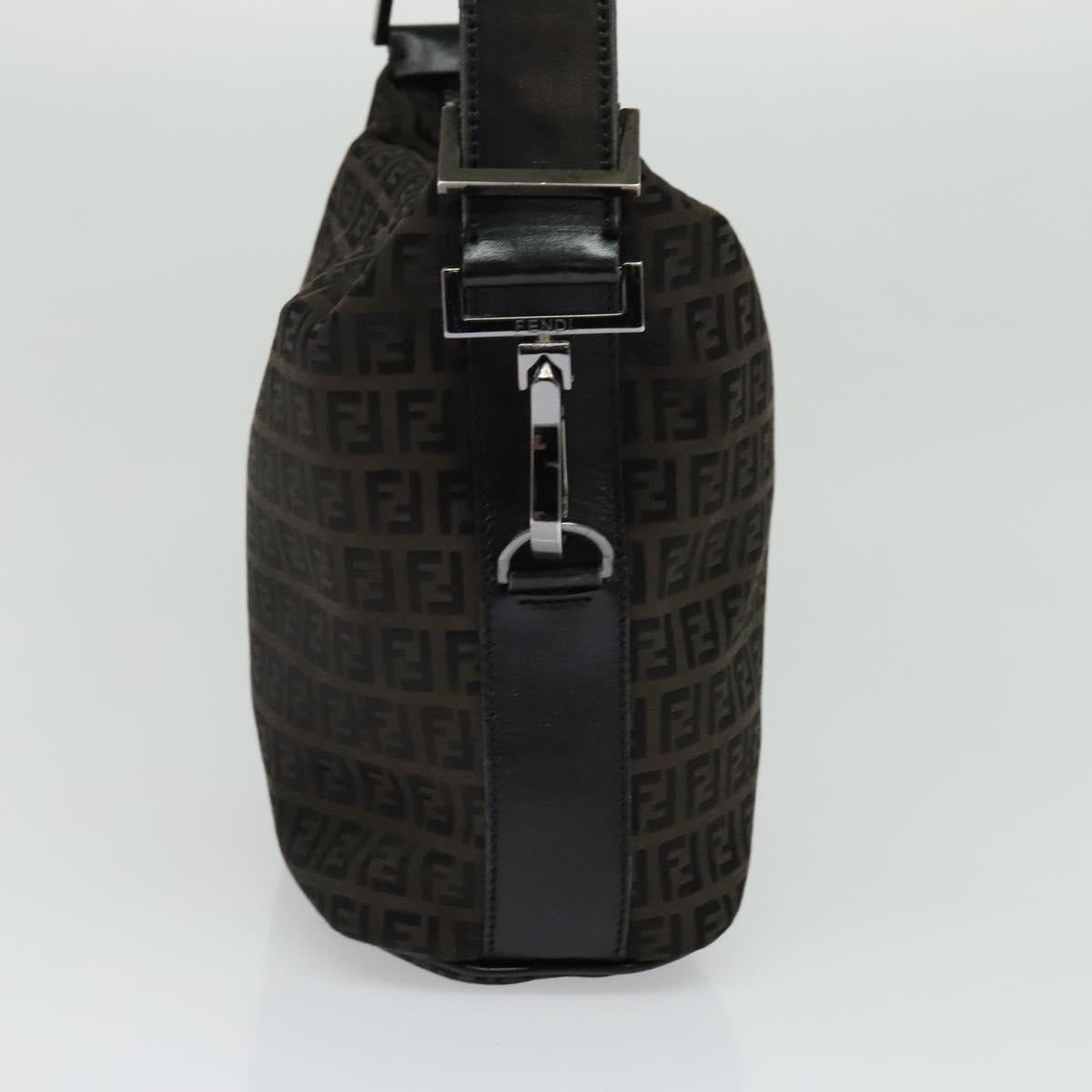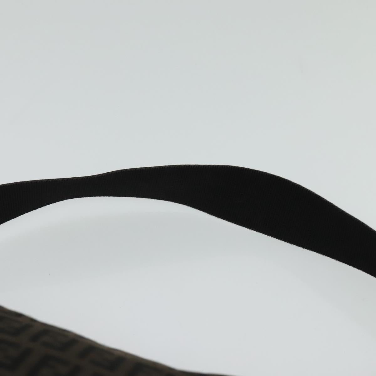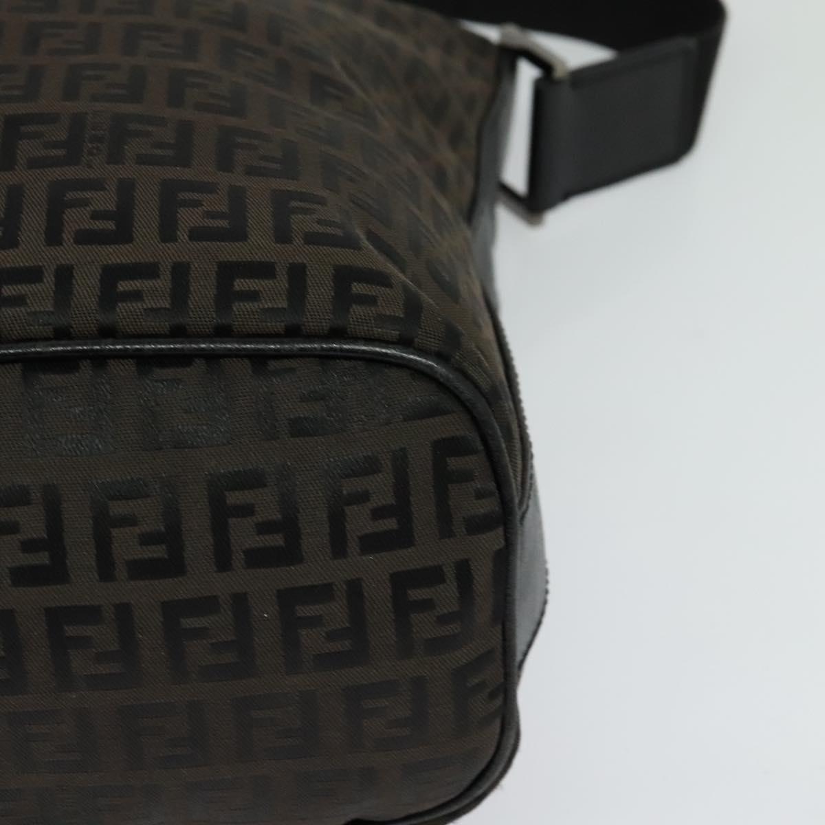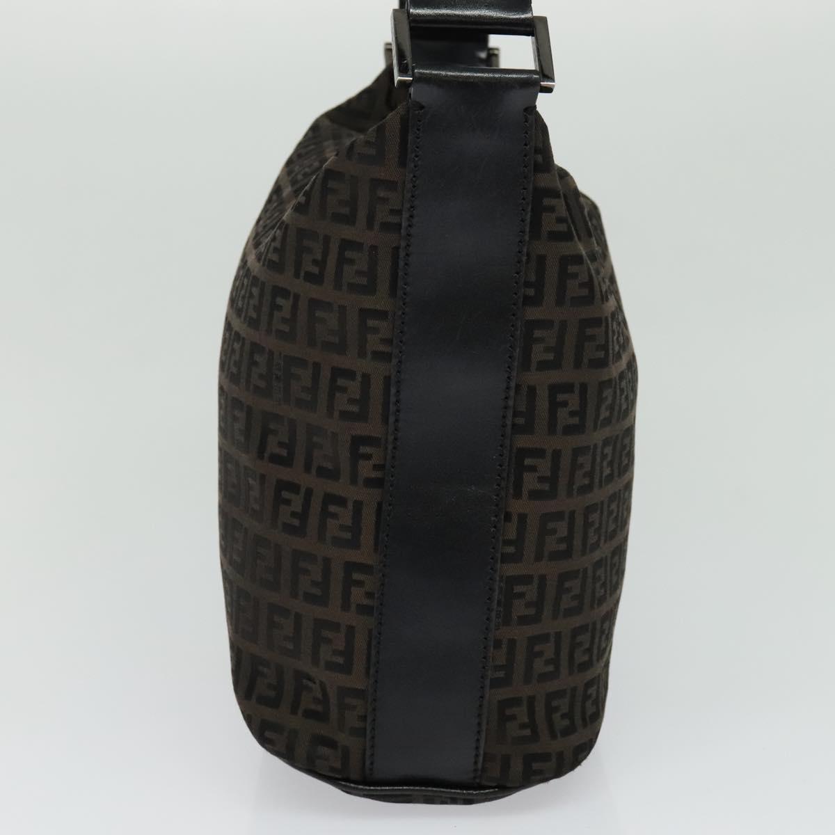 FENDI Zucchino Canvas Shoulder Bag Brown Silver Auth am8251V