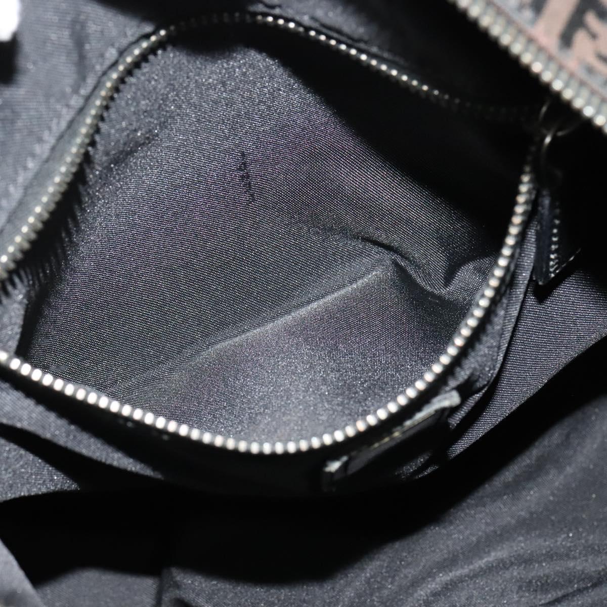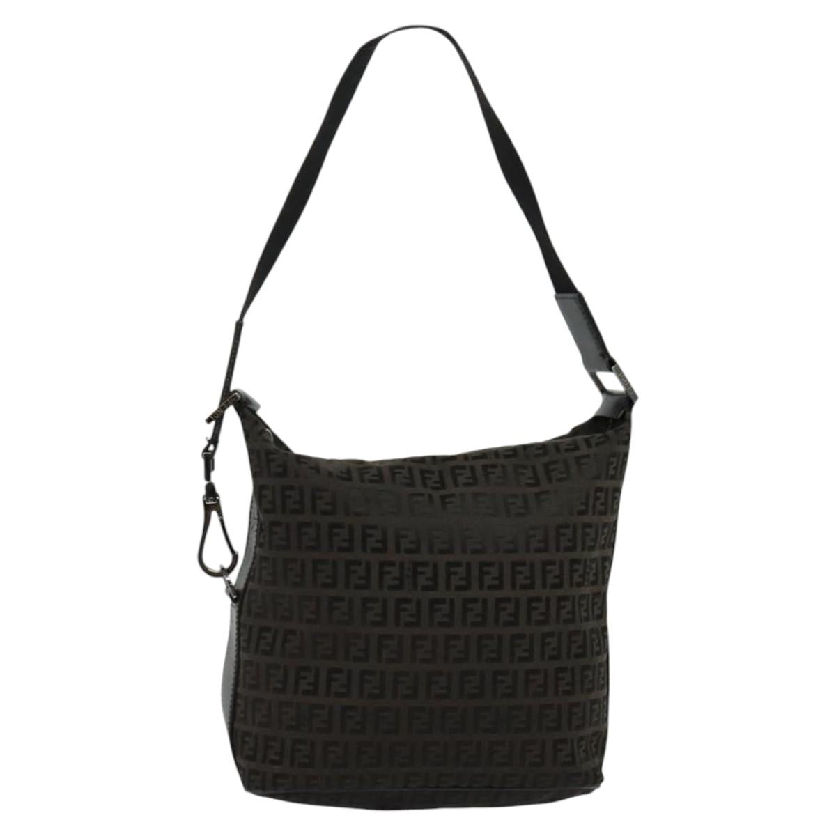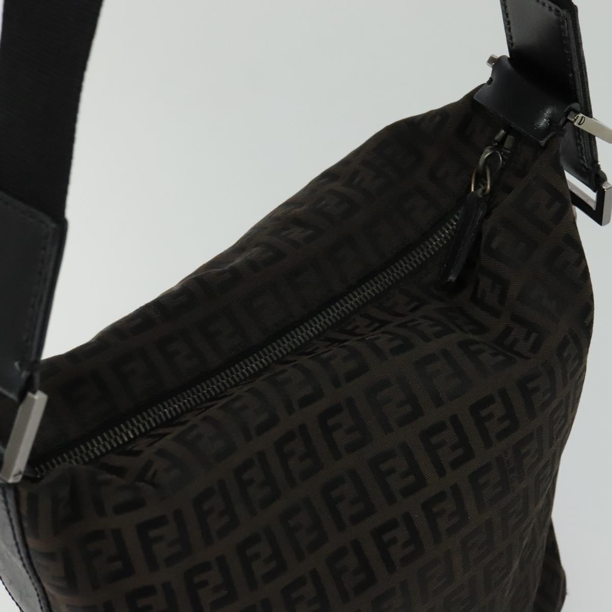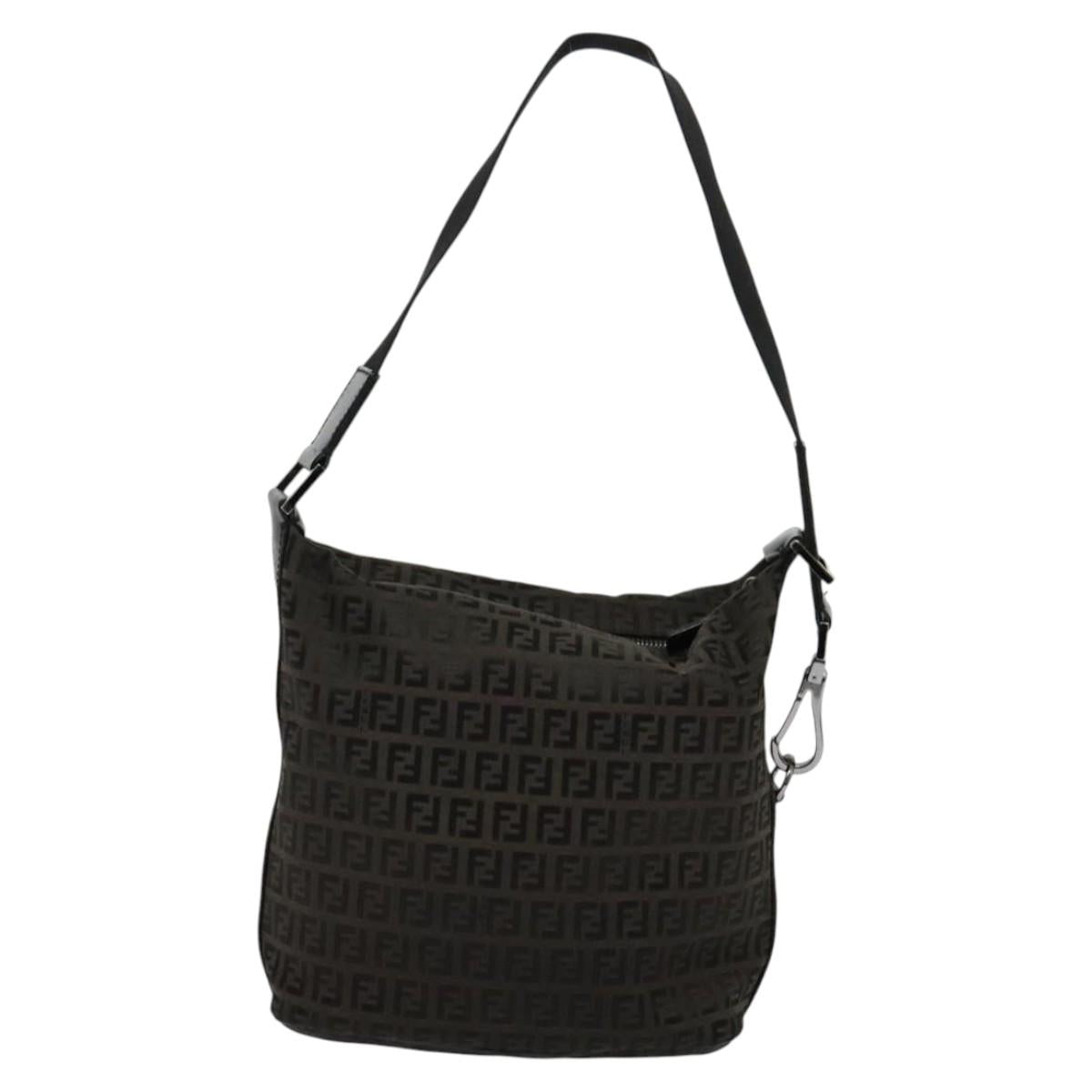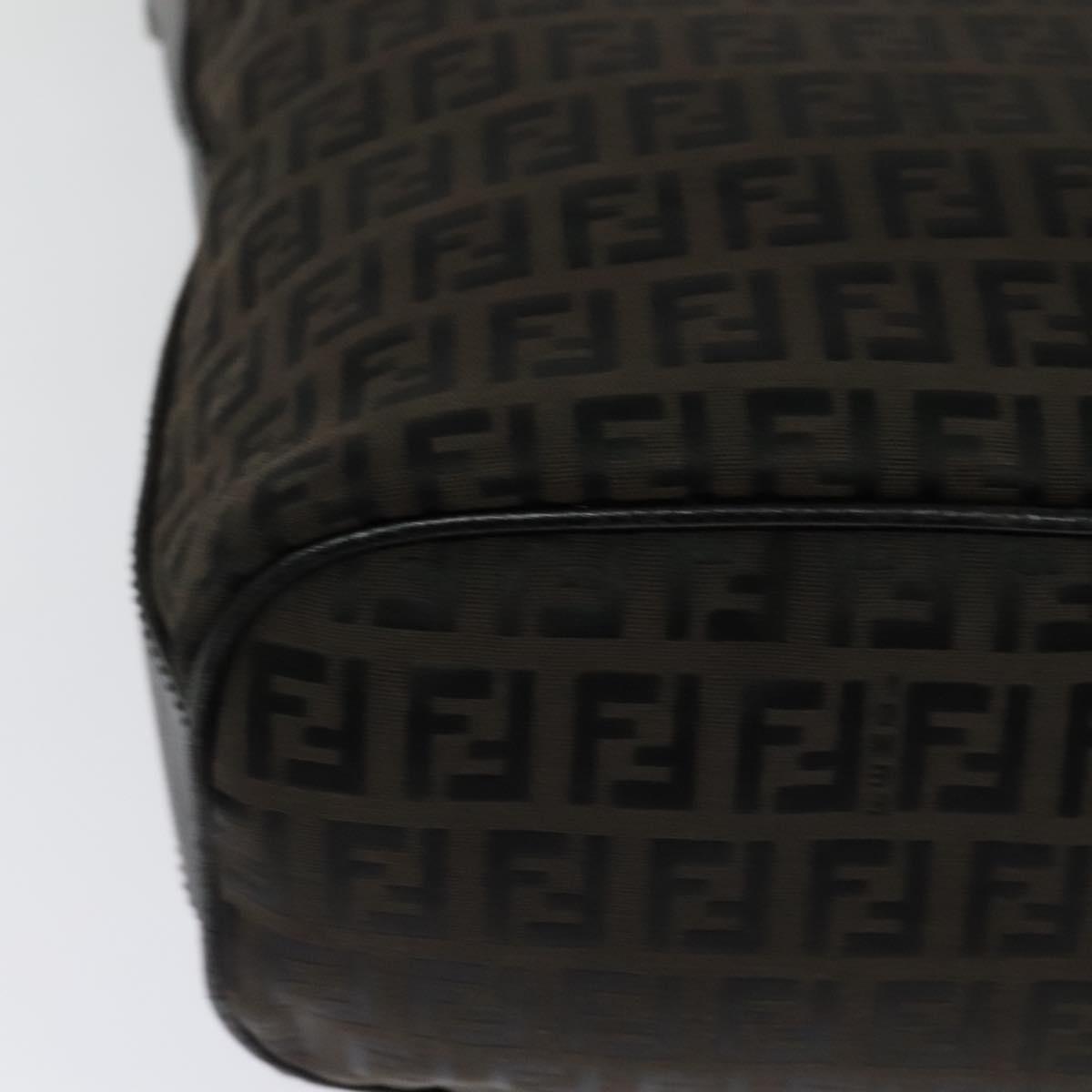 FENDI Zucchino Canvas Shoulder Bag Brown Silver Auth am8251V