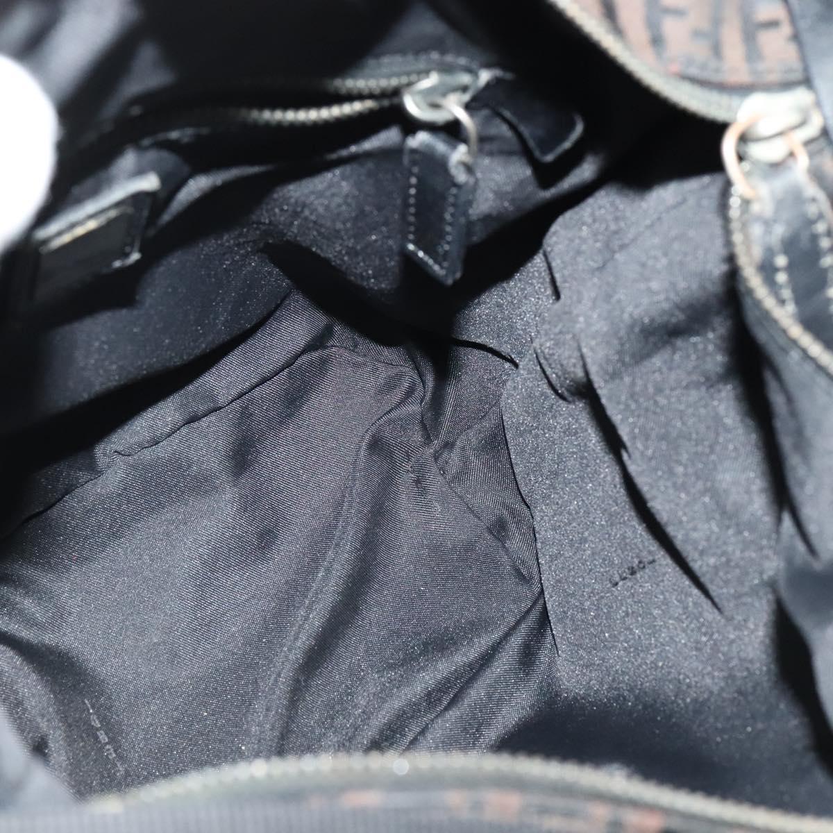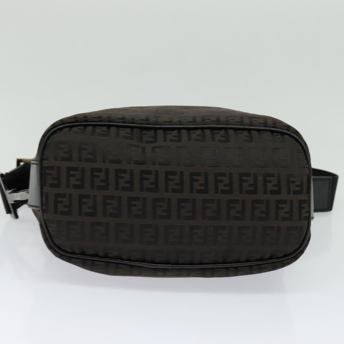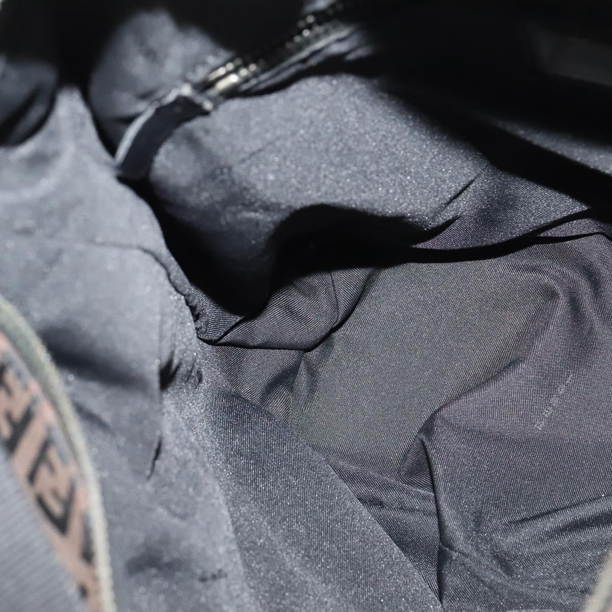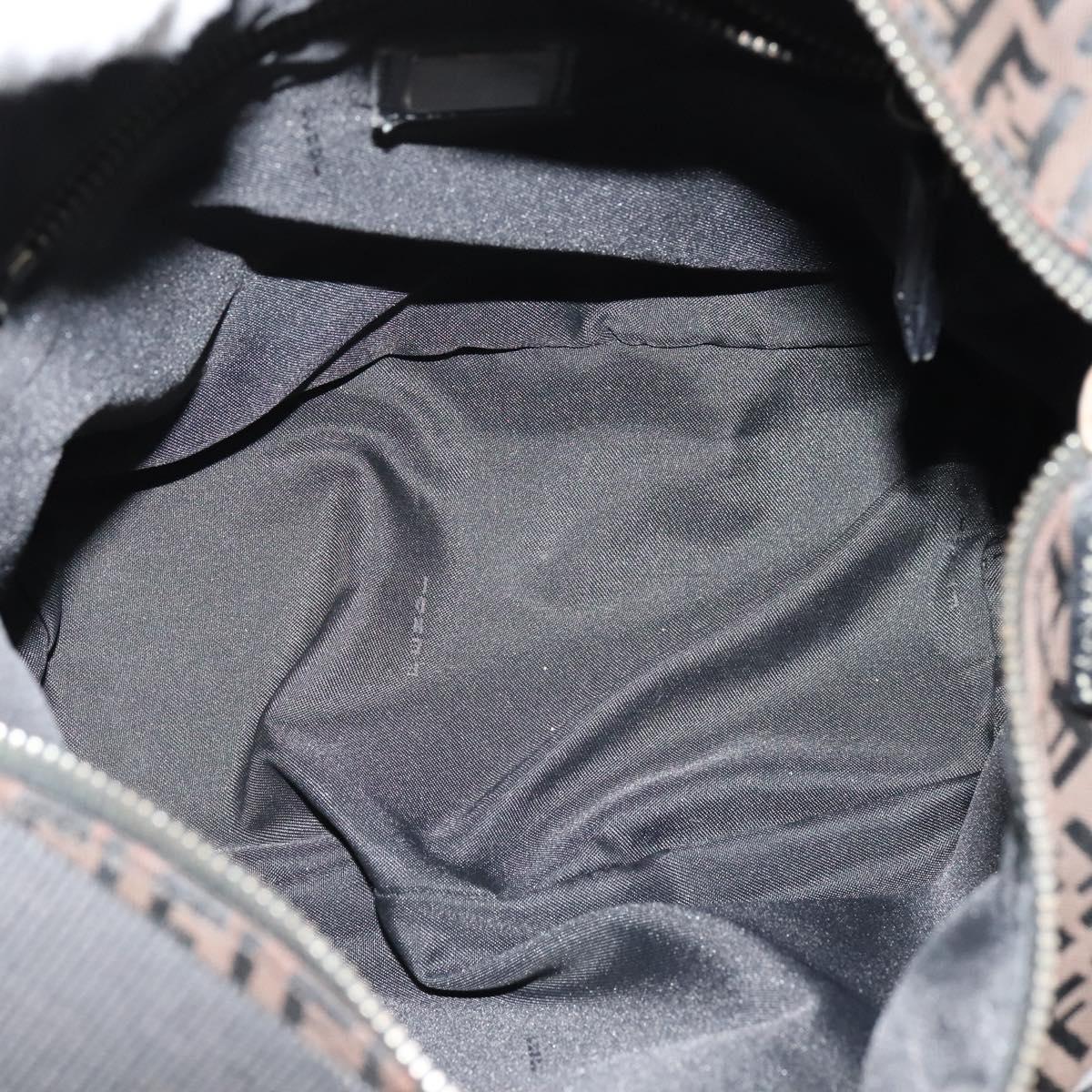 FENDI Zucchino Canvas Shoulder Bag Brown Silver Auth am8251V