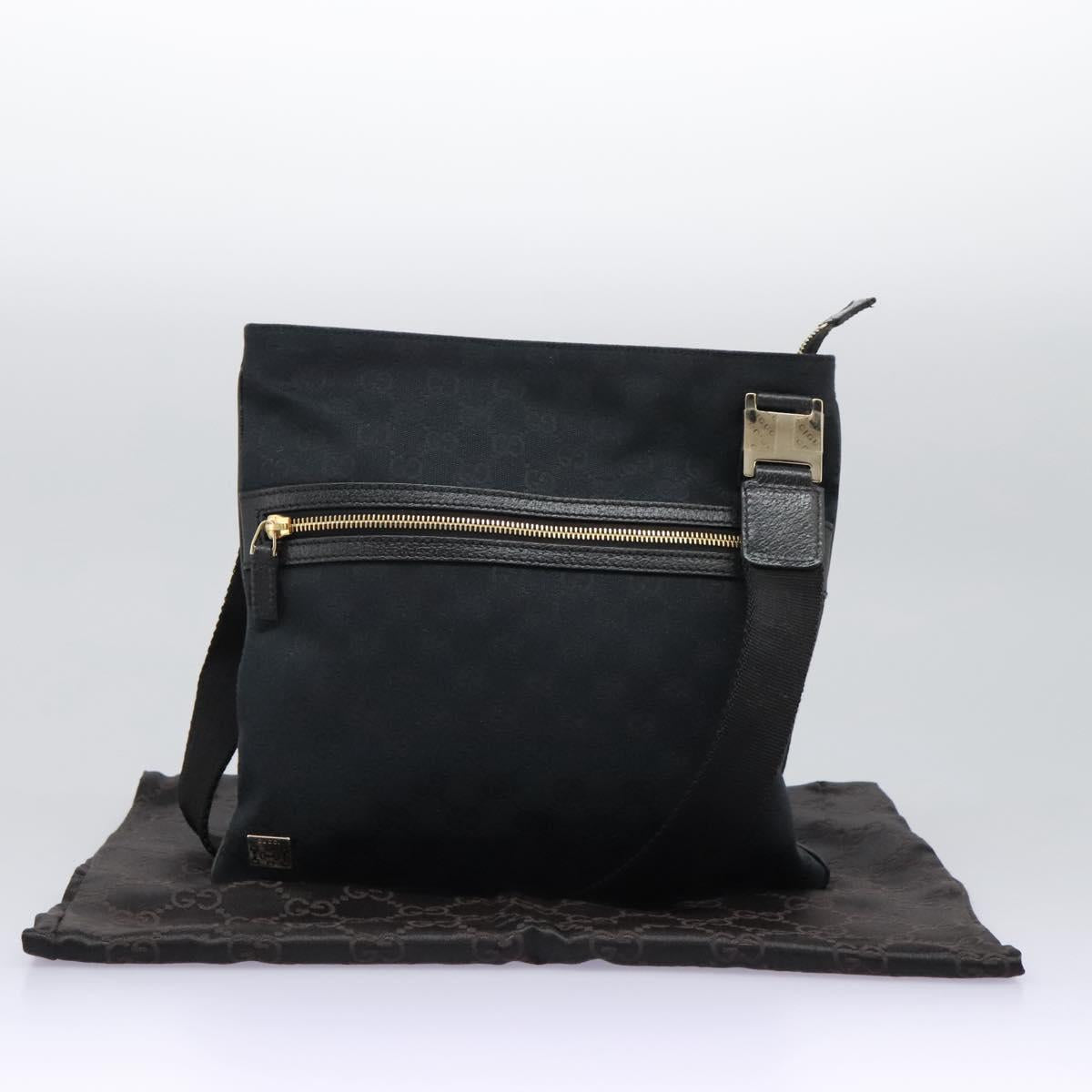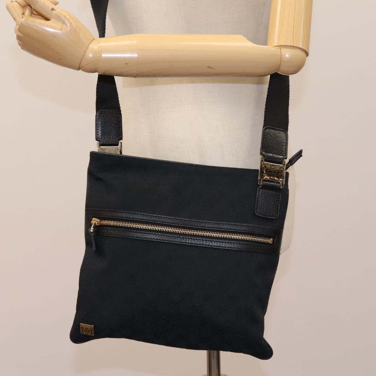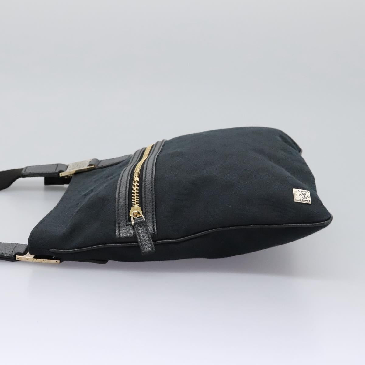 GUCCI GG Canvas Shoulder Bag Black Gold 145809 Auth PP365AV