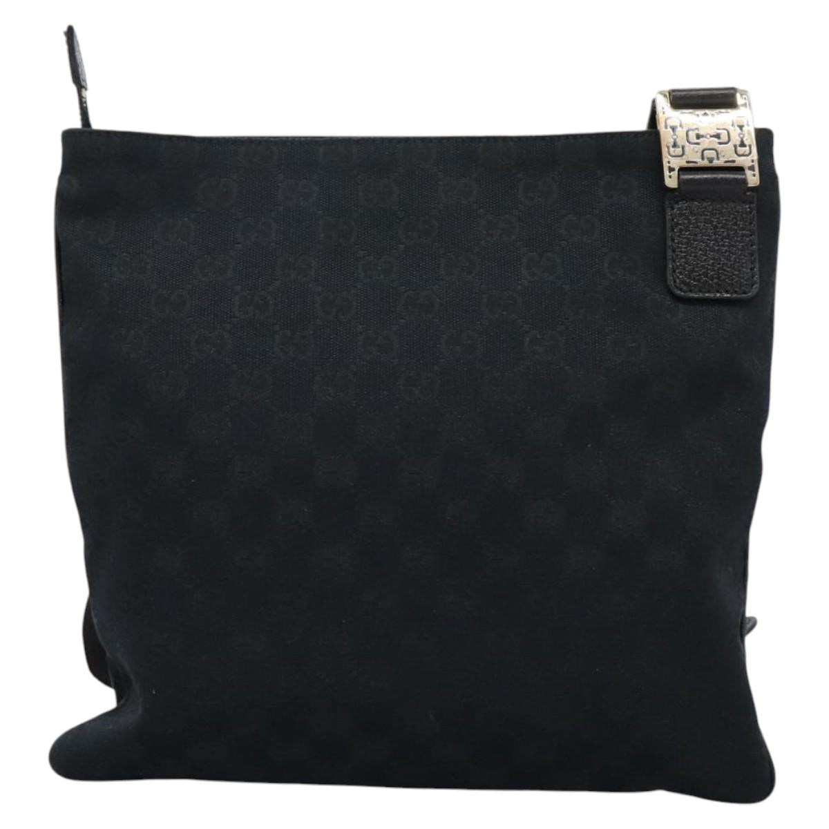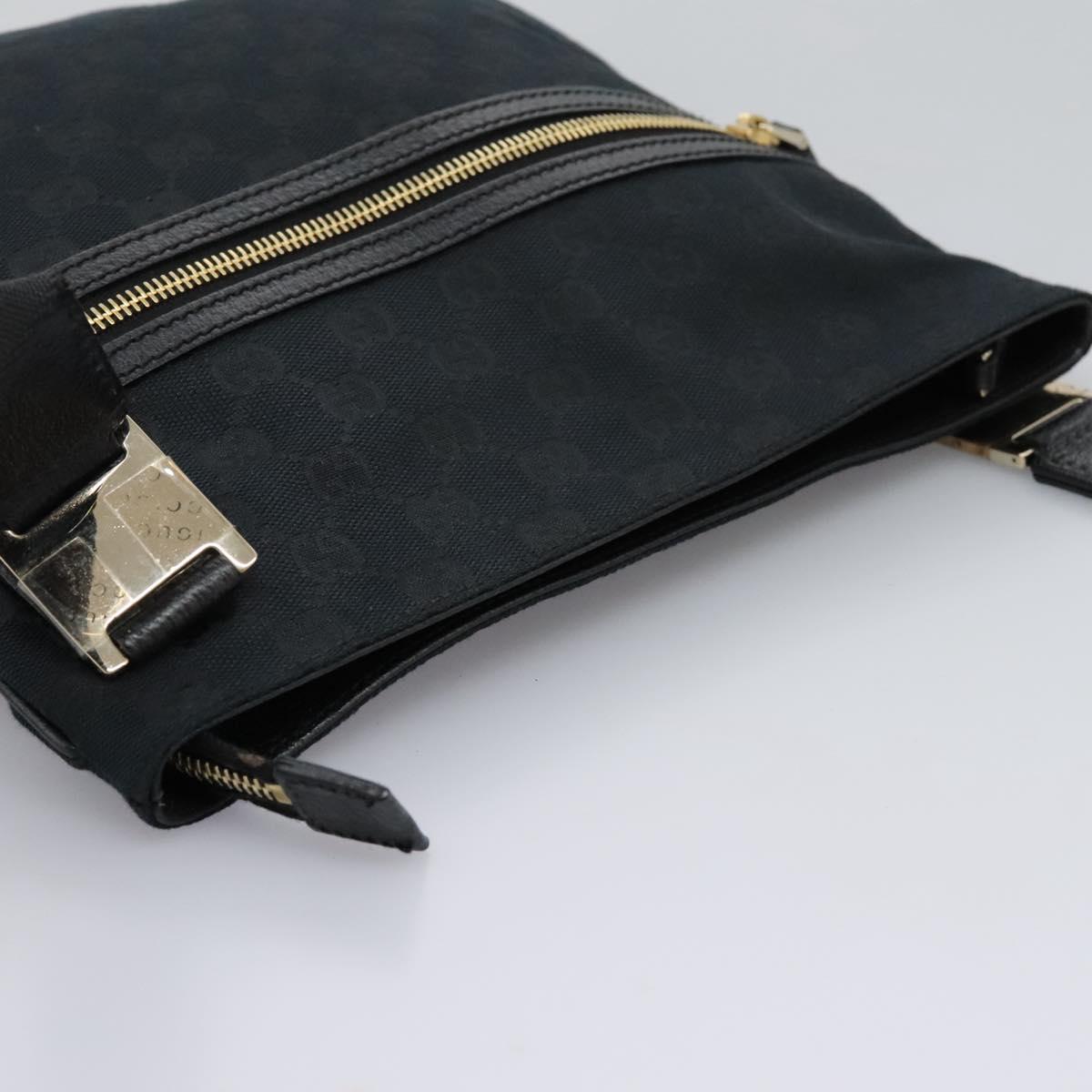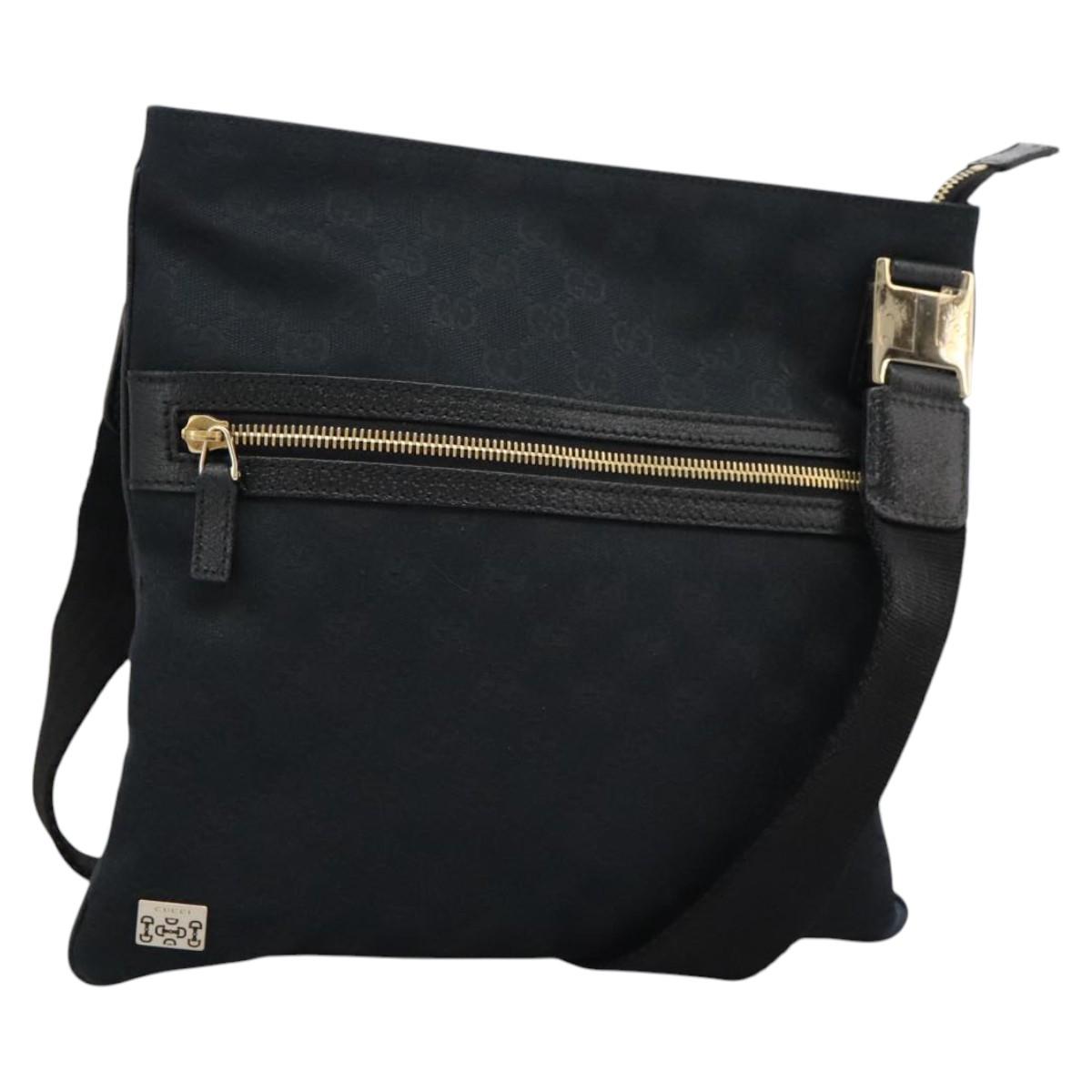 GUCCI GG Canvas Shoulder Bag Black Gold 145809 Auth PP365AV