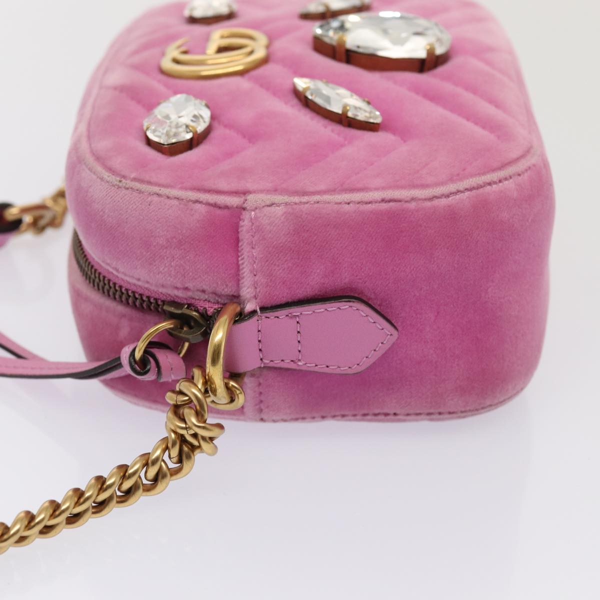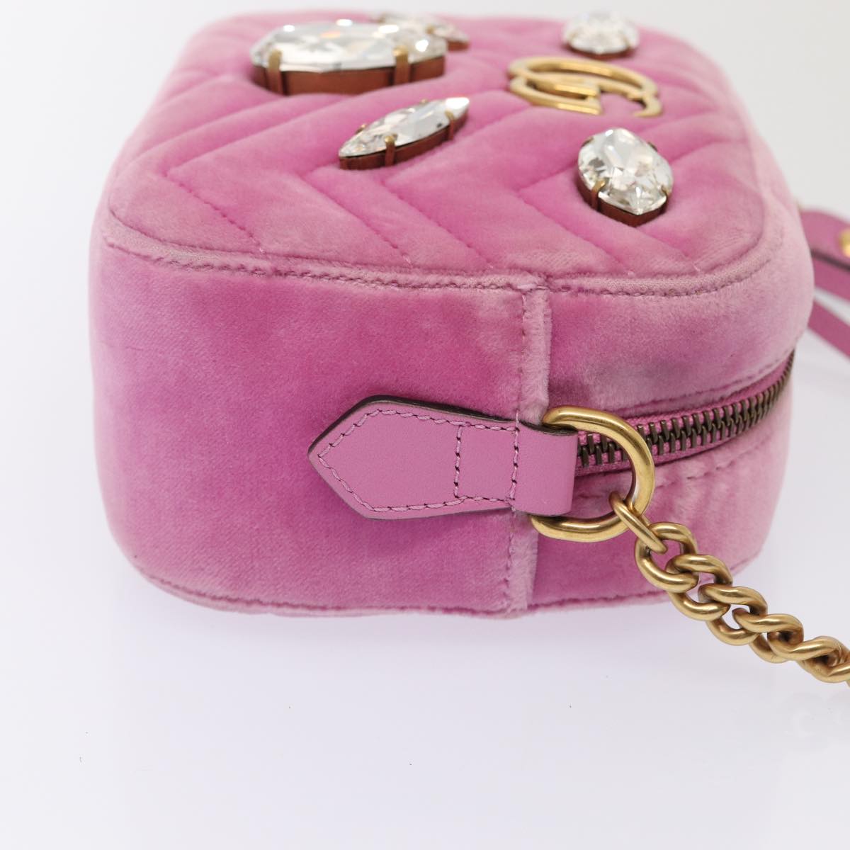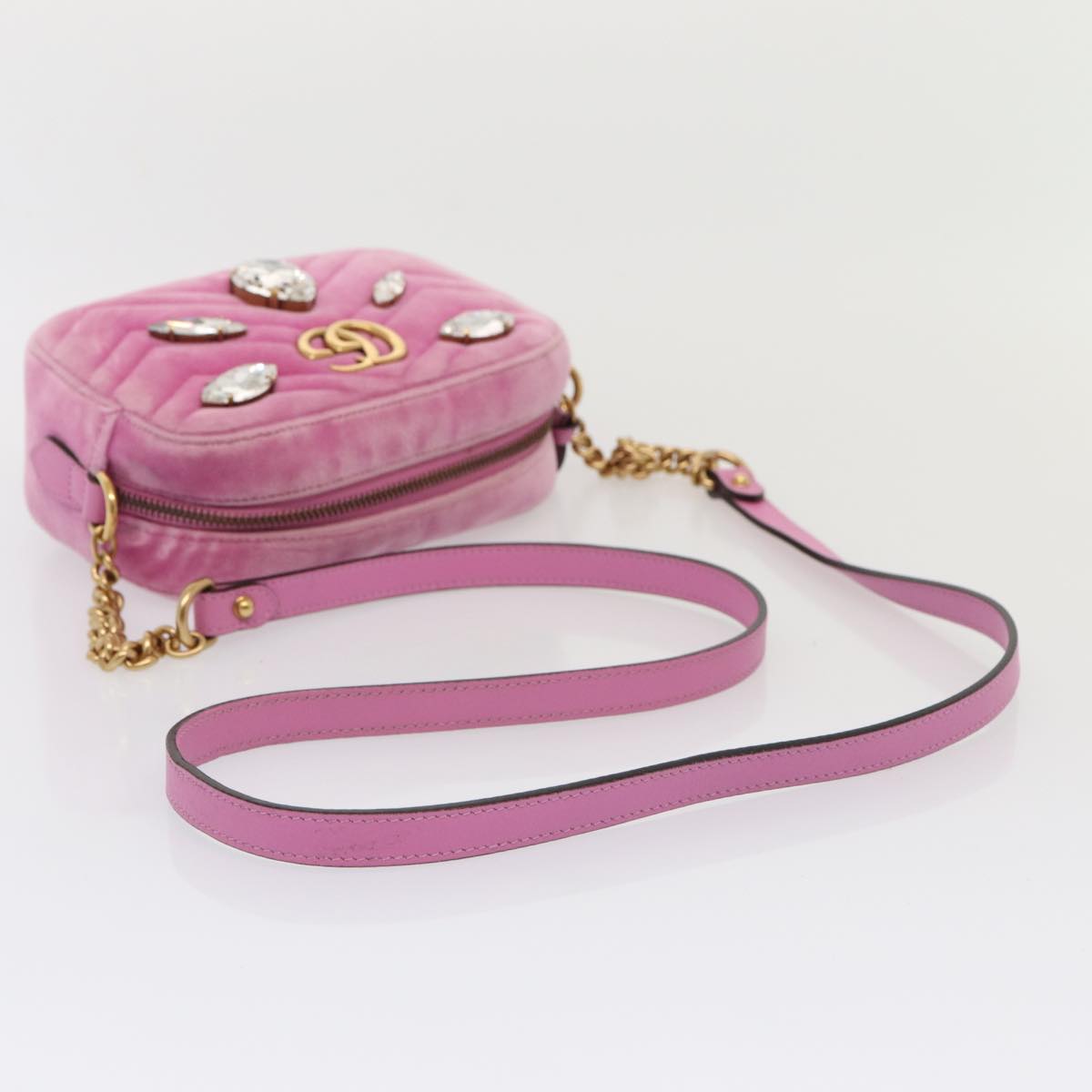 GUCCI GG Marmont Shoulder Bag Velor Pink Gold 448065 Auth bs16891V