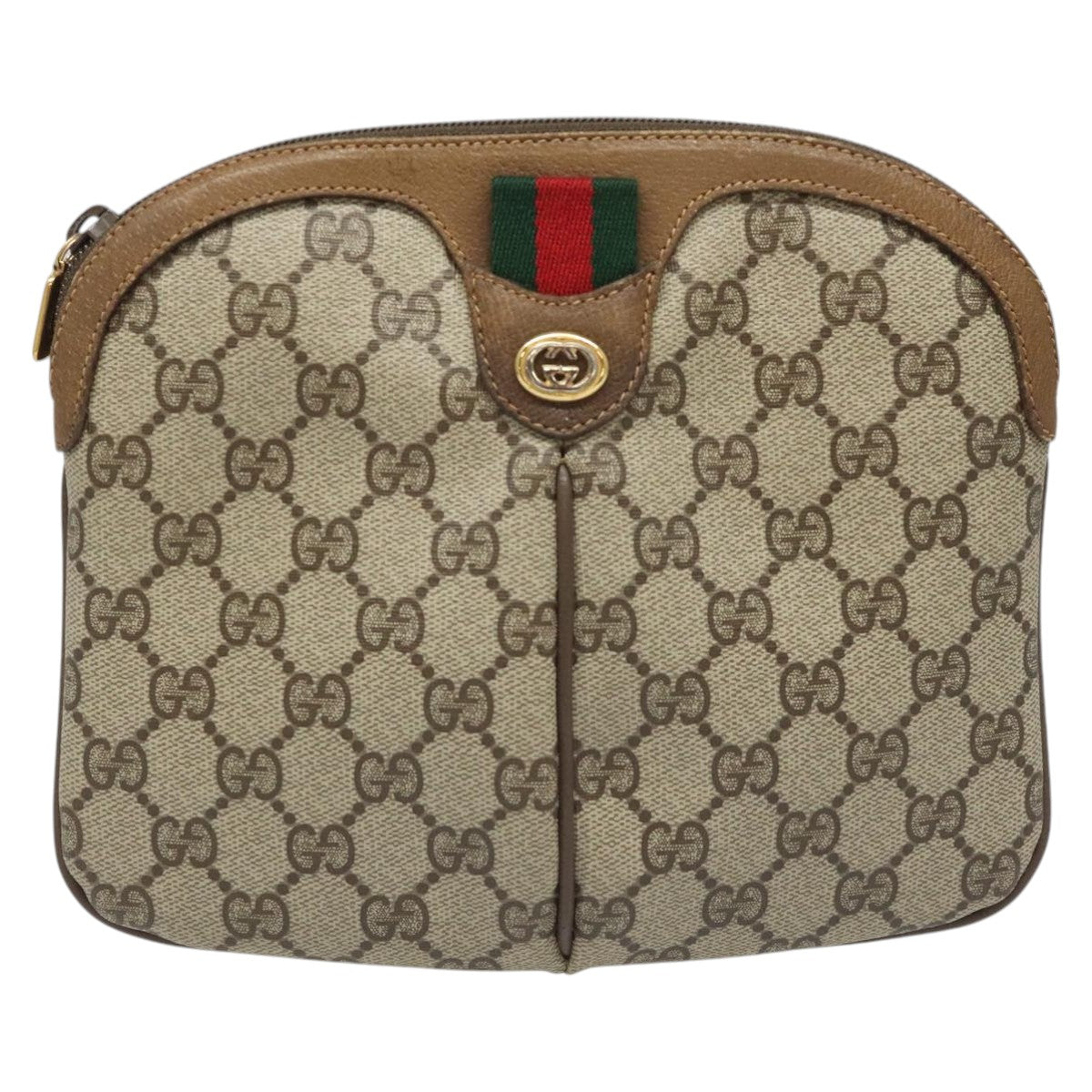 GUCCI GG Supreme Web Sherry Line Shoulder Bag PVC Beige 904 02 047 Auth 104493V