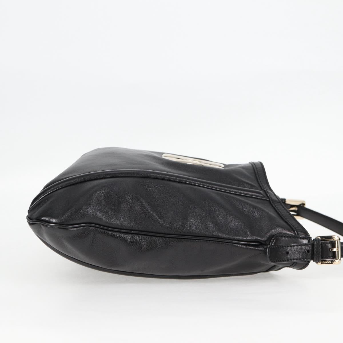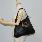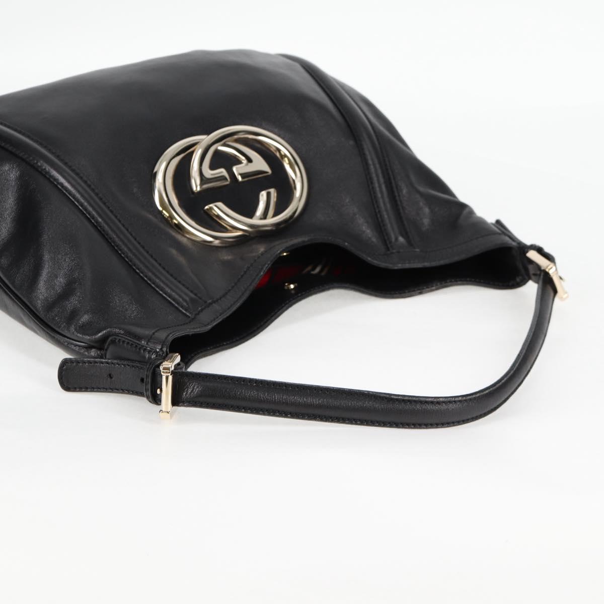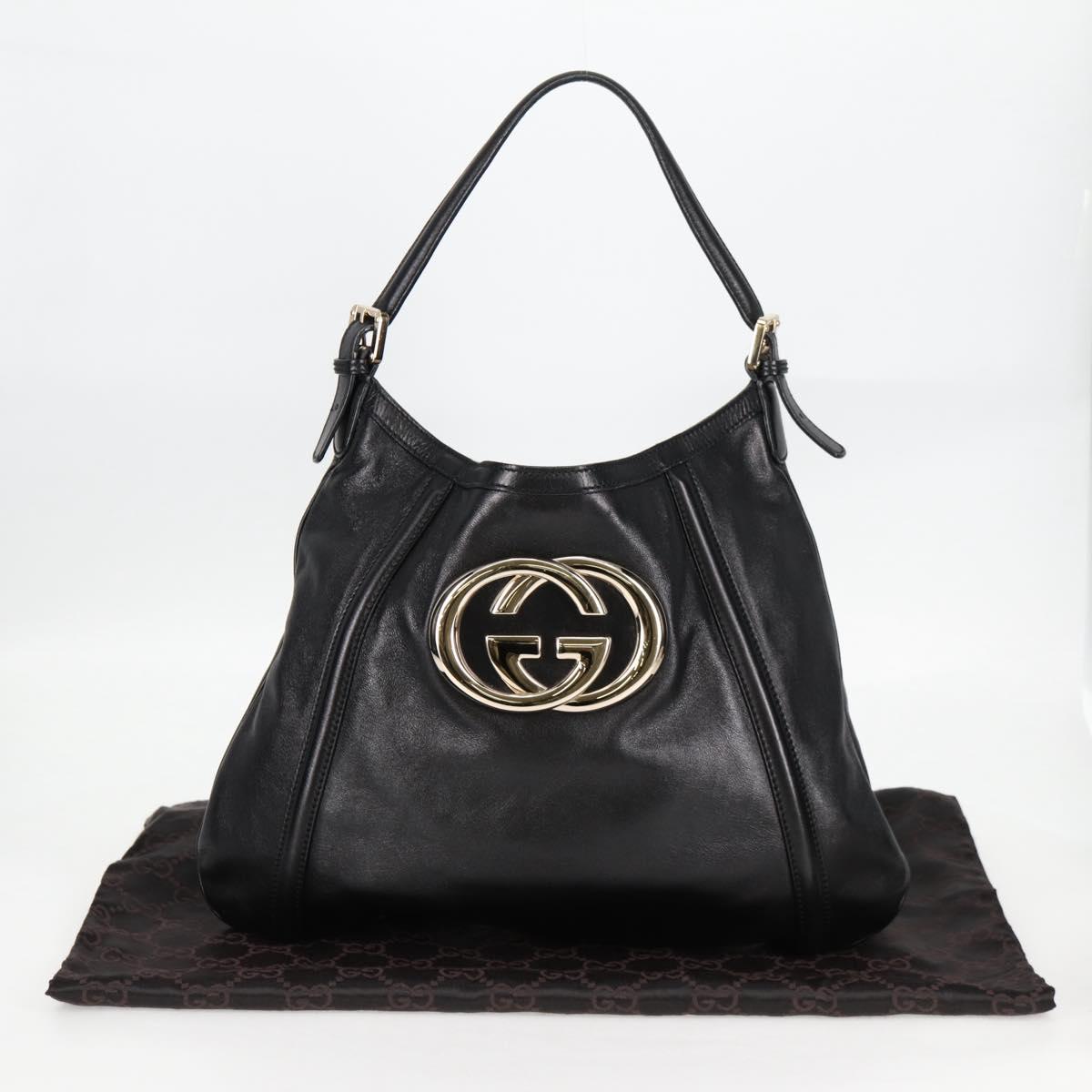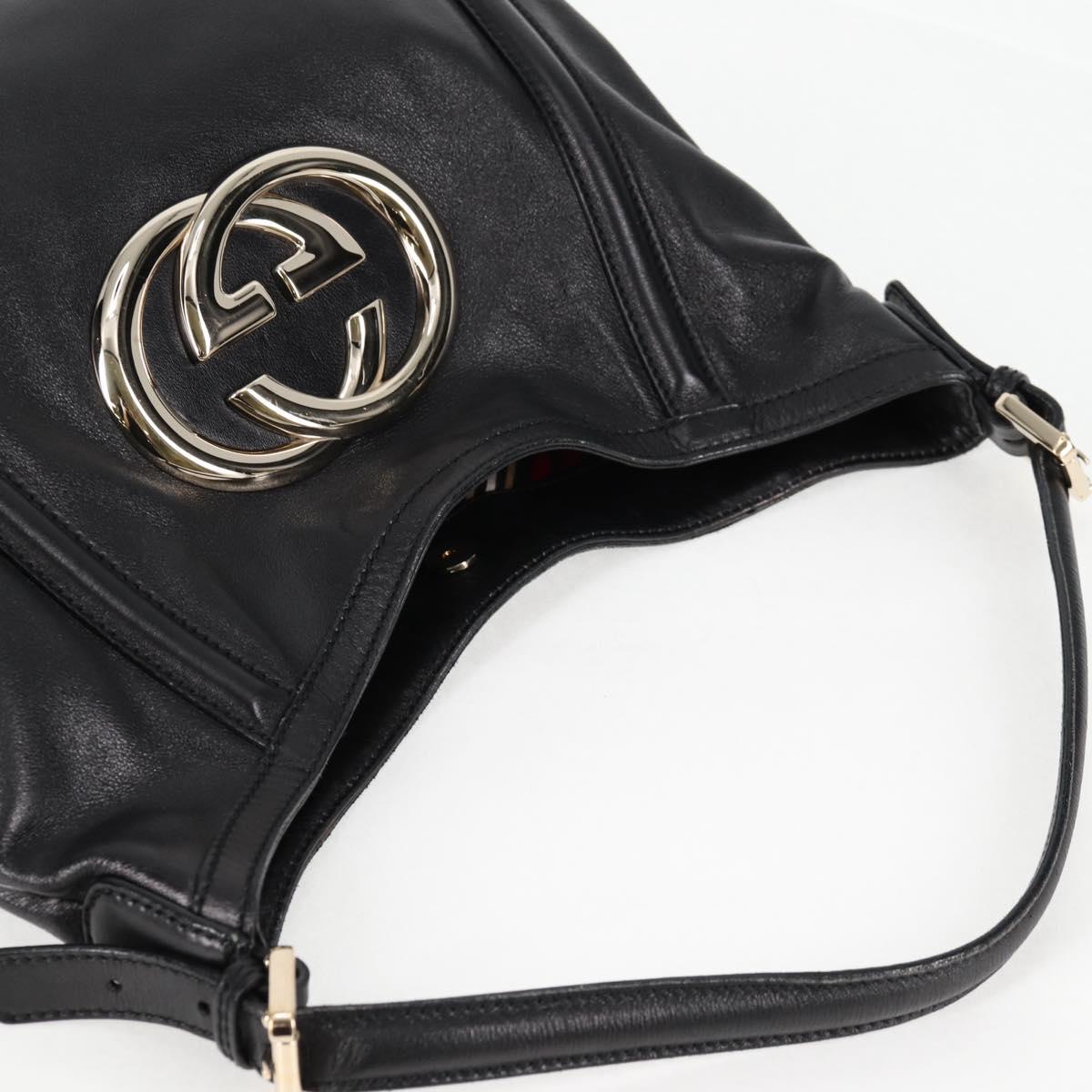 GUCCI Interlocking Shoulder Bag Leather Black Gold 162740 Auth yk18065AV