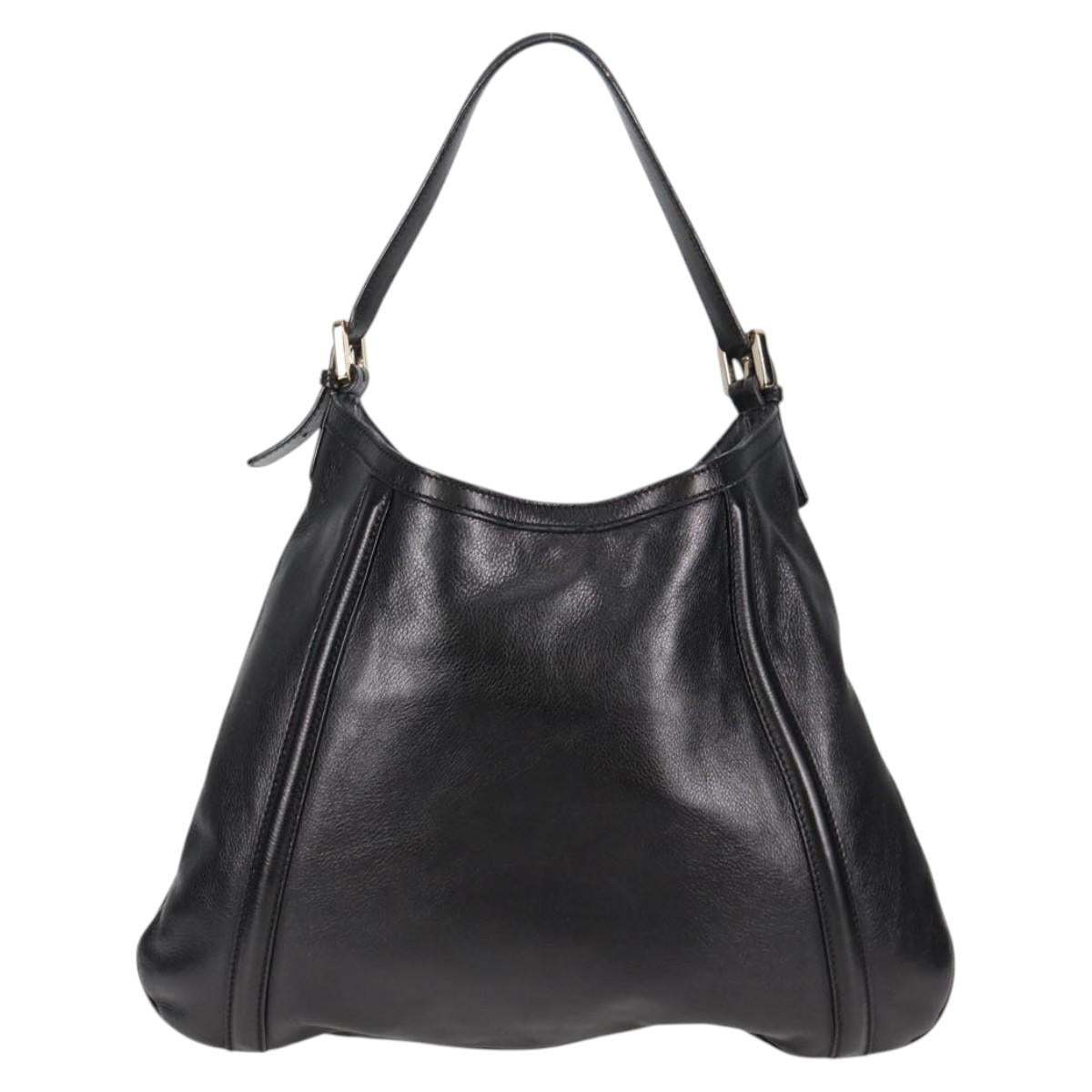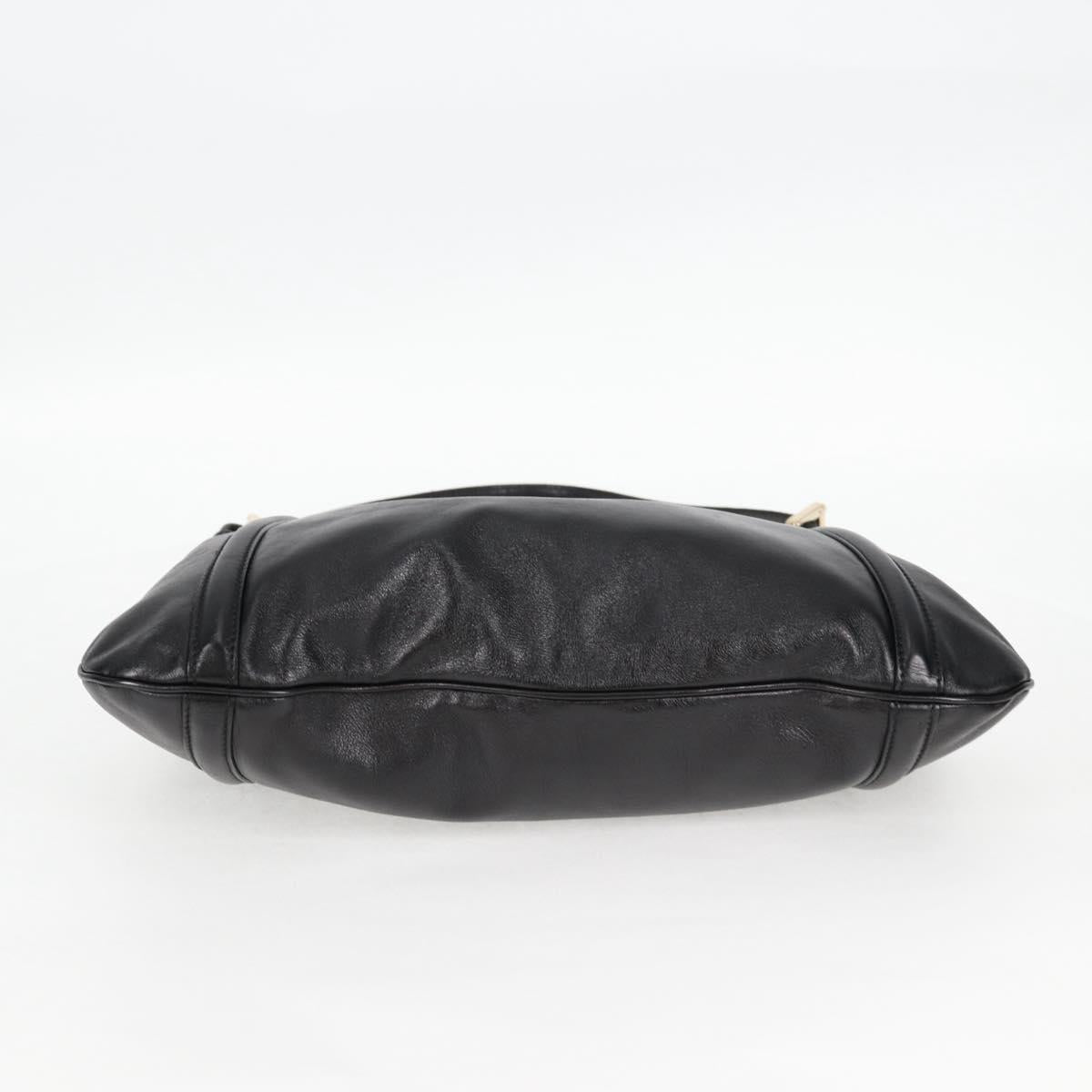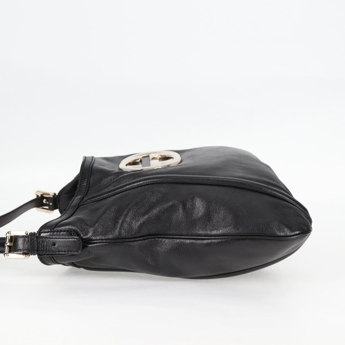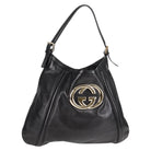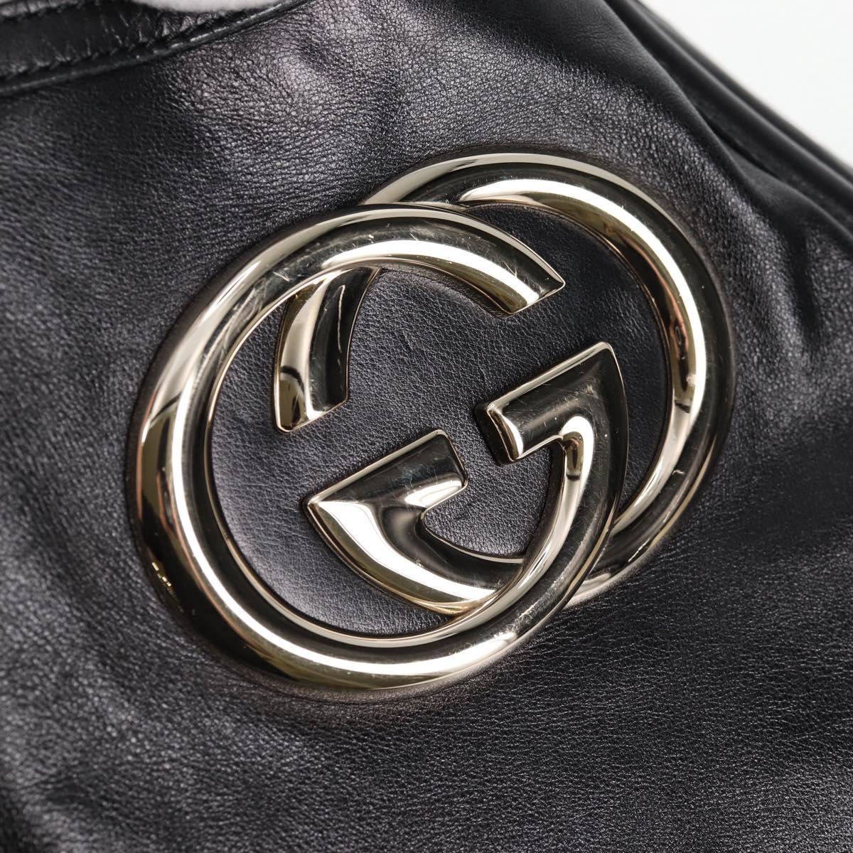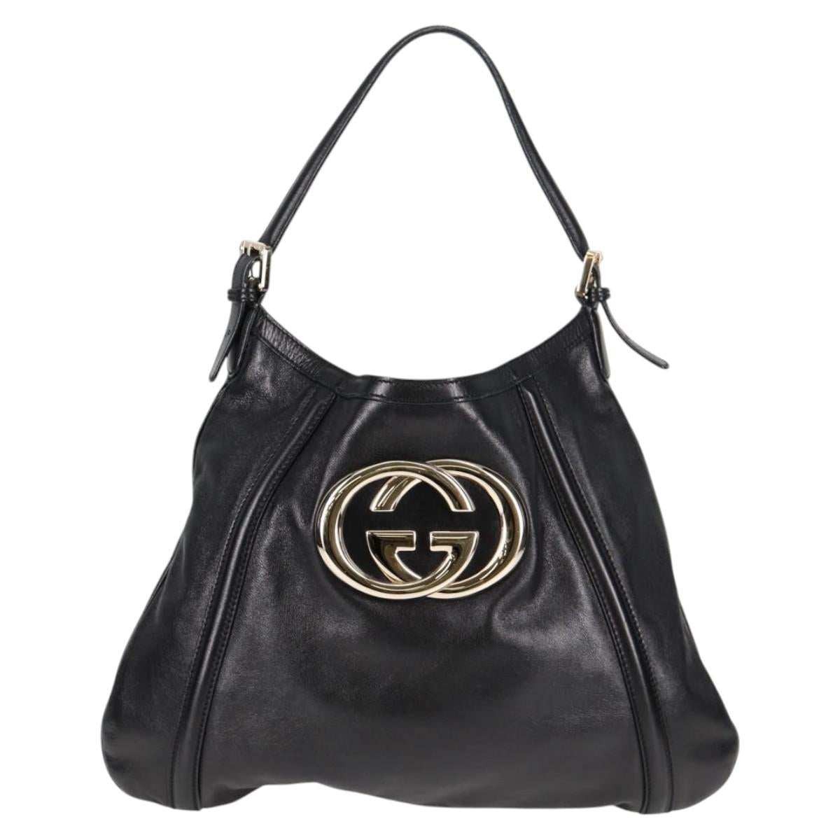 GUCCI Interlocking Shoulder Bag Leather Black Gold 162740 Auth yk18065AV