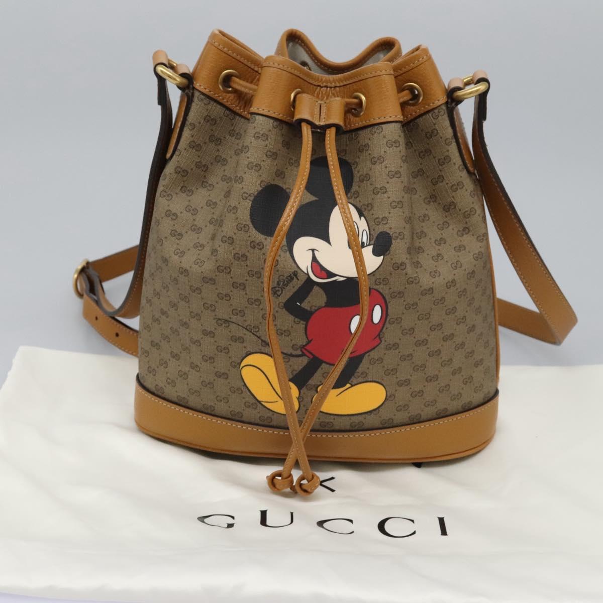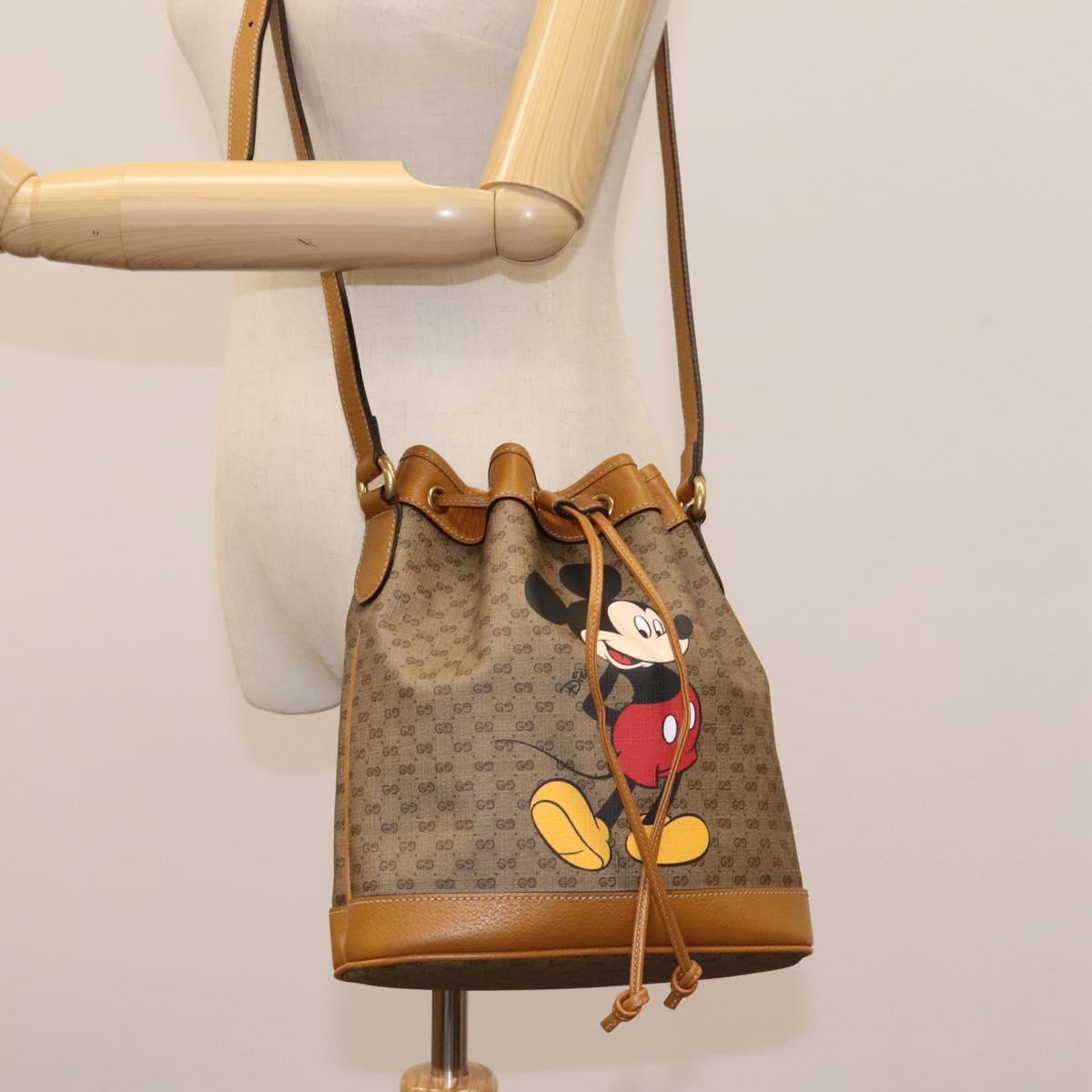 GUCCI Micro GG Canvas Disney Mickey Mouse Bag PVC Beige Gold Auth ac3580AV