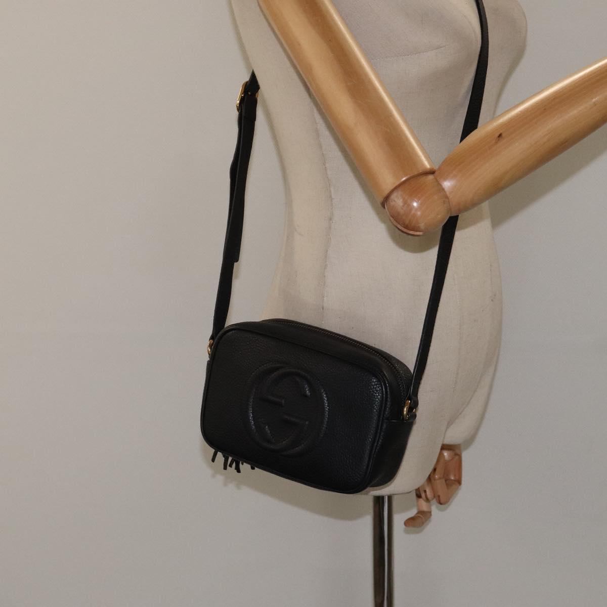 GUCCI Shoulder Bag Leather Black Gold 347994 Auth PP582V