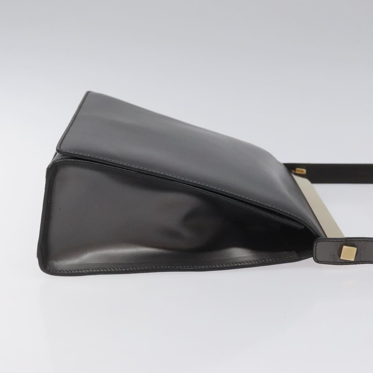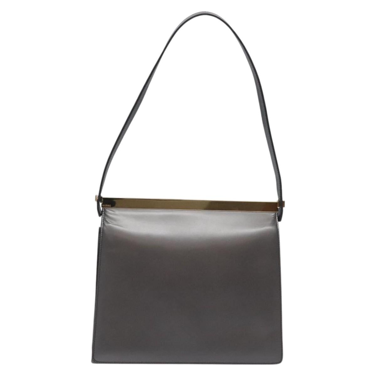 GUCCI Shoulder Bag Leather Gray Gold Auth JB010V