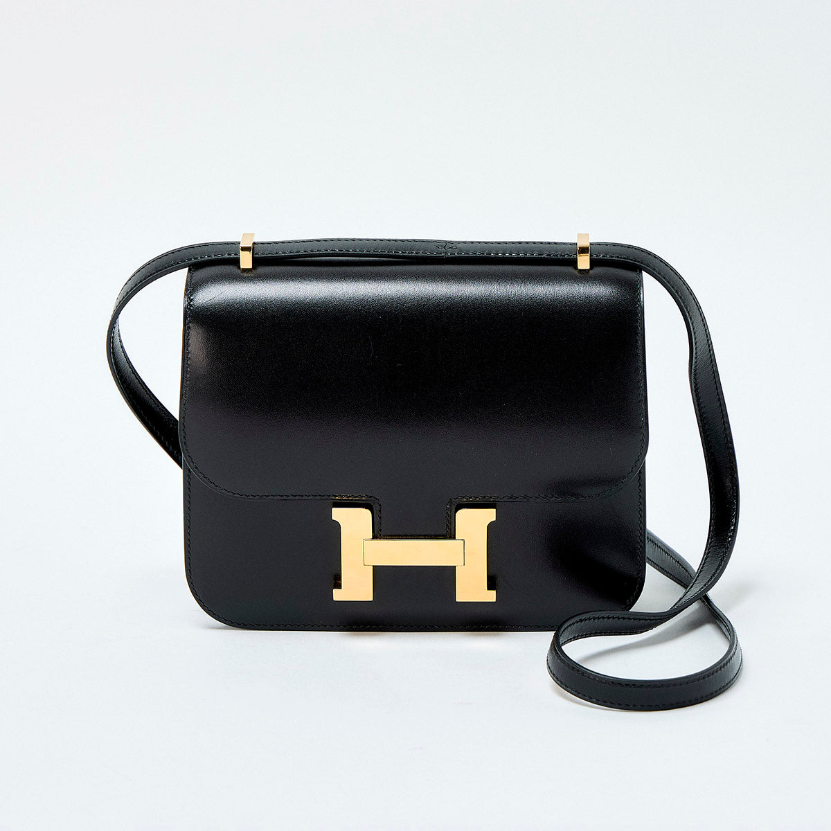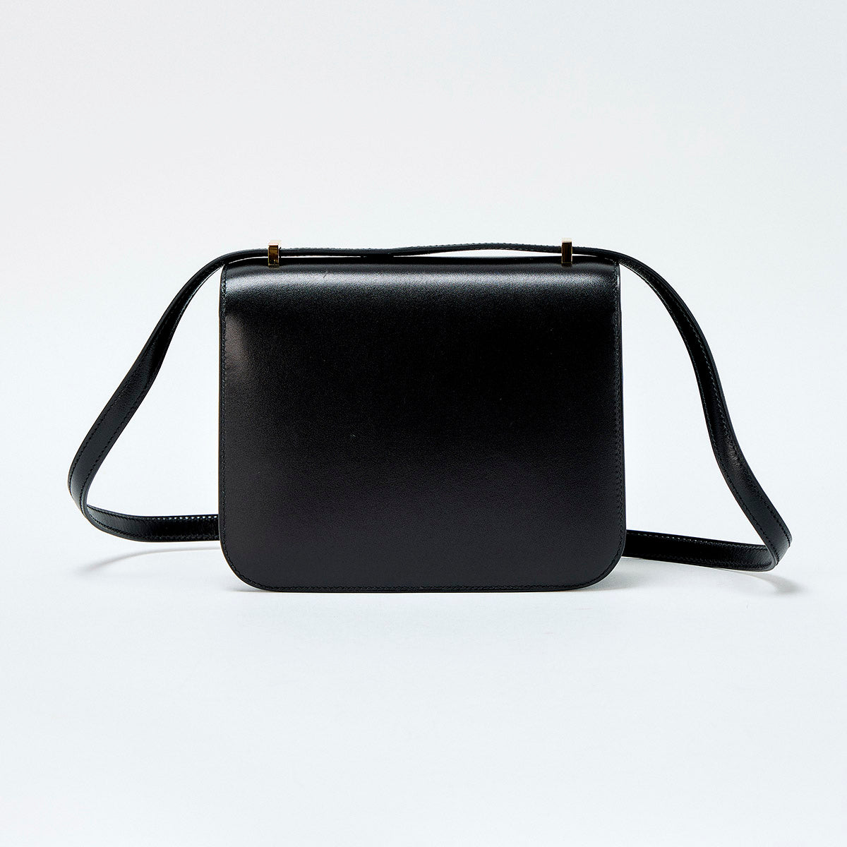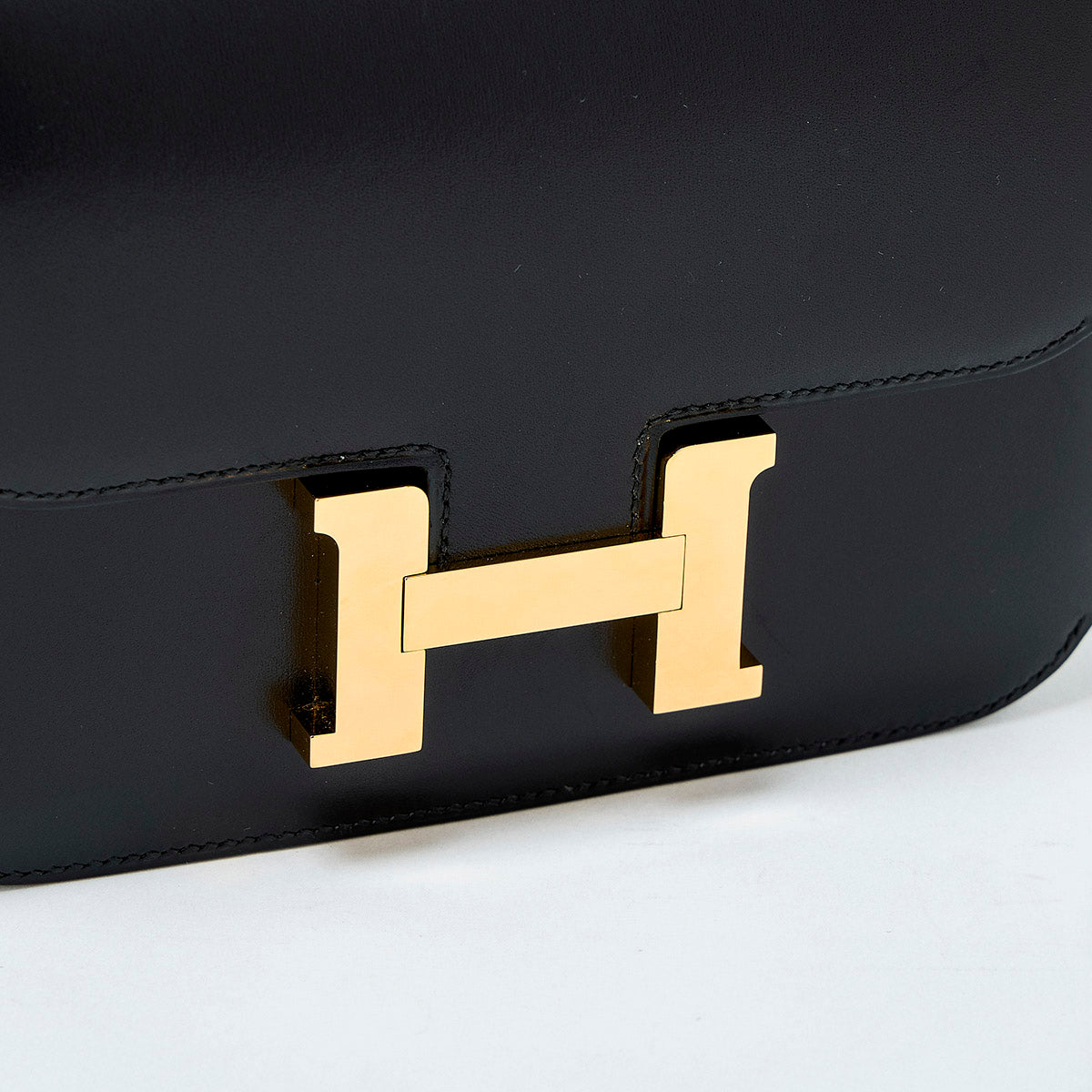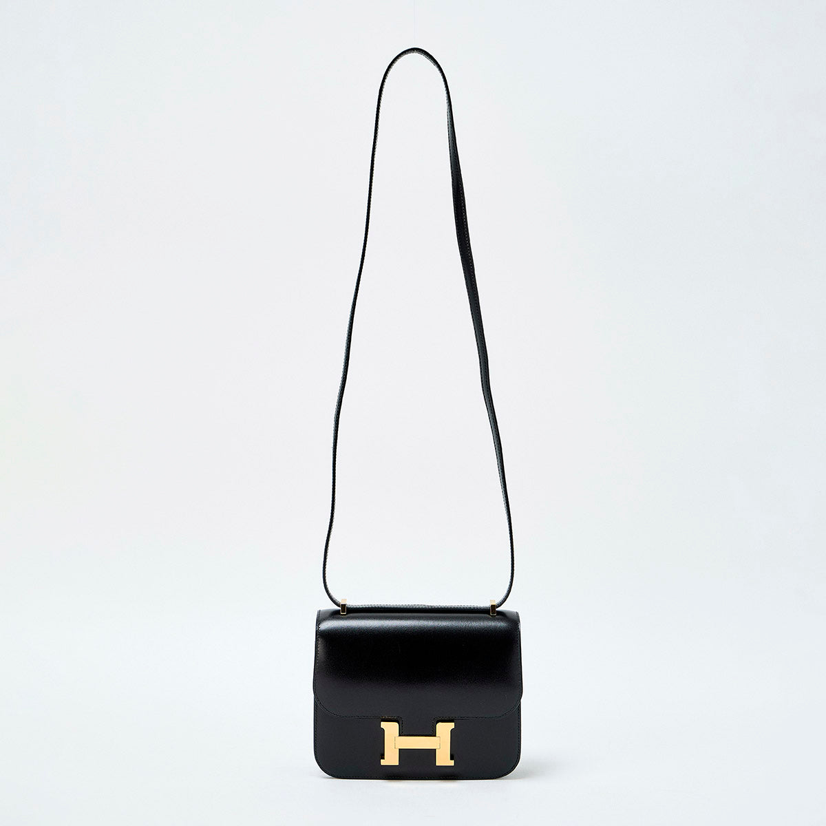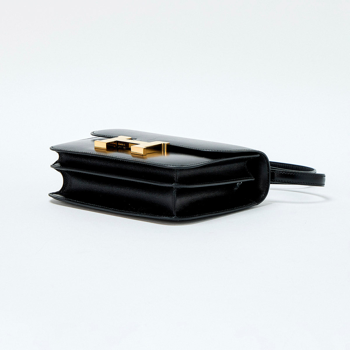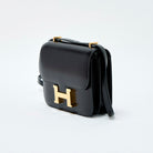 HERMES Constance Mini 2022 U Shoulder Bag Noir Gold Tadelakt Auth