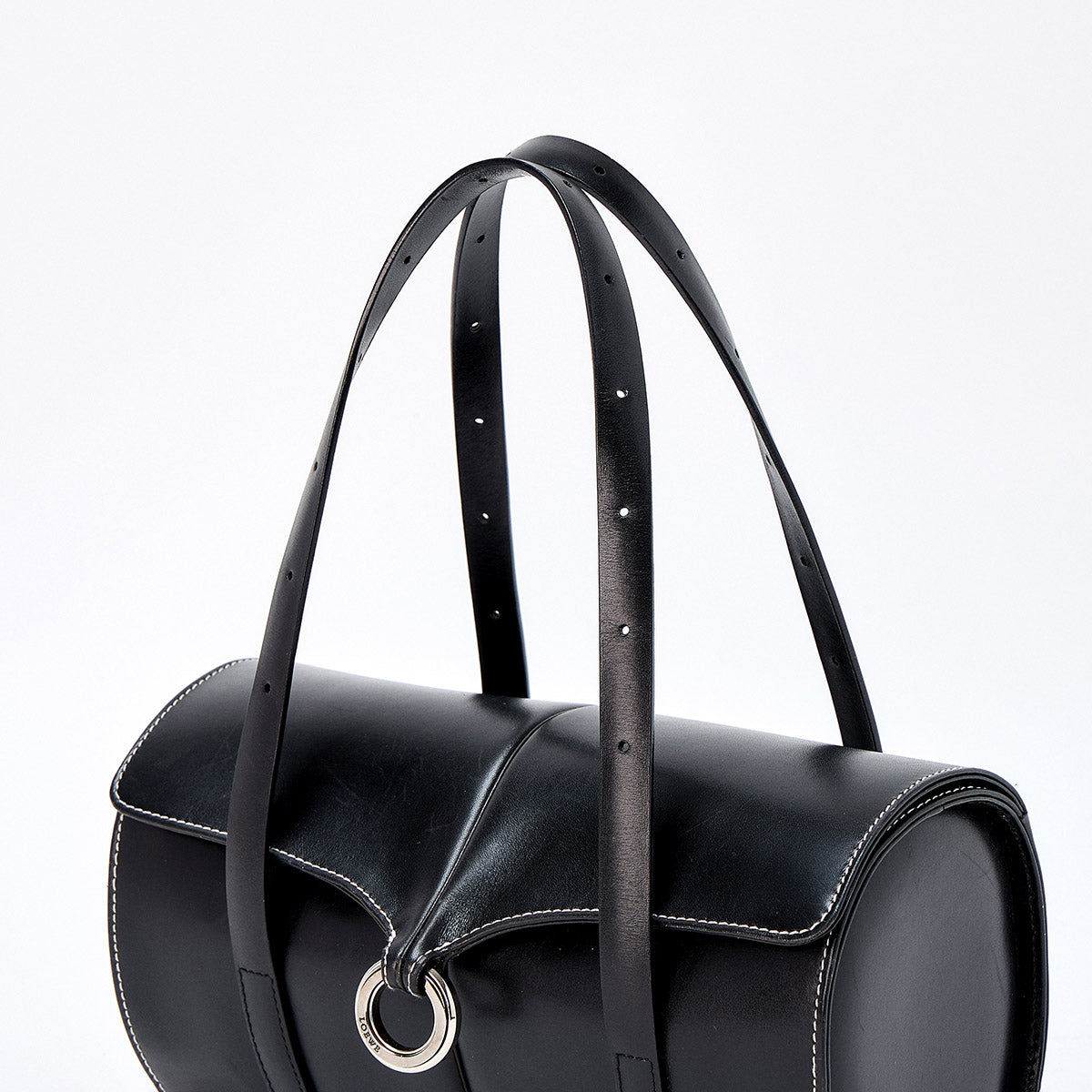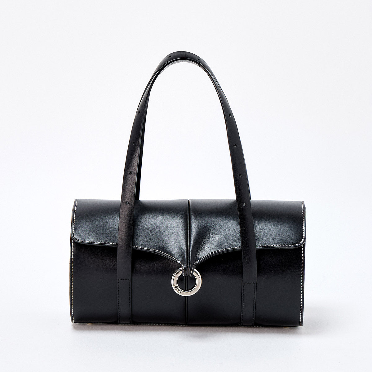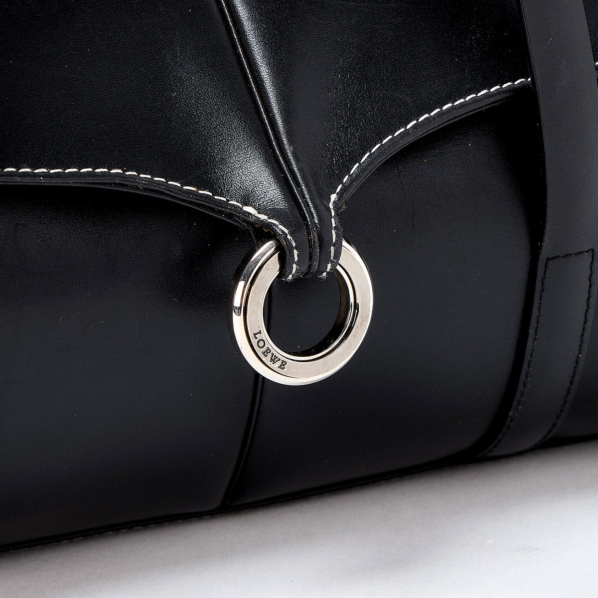 LOEWE Shoulder Bag Black Silver Leather Auth