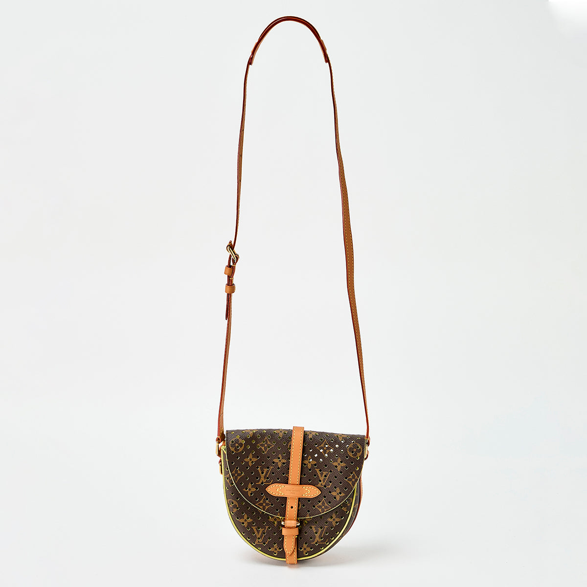 LOUIS VUITTON Chantilly Monogram Perfo PM Shoulder Bag M94086 Brown Green Gold PVC Leather Auth