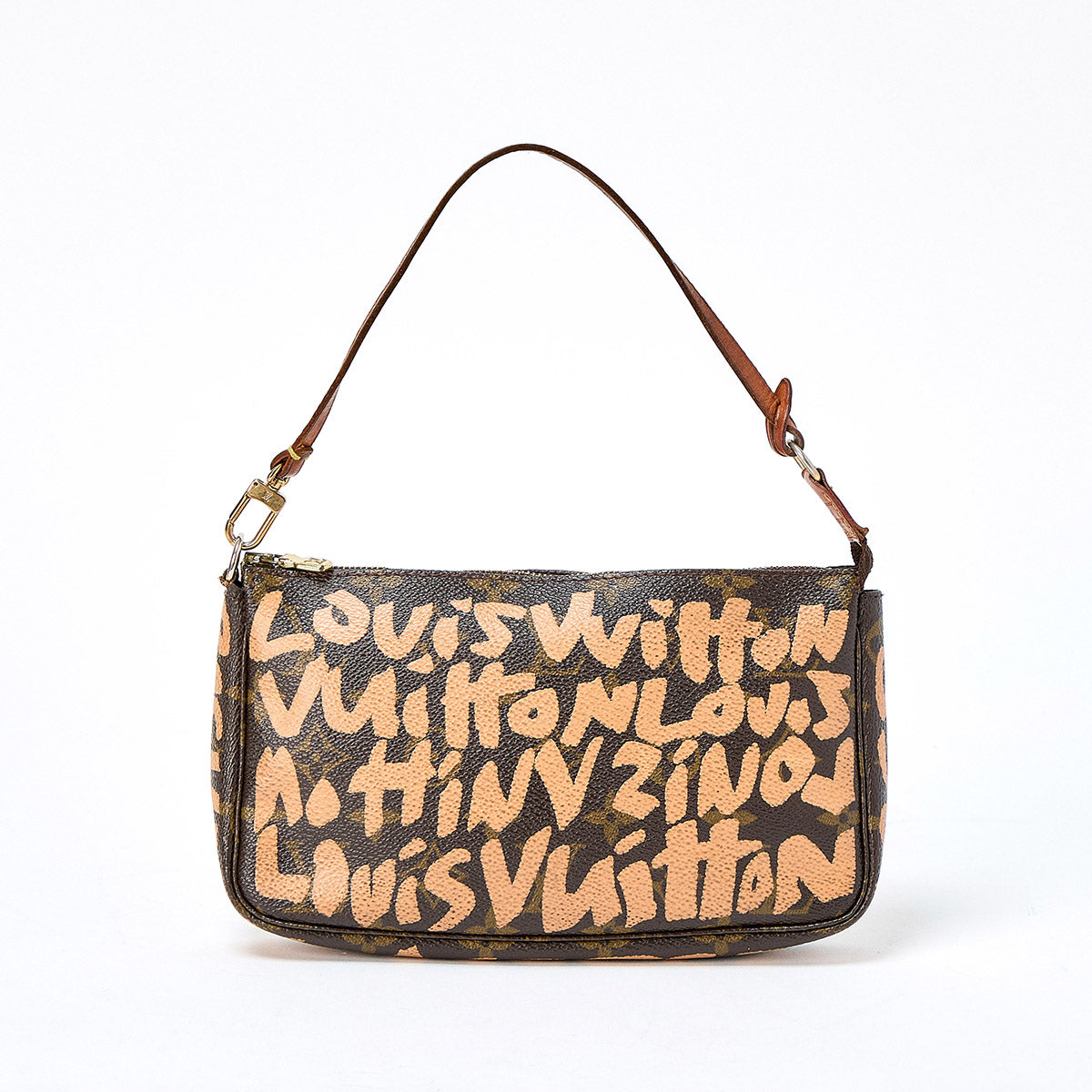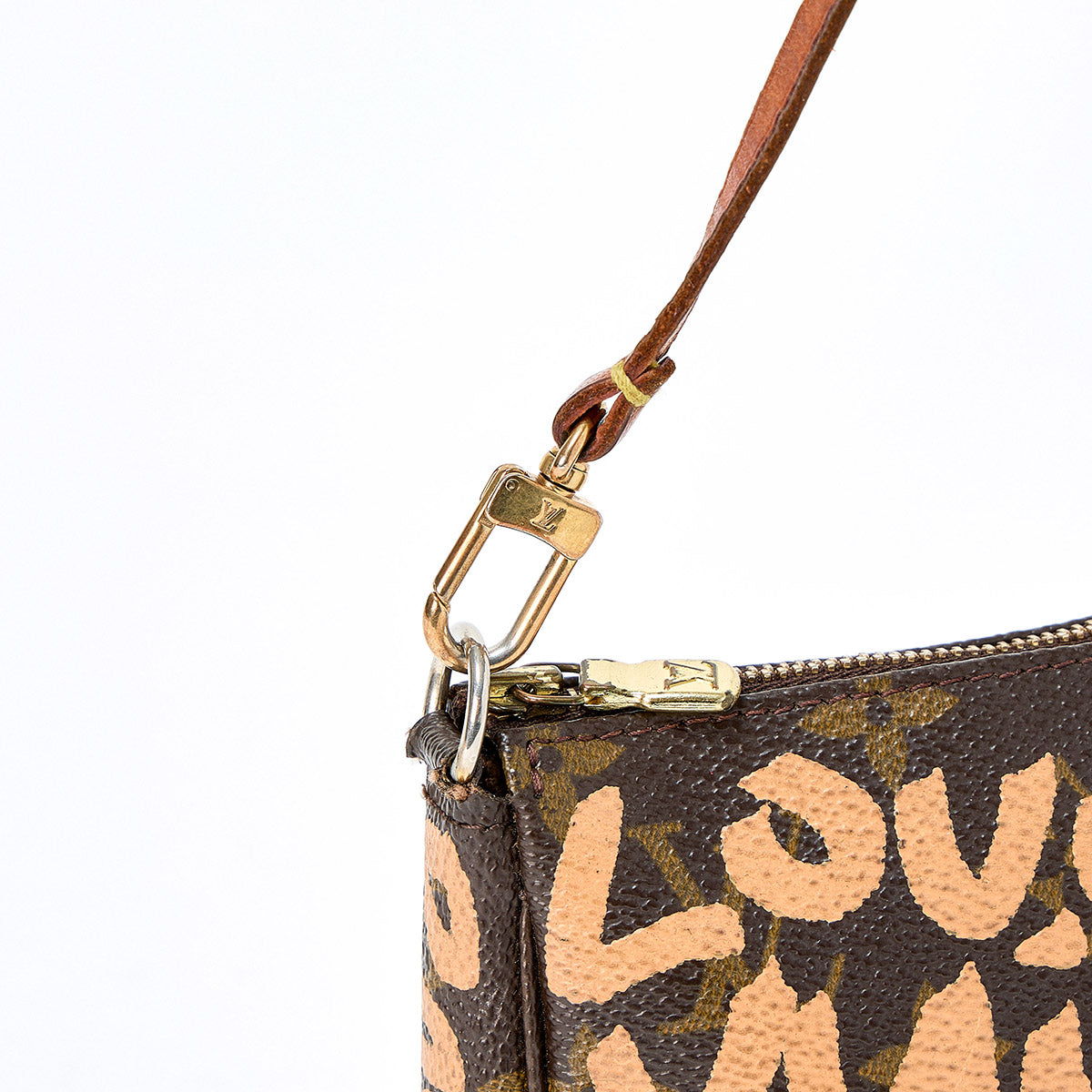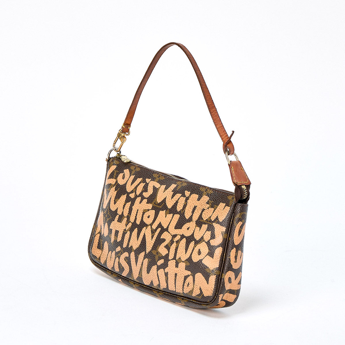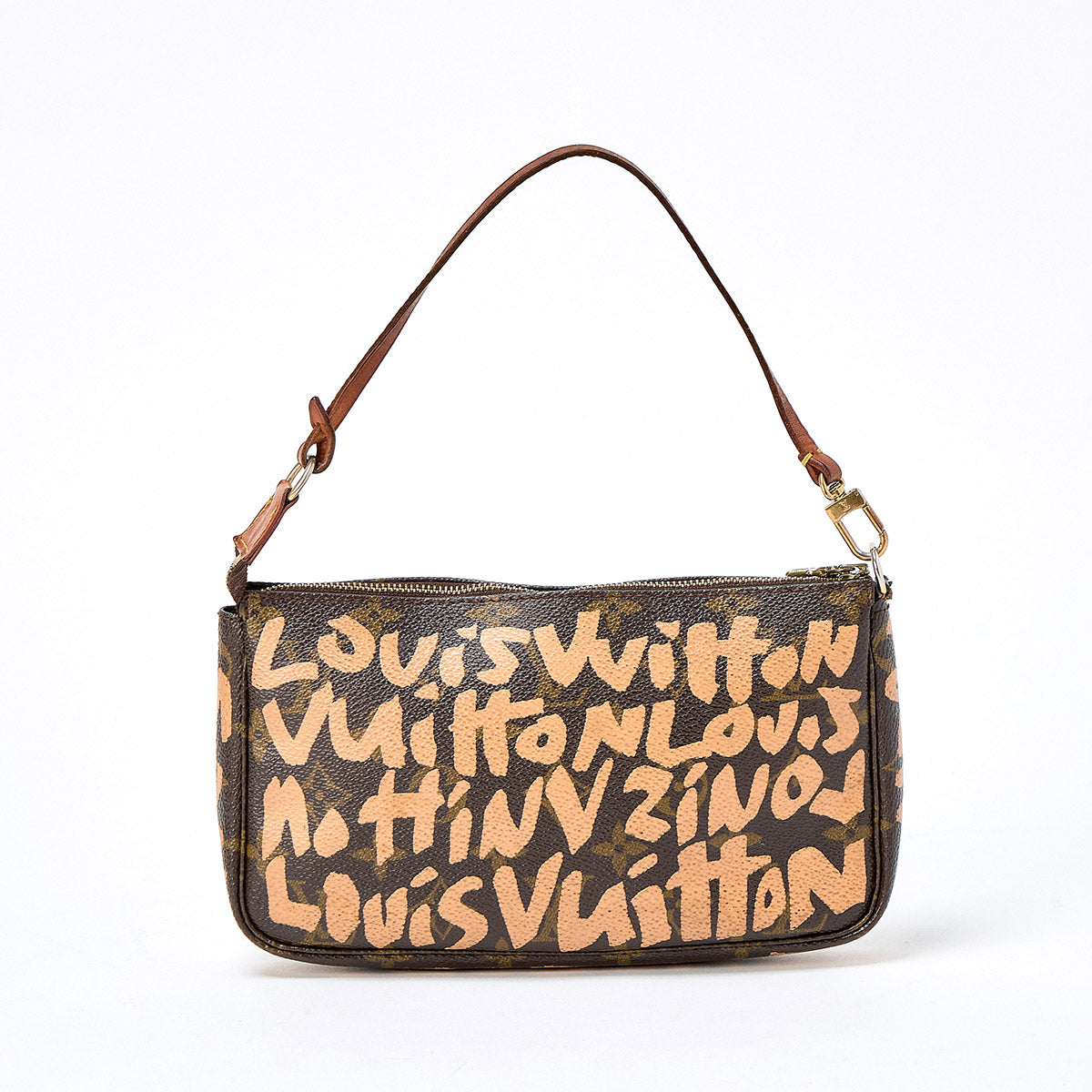 LOUIS VUITTON Pochette Accessoires Monogram Graffiti Shoulder Bag Brown Gold PVC Auth