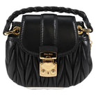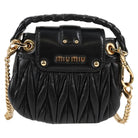 Miu Miu Matelasse Chain Pouch Shoulder Bag Leather Black Gold Auth 128140SM
