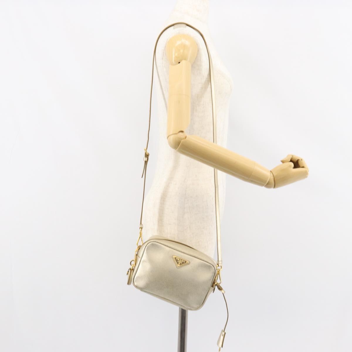 PRADA Shoulder Bag Safiano leather Gold Auth 152404