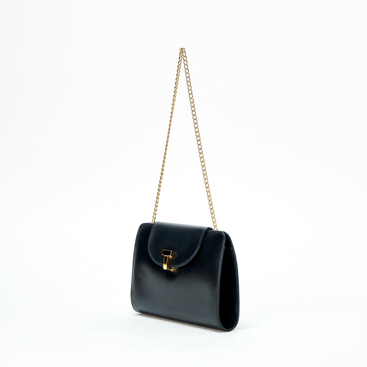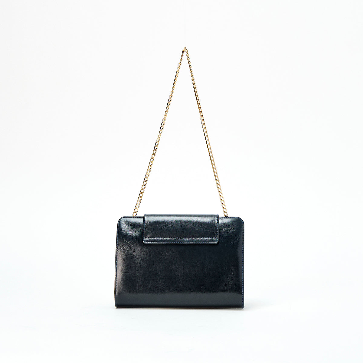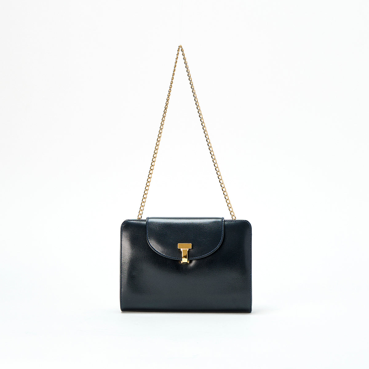 TIFFANY & Co. Shoulder Bag Black Gold Calf Skin Auth