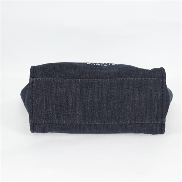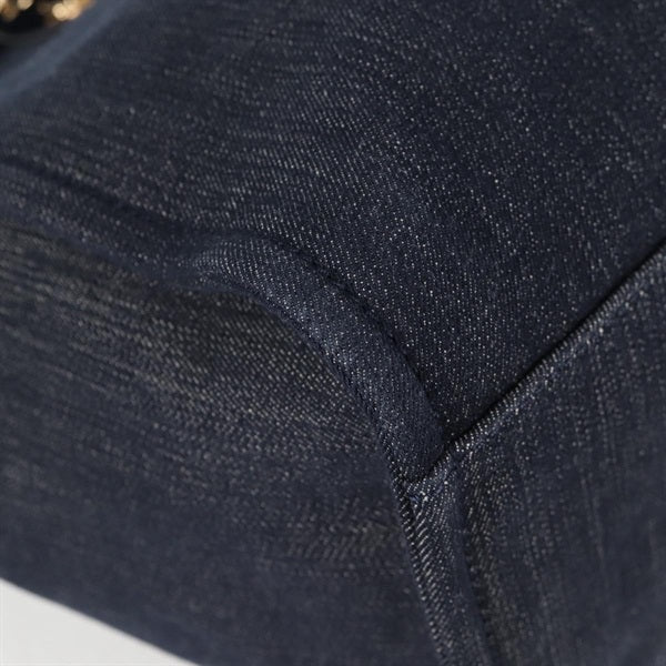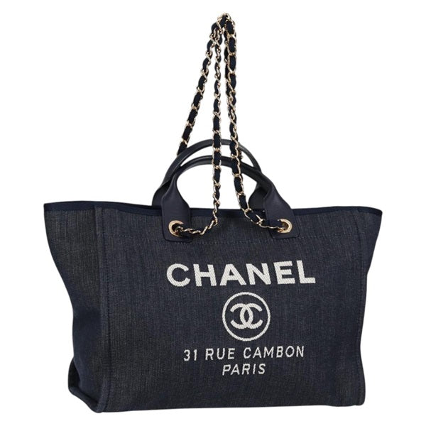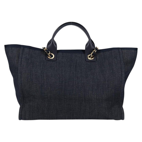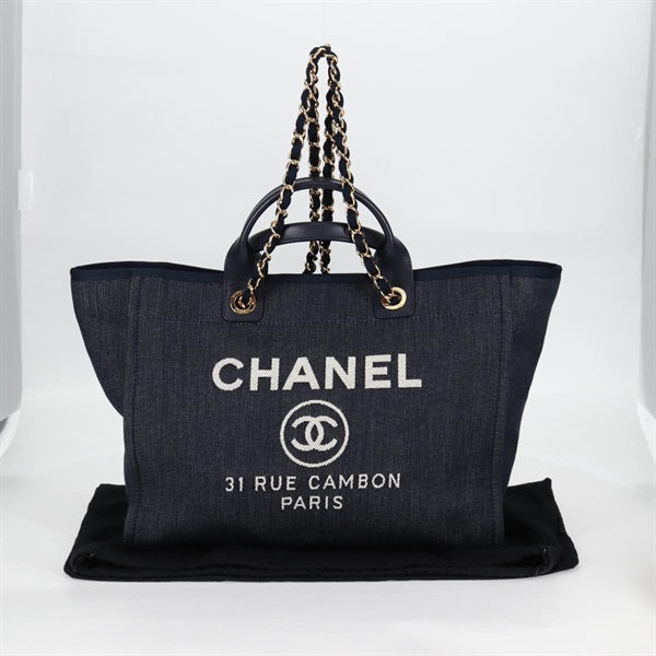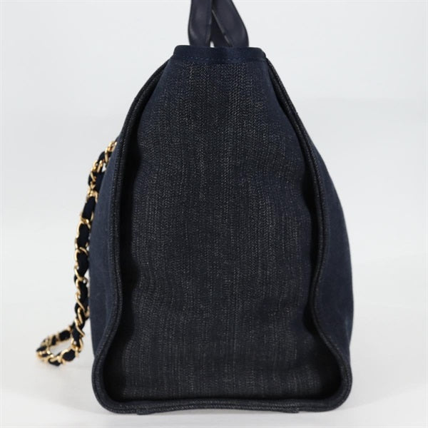 CHANEL Deauville GM Tote Bag Indigo Blue Gold Denim Auth