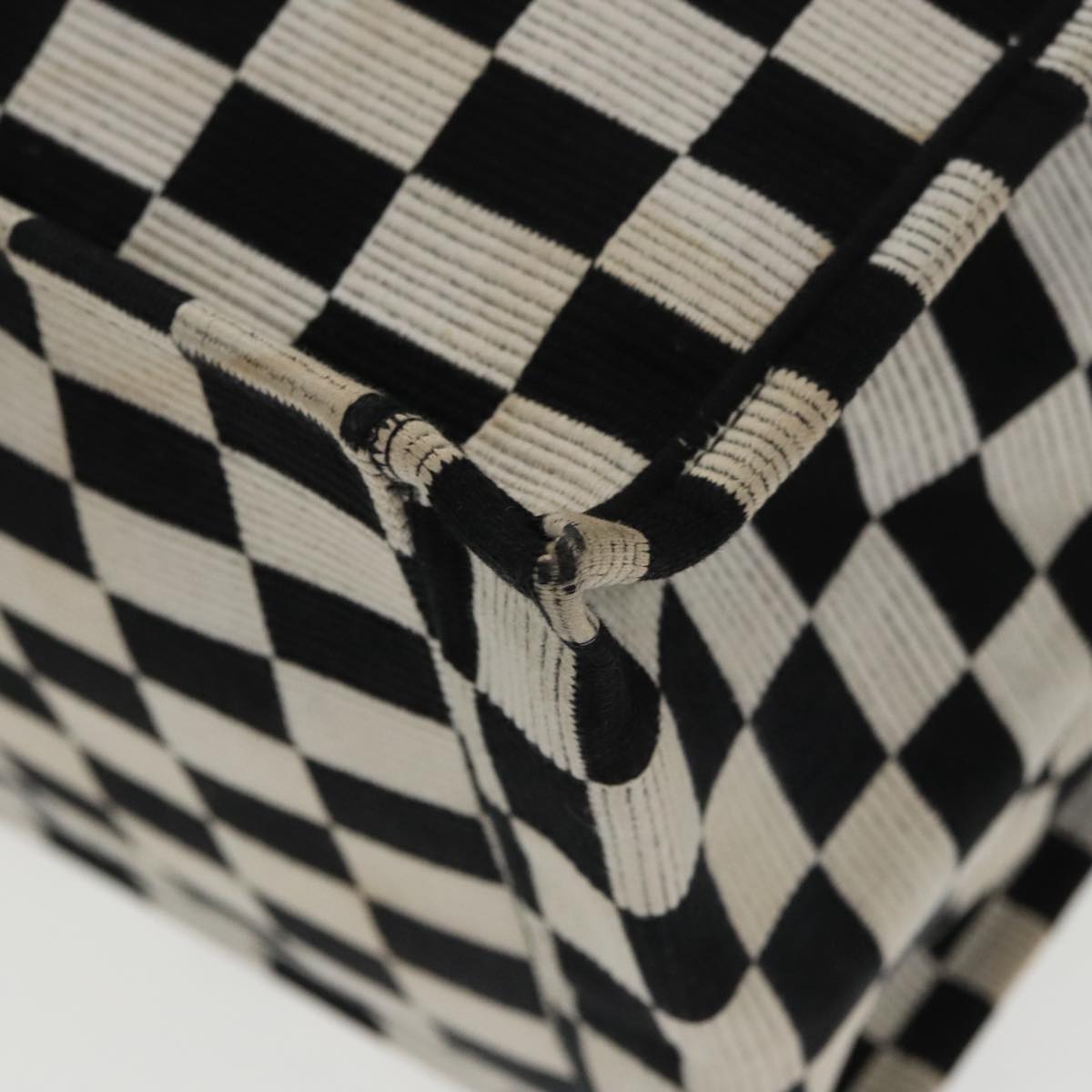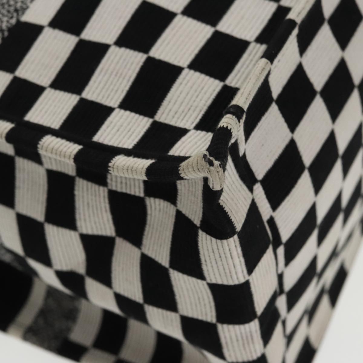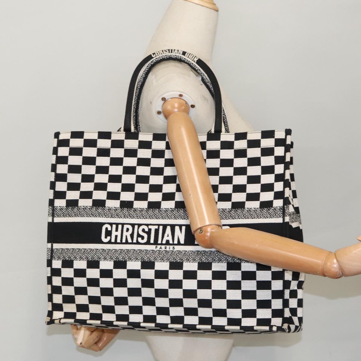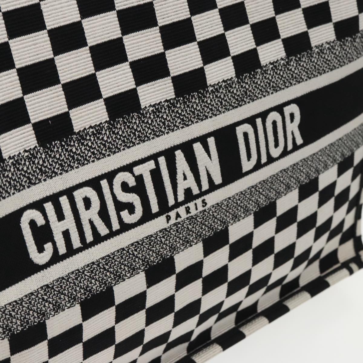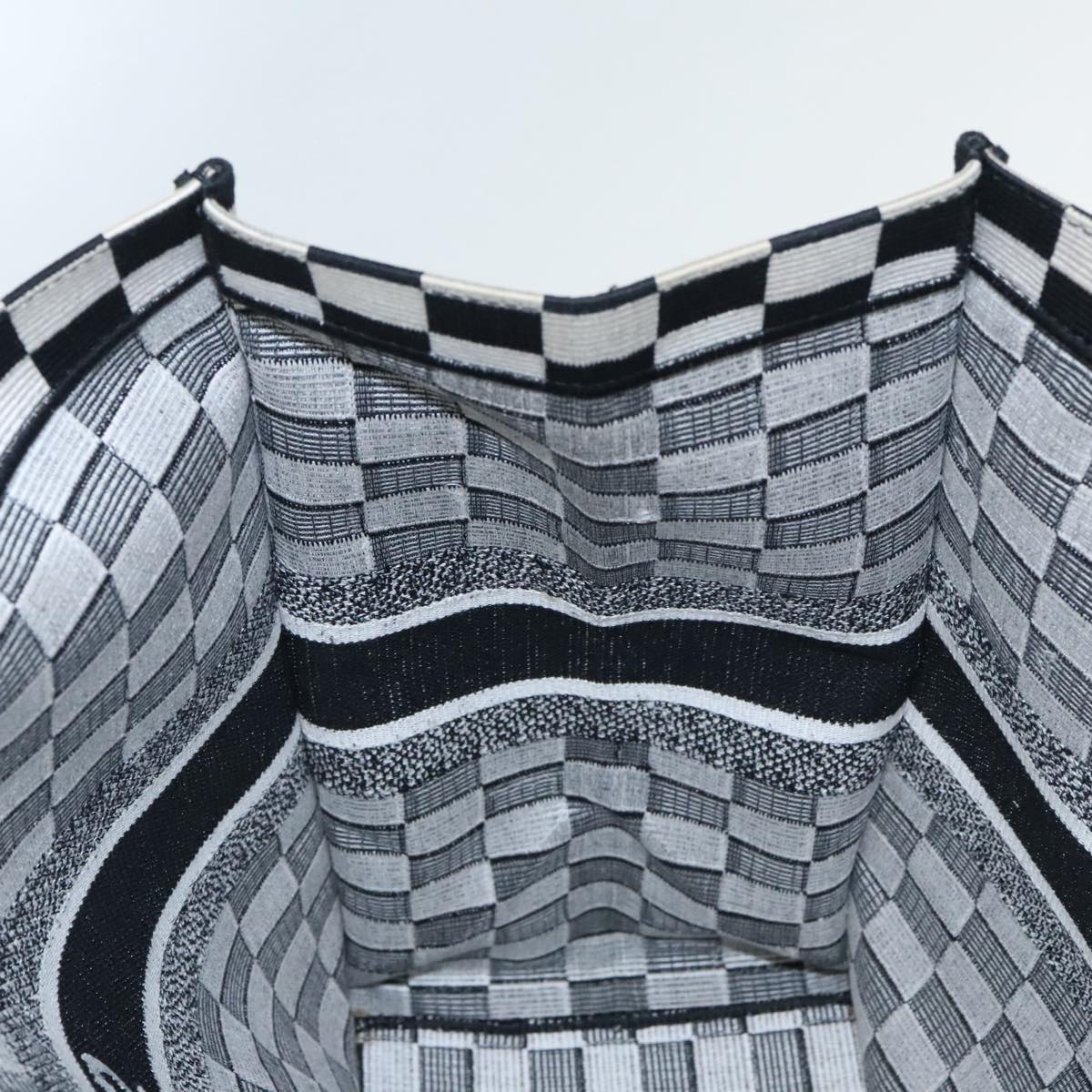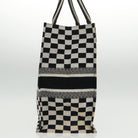 Christian Dior Check Book Tote Bag Canvas White Black Auth bs19322V