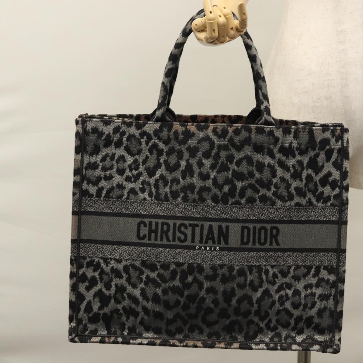 Christian Dior Leopard Book Tote Tote Bag Canvas Black Auth nb210V