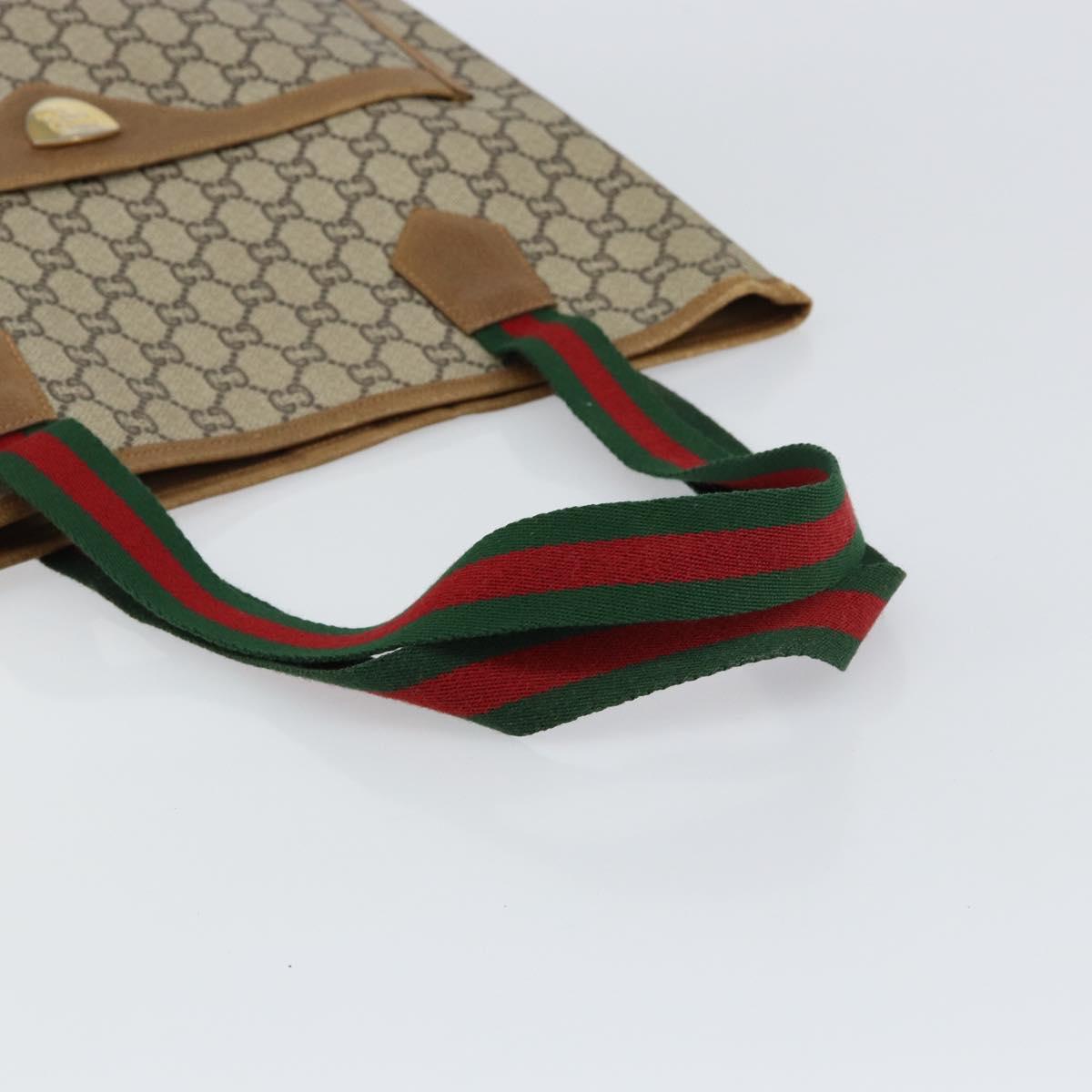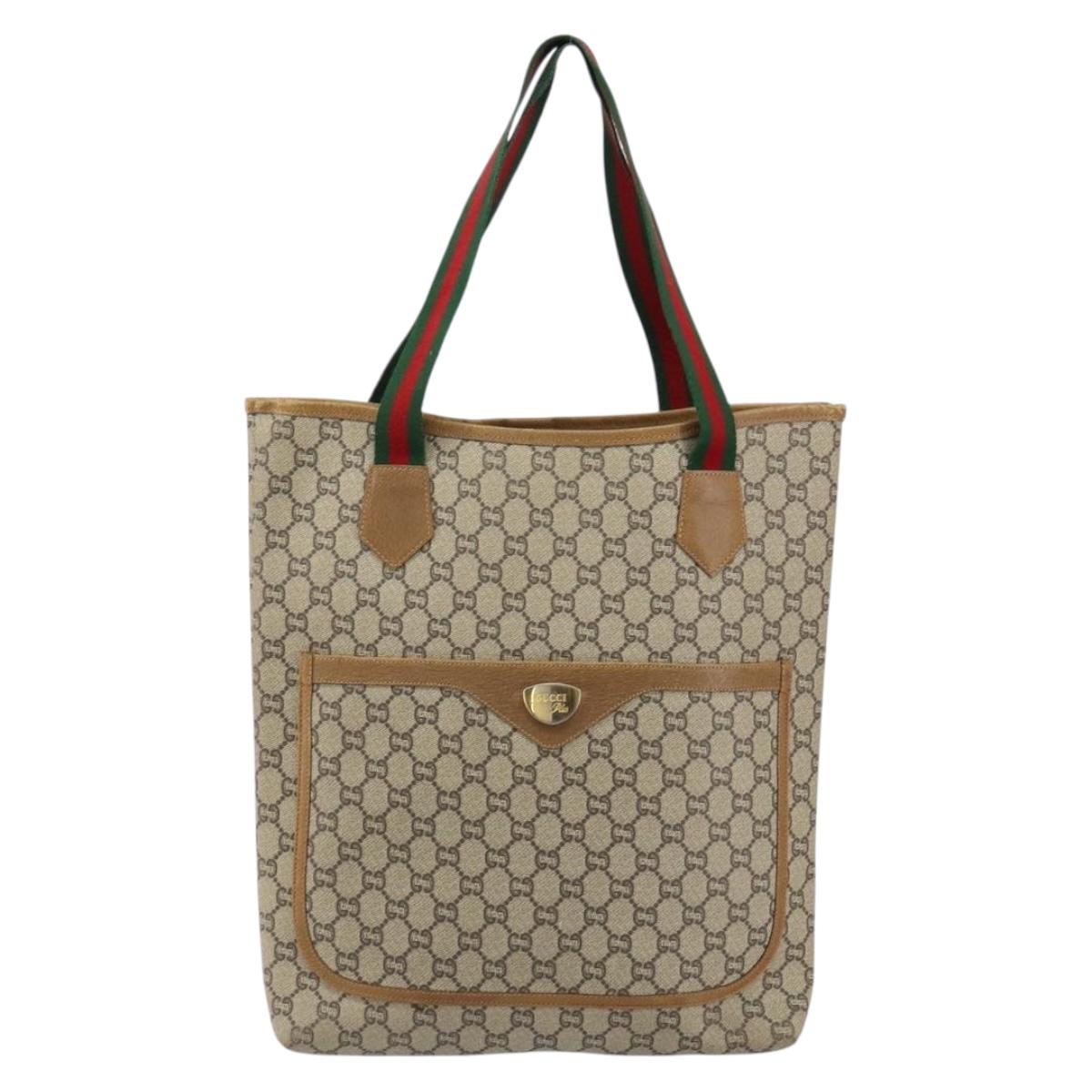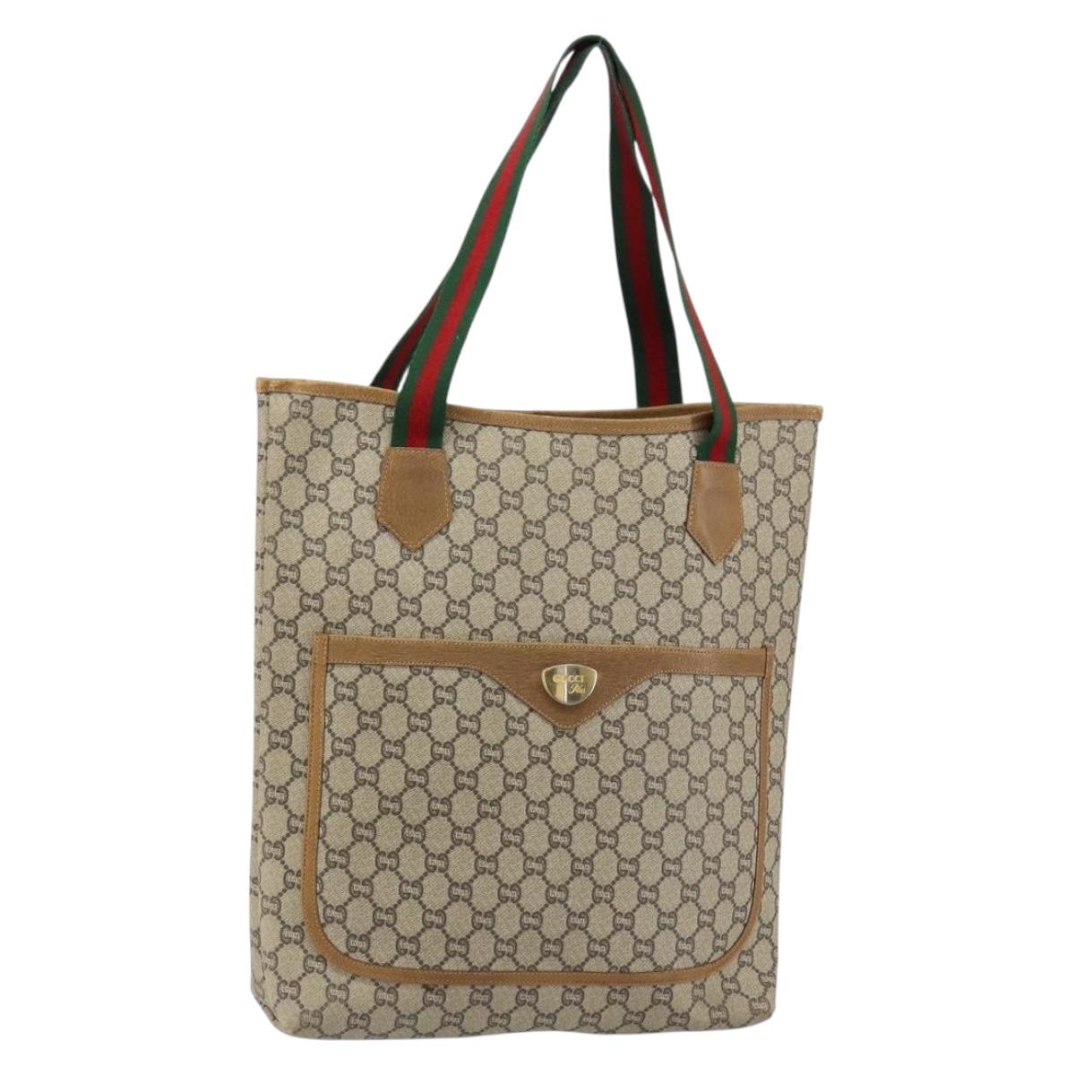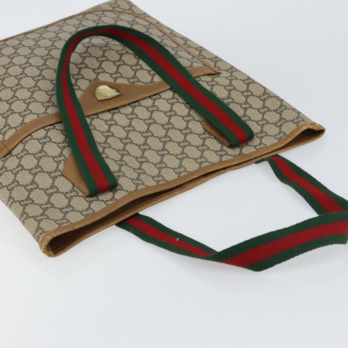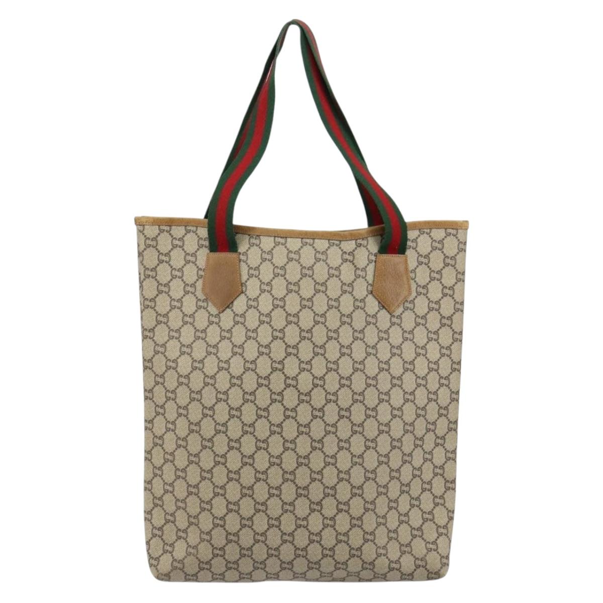 GUCCI GG Plus Supreme Web Sherry Line Tote Bag PVC Beige Gold Auth gh1122