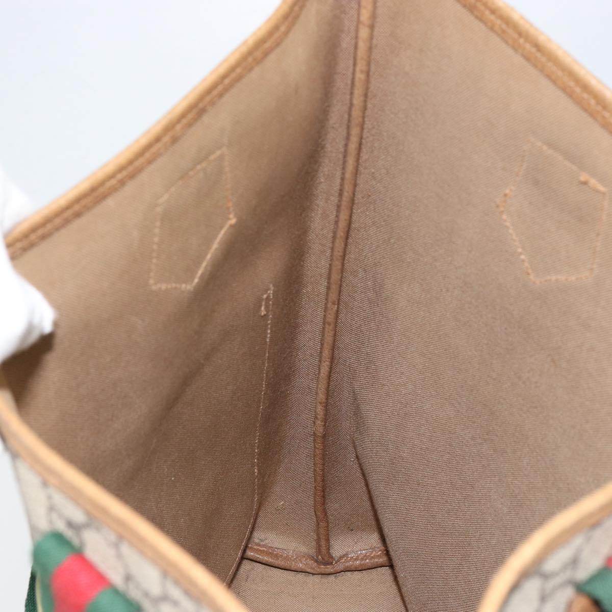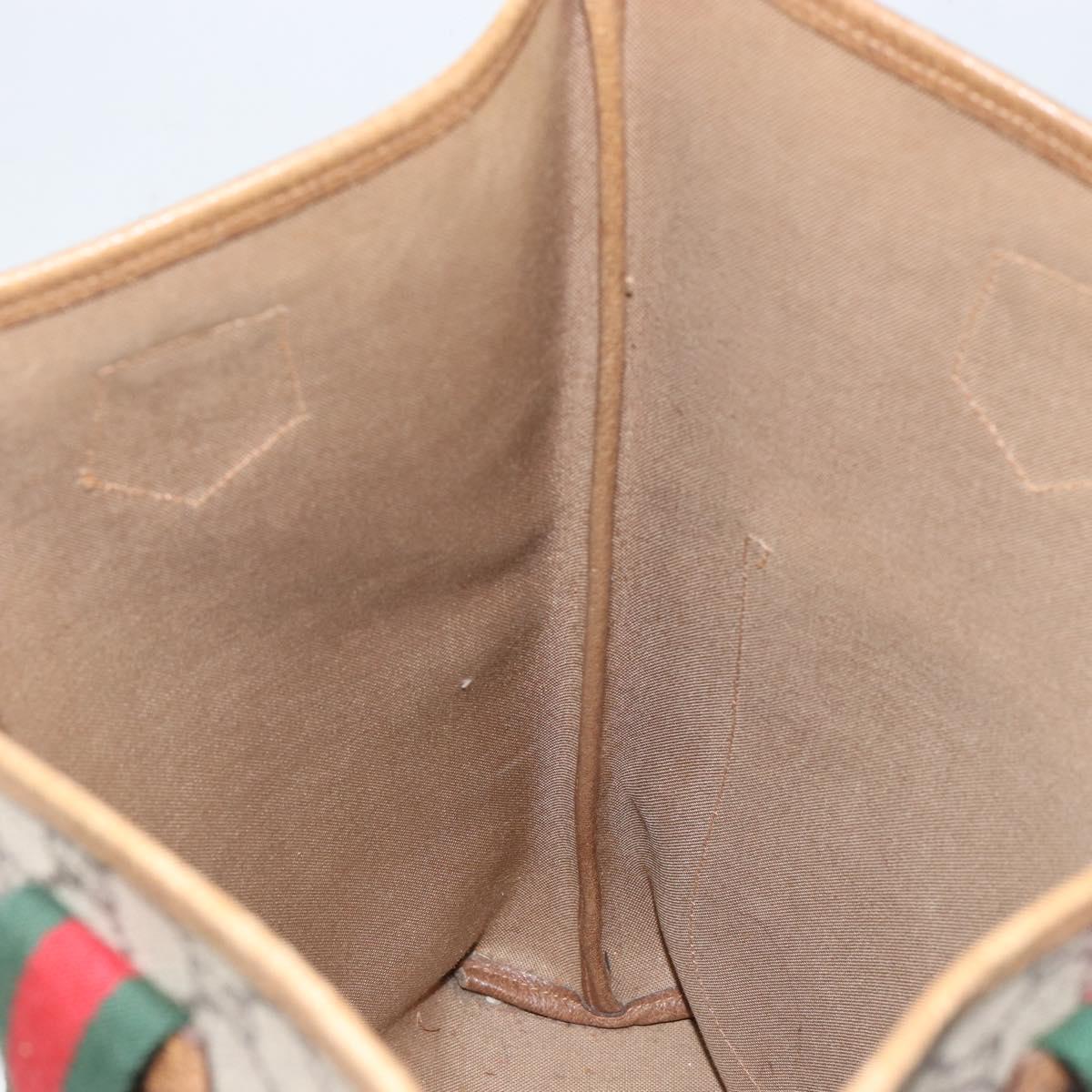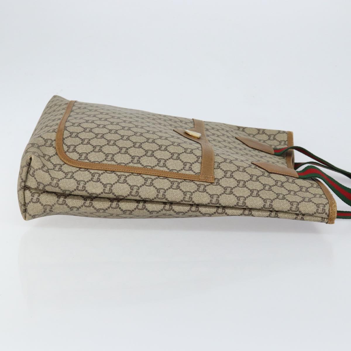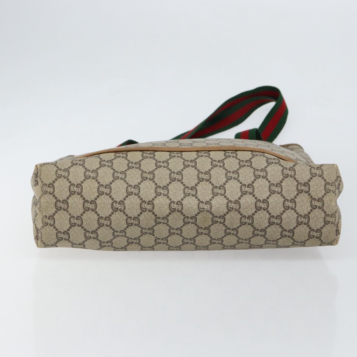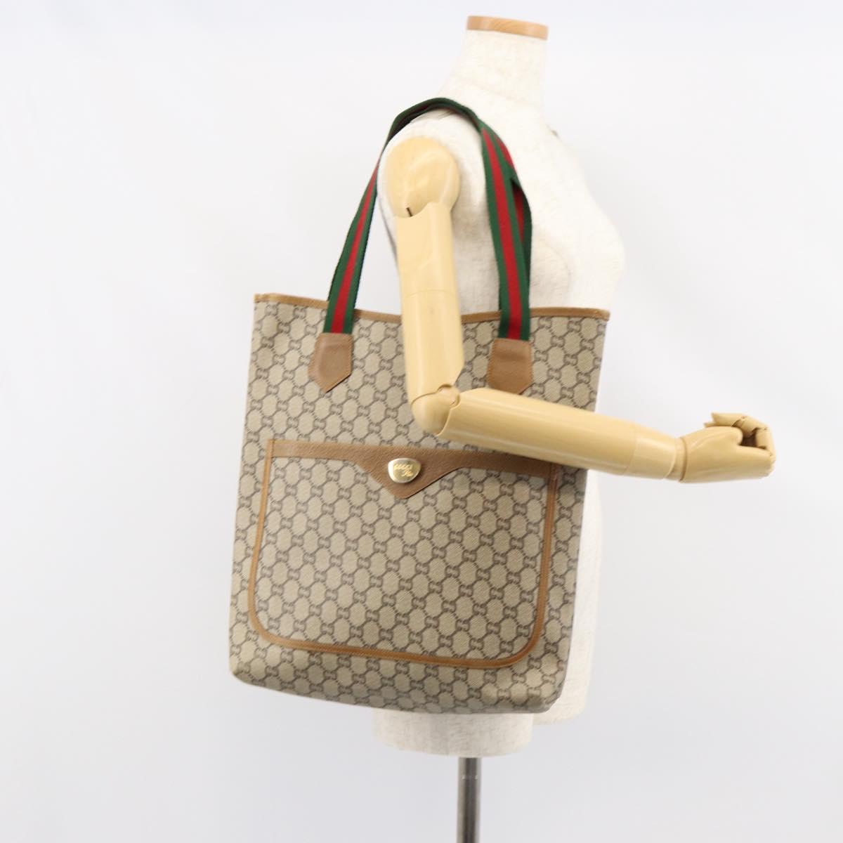 GUCCI GG Plus Supreme Web Sherry Line Tote Bag PVC Beige Gold Auth gh1122