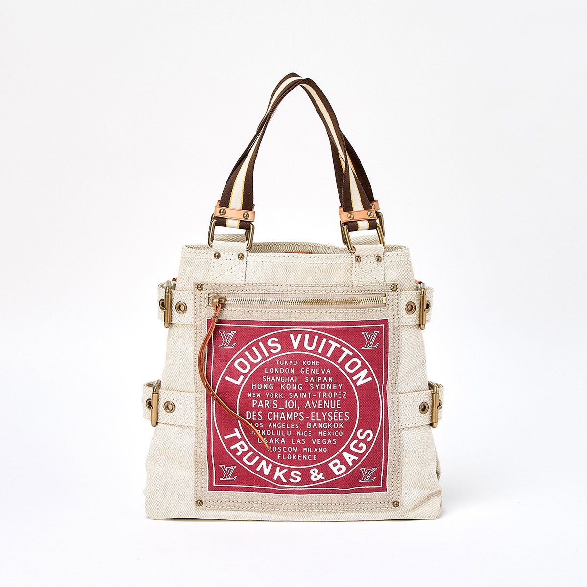 LOUIS VUITTON Globe Shopper MM Tote Bag M95112 Red Gold Canvas Auth