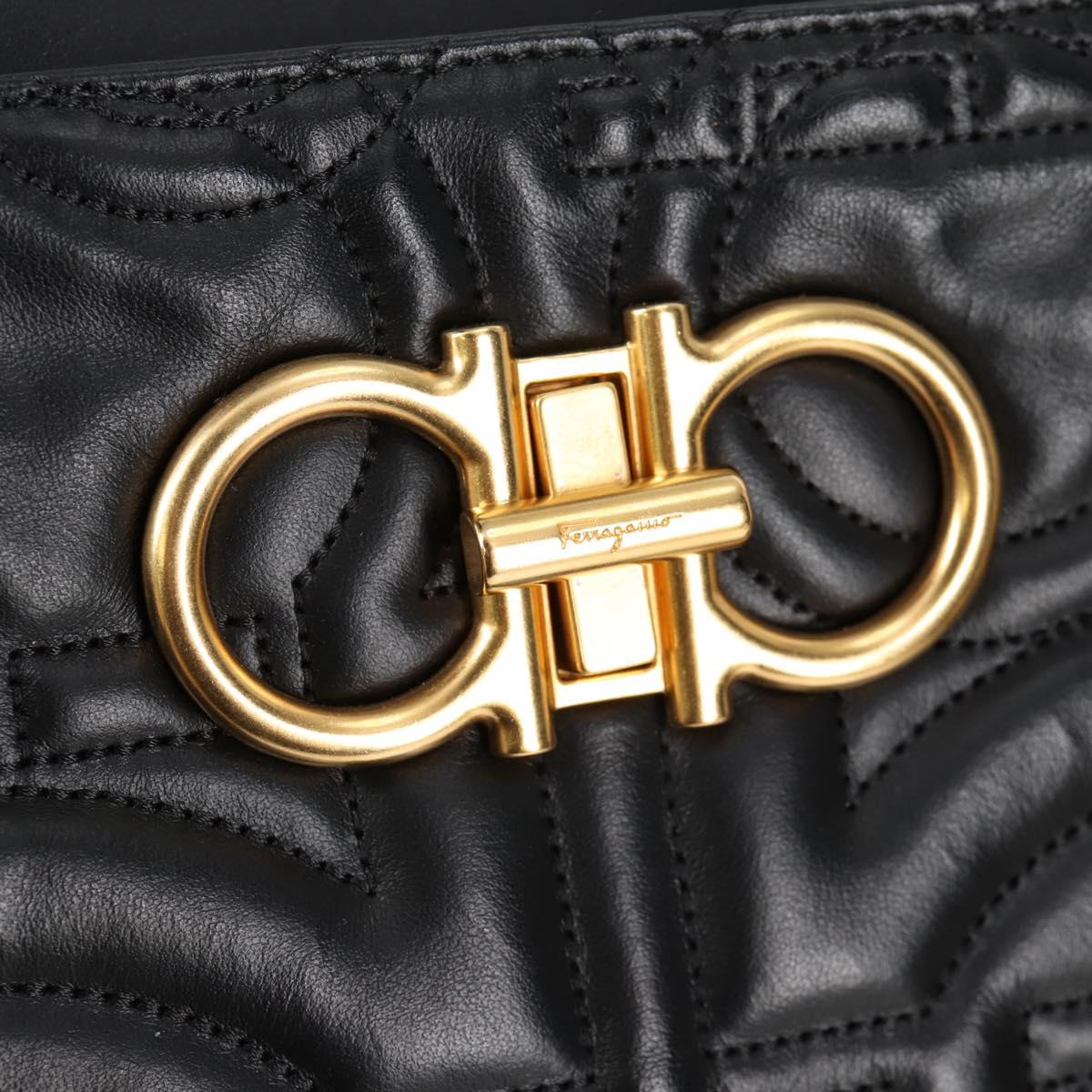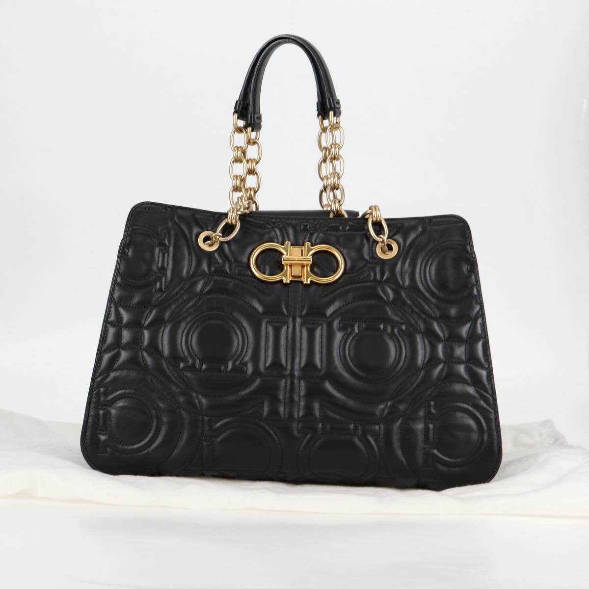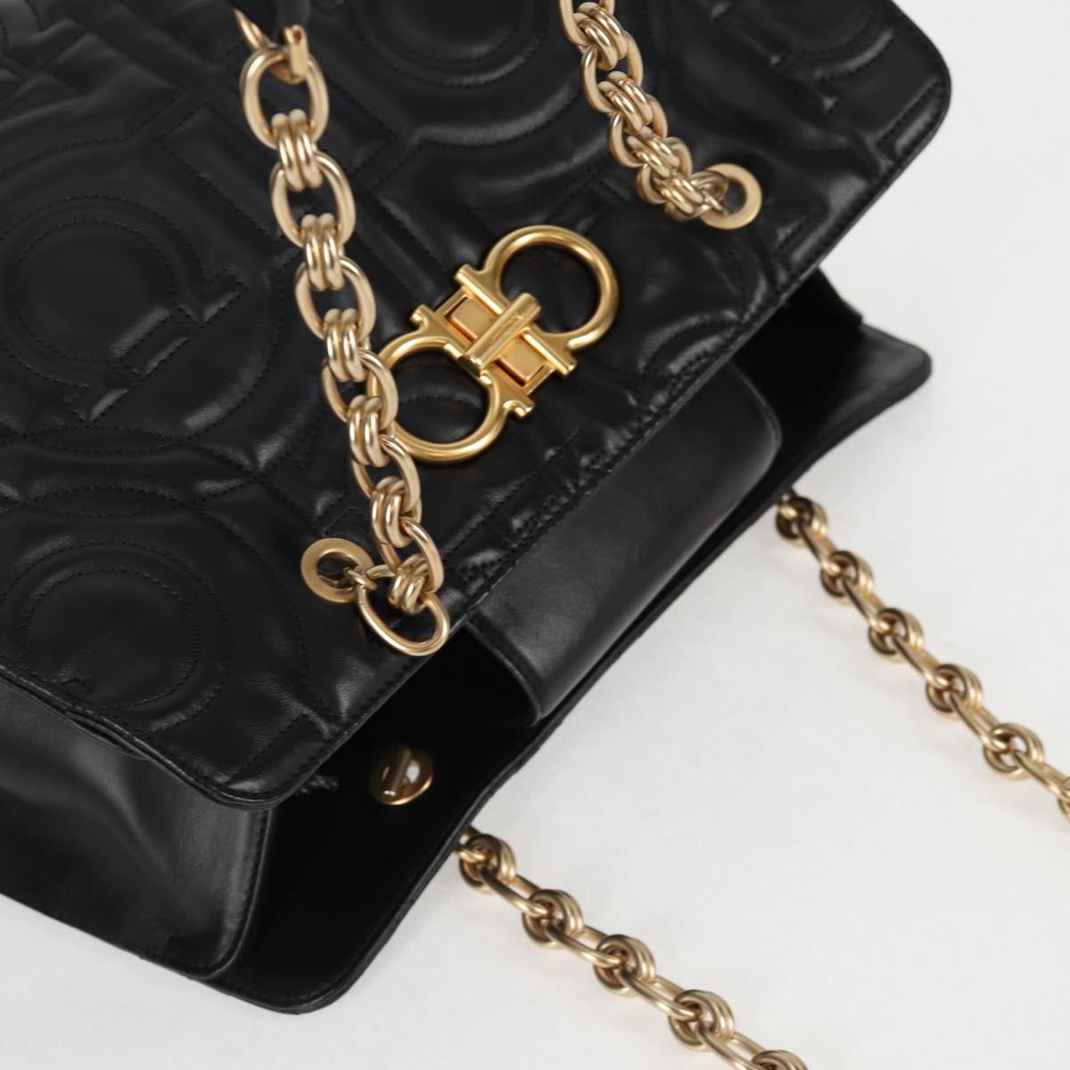 Salvatore Ferragamo Chain Tote Bag Leather Black Gold Auth 128371M