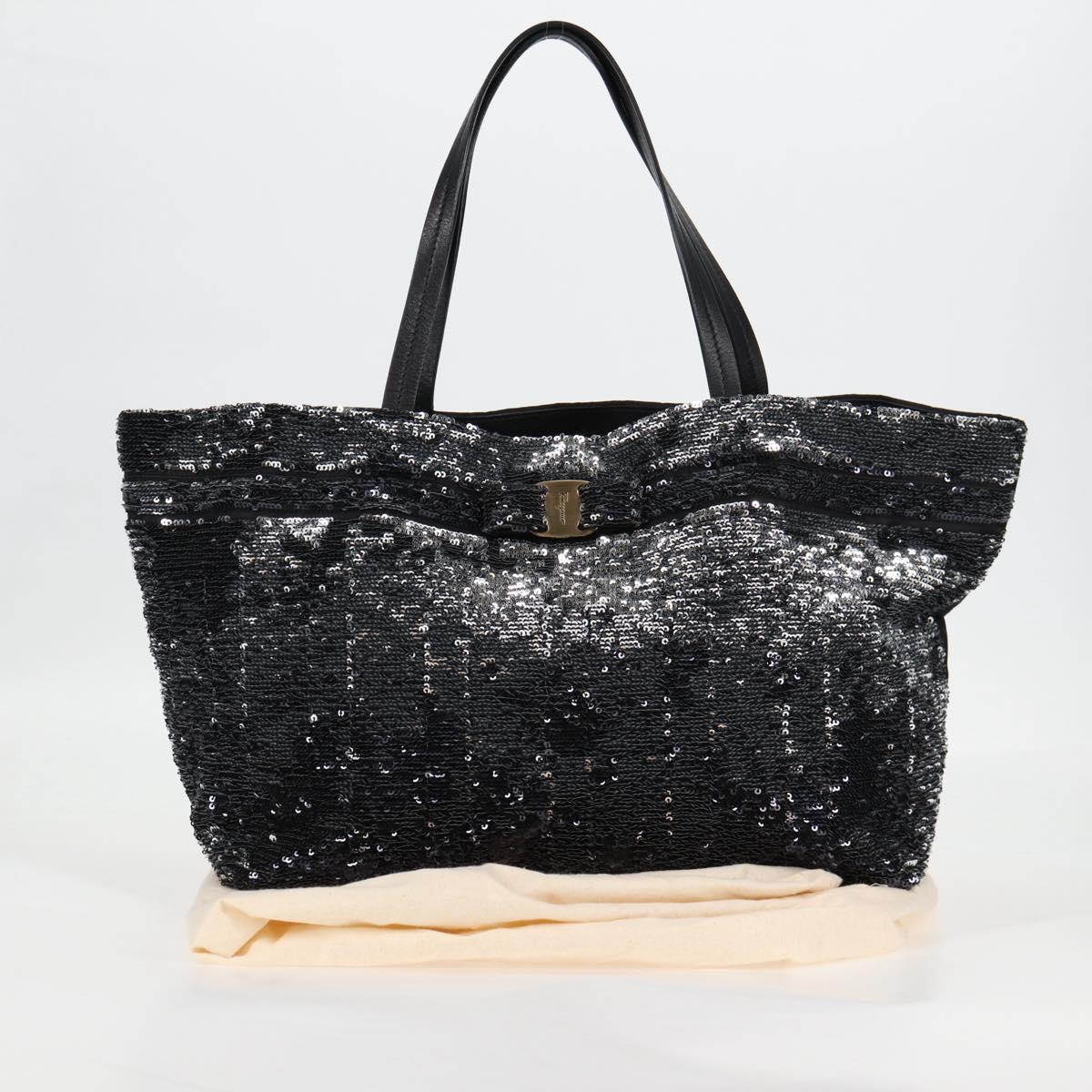 Salvatore Ferragamo Sequin Tote Bag Nylon Black Auth 118787V