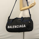 BALENCIAGA Boston Bag Canvas Black Silver Auth mr1018V