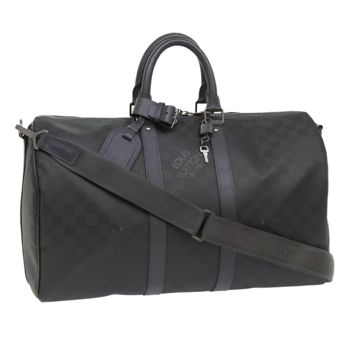 LOUIS VUITTON Damier Carbon Keepall Bandouliere 45 Bag Black N41324 Auth 46967SV