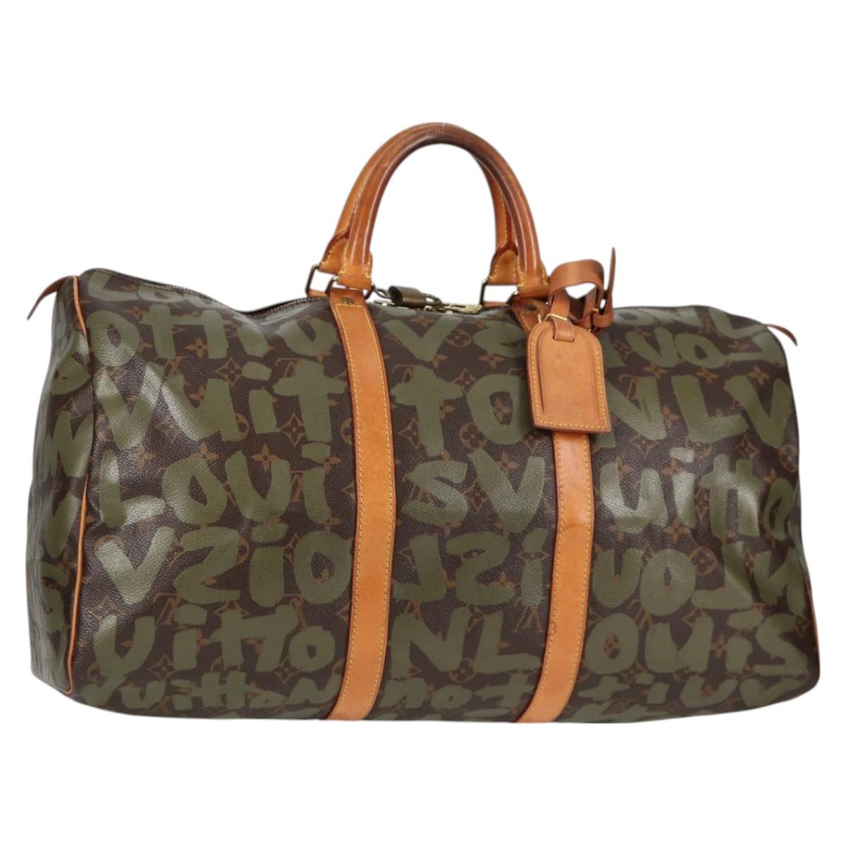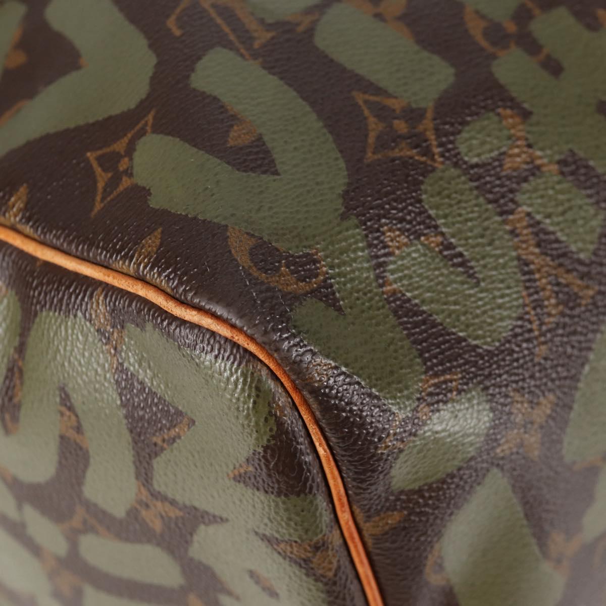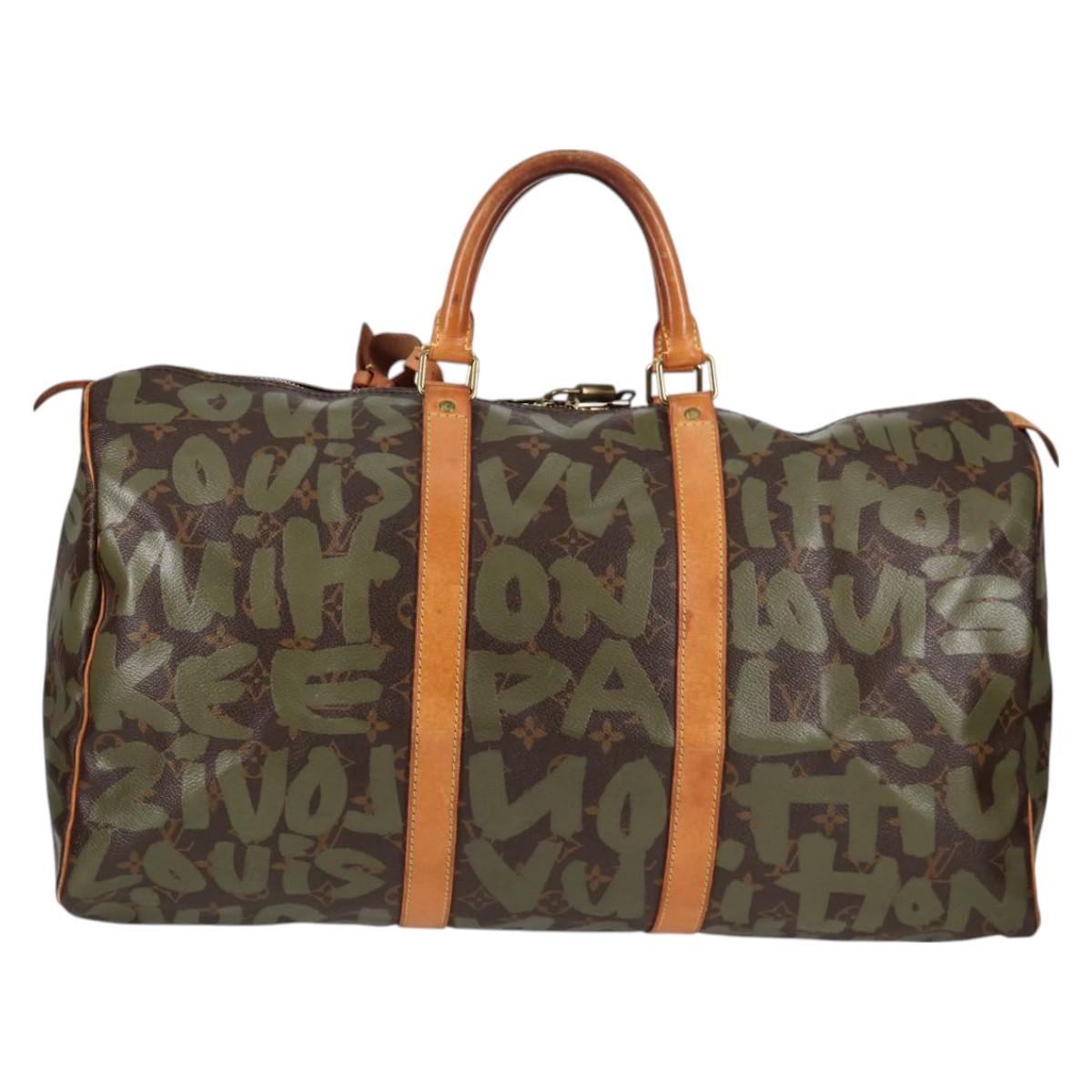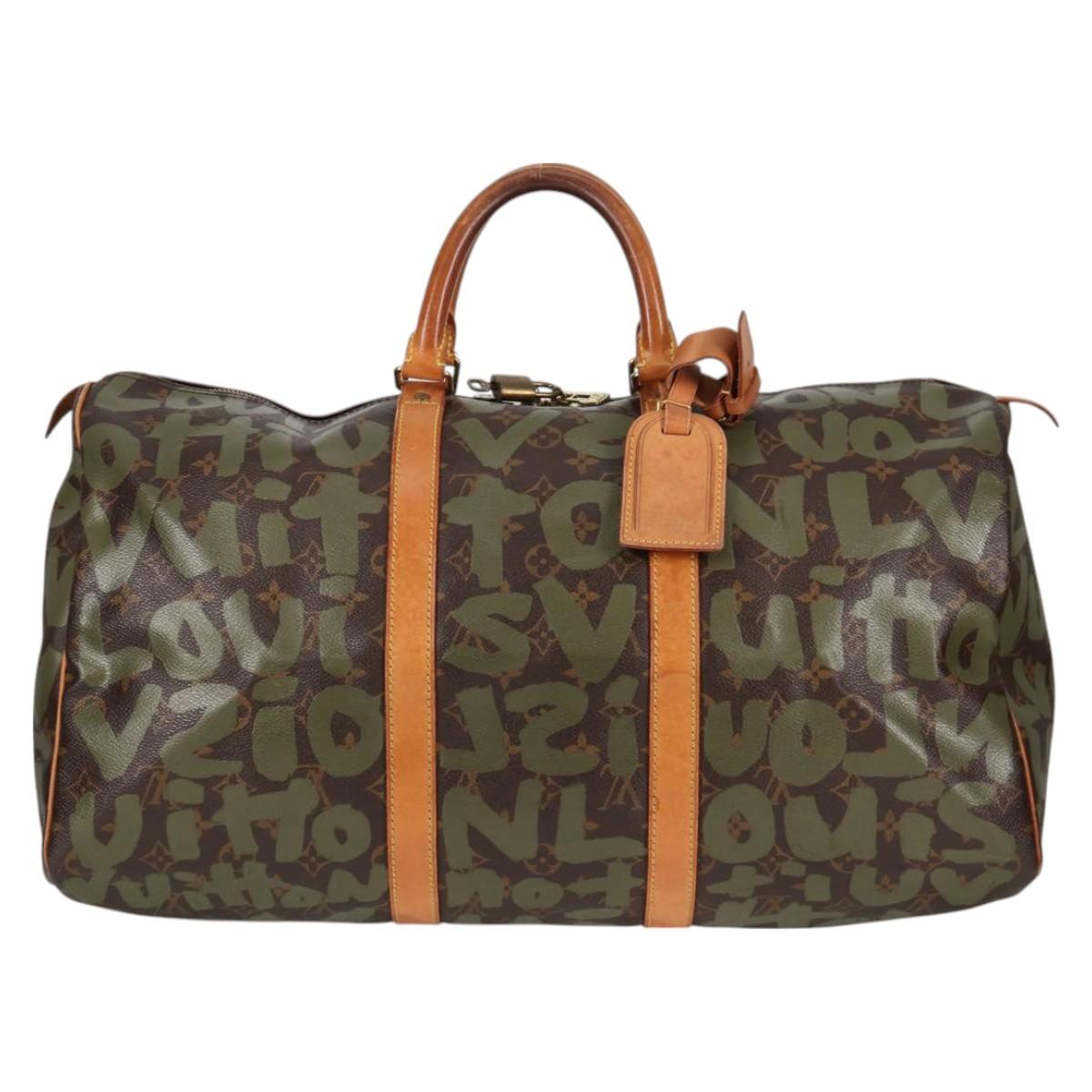LOUIS VUITTON Monogram Graffiti Keepall 50 Boston Bag Khaki M92196 Auth 121521V
