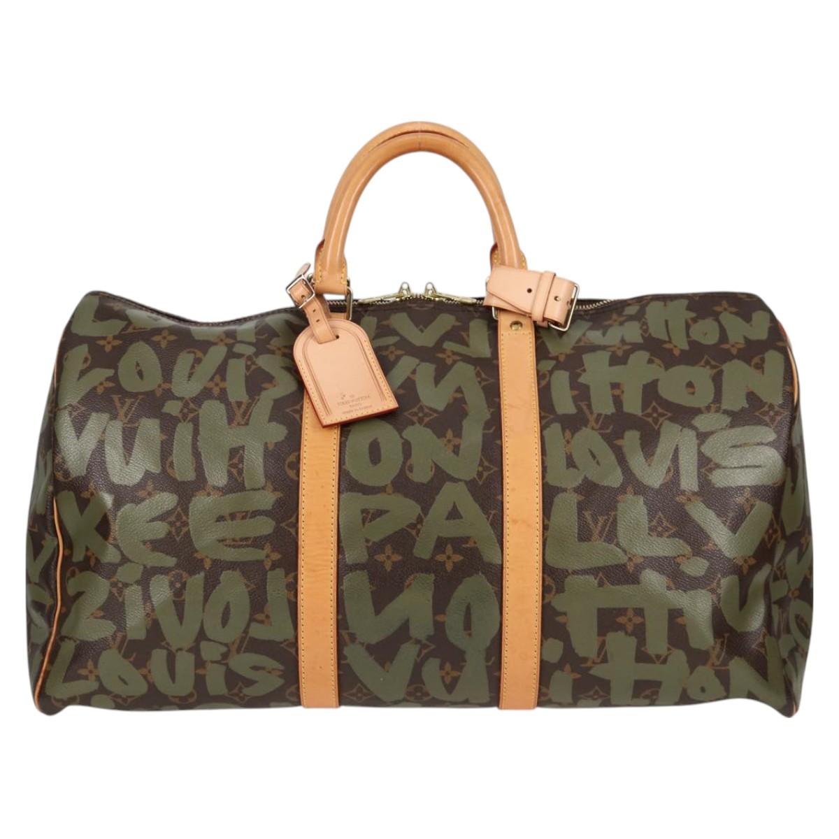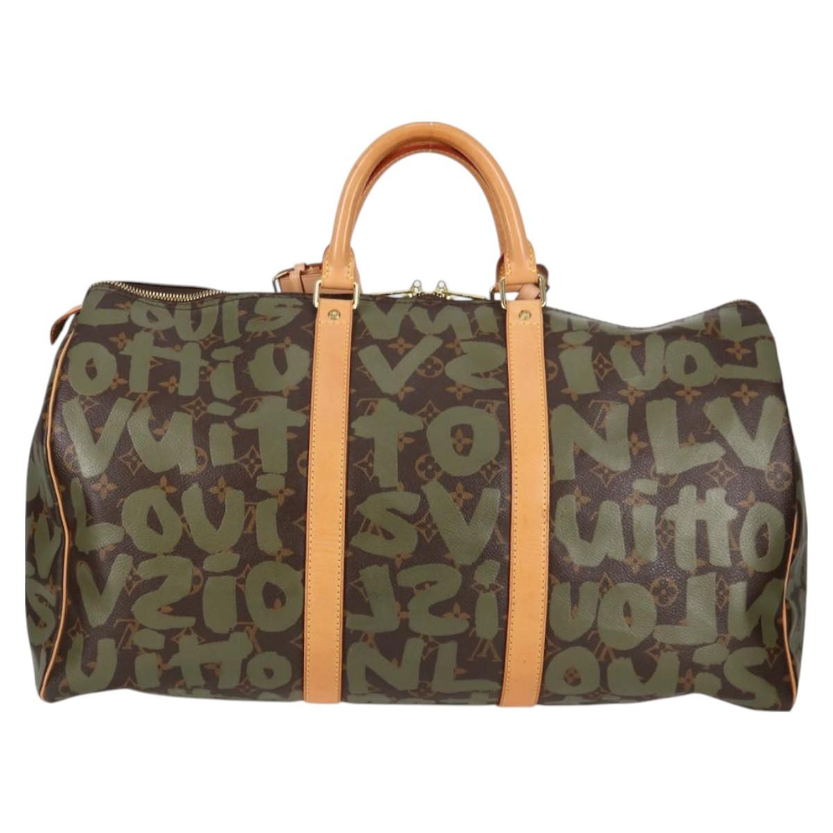 LOUIS VUITTON Monogram Graffiti Keepall 50 Boston Bag Khaki M92196 Auth 126567V