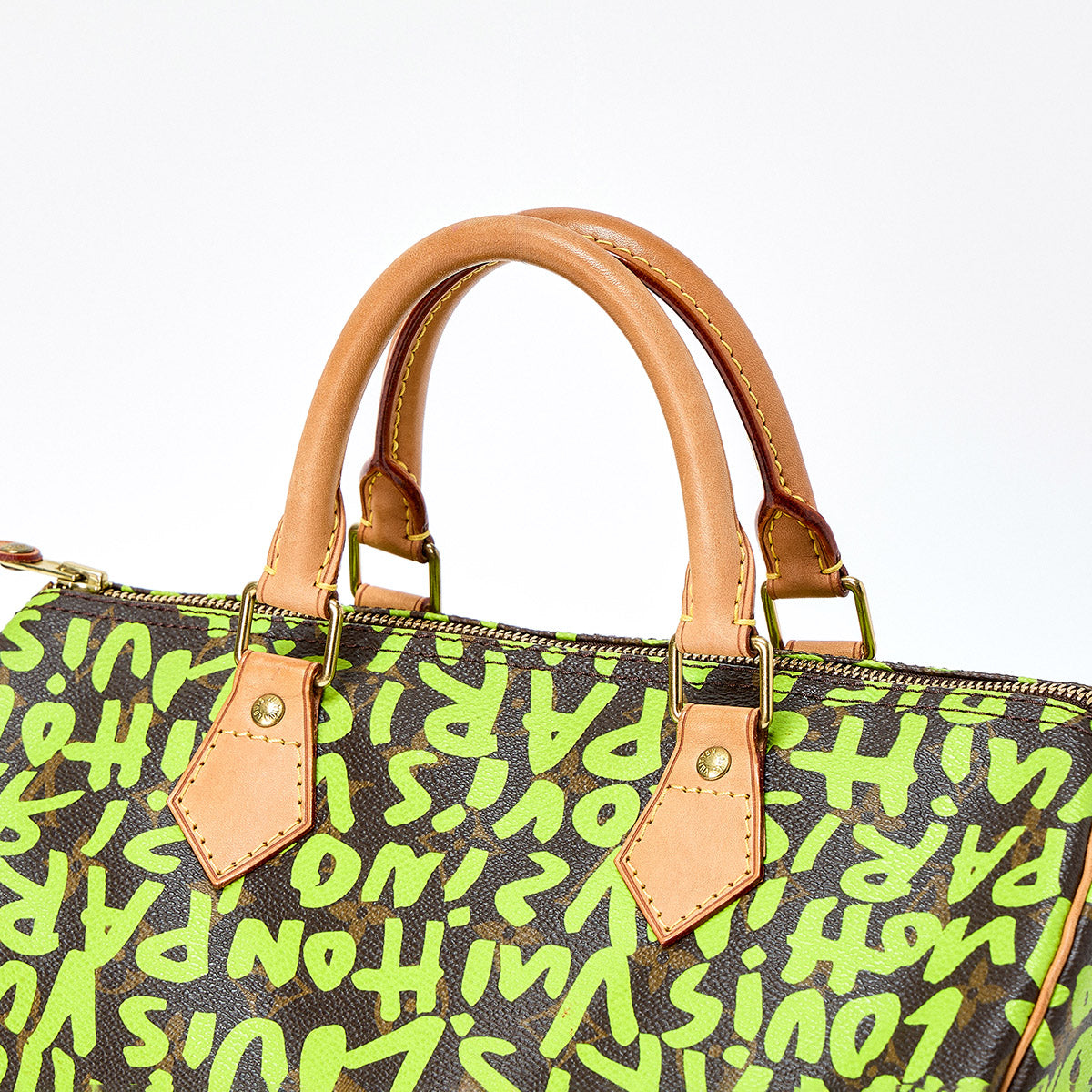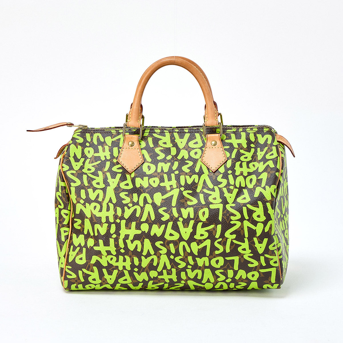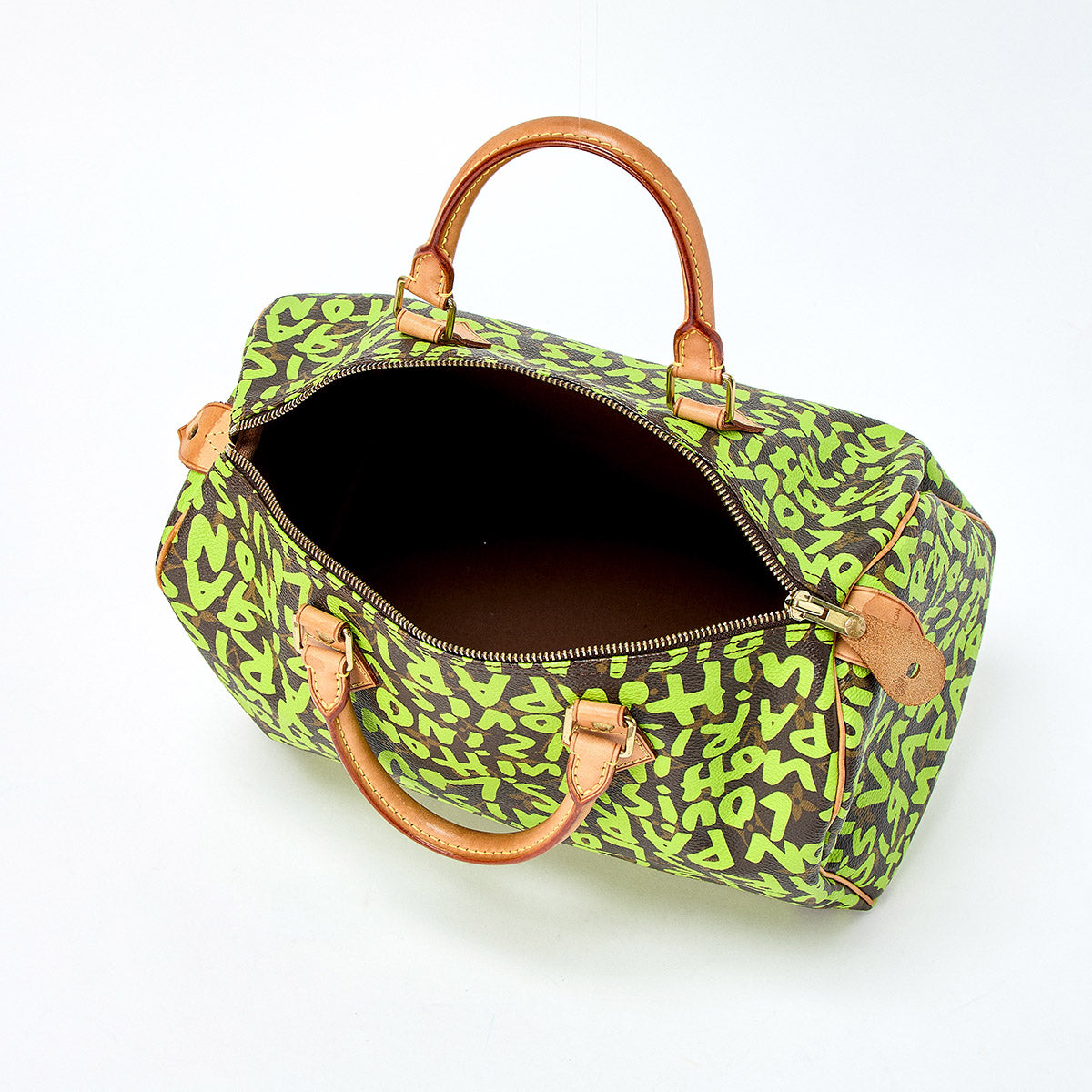 LOUIS VUITTON Monogram Graffiti Speedy 30 Boston Bag Green Brown Gold PVC Auth