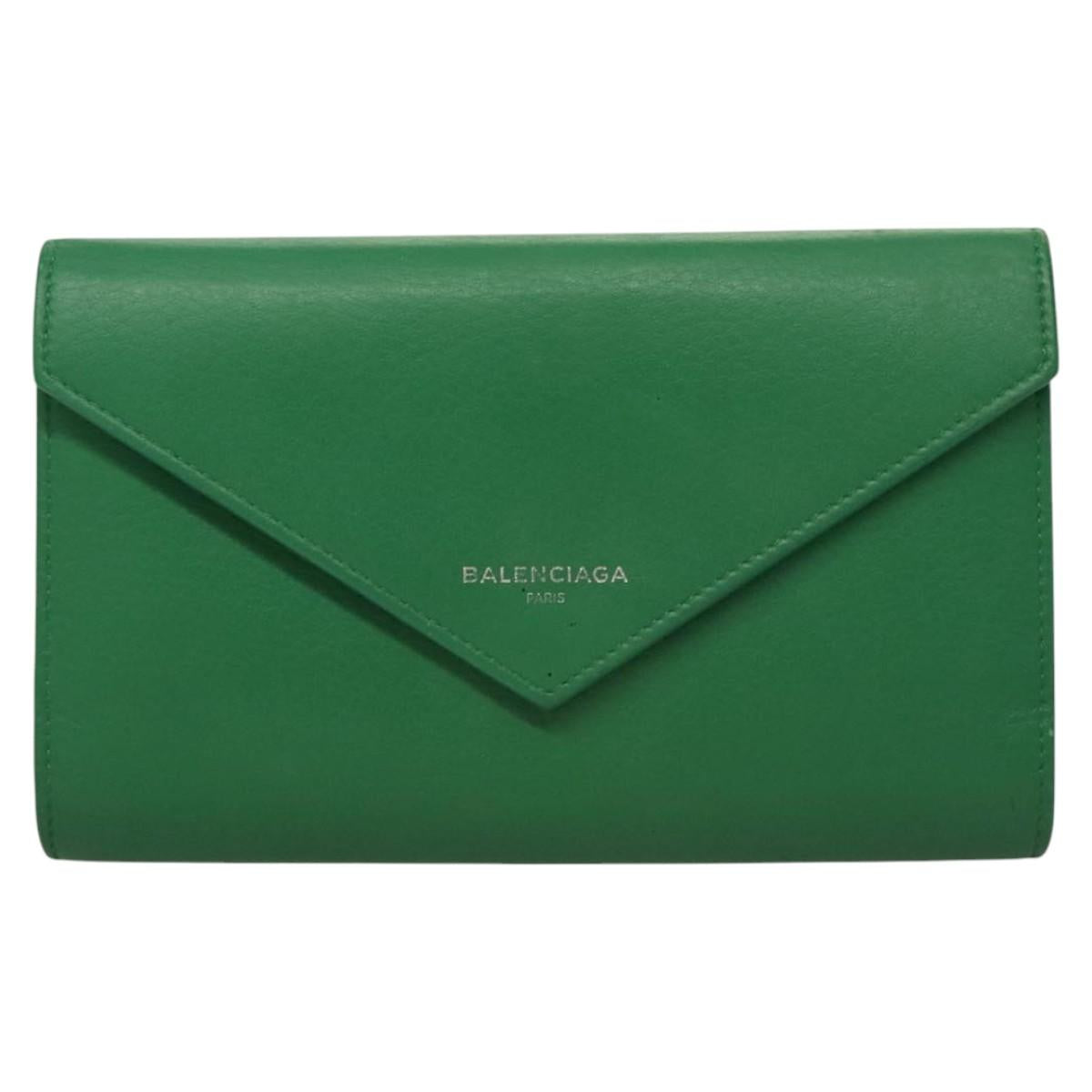BALENCIAGA Paper Money Zip Around Wallet Leather Green 371661 Auth sw166V