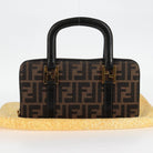 FENDI Zucca Canvas Hand Wallet Black Brown gold Auth 124173V