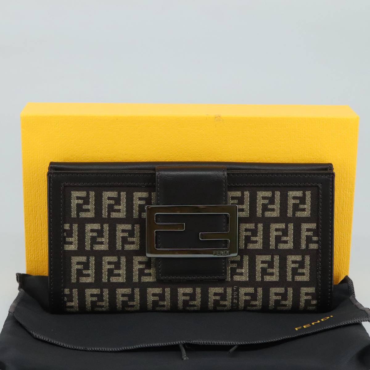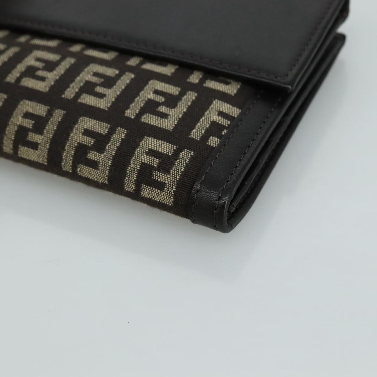 FENDI Zucchino Canvas Wallet Brown Auth am7414V