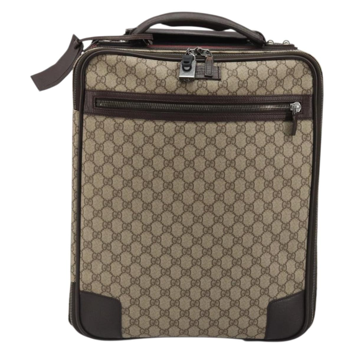 GUCCI GG Supreme Web Sherry Line Carry Case PVC Beige Silver 131170 Auth 167187A