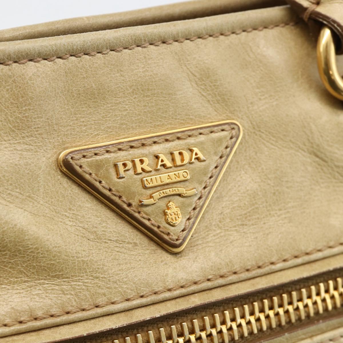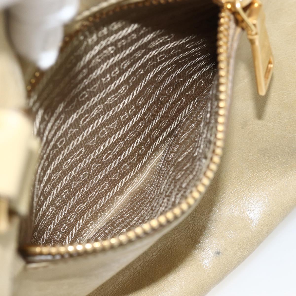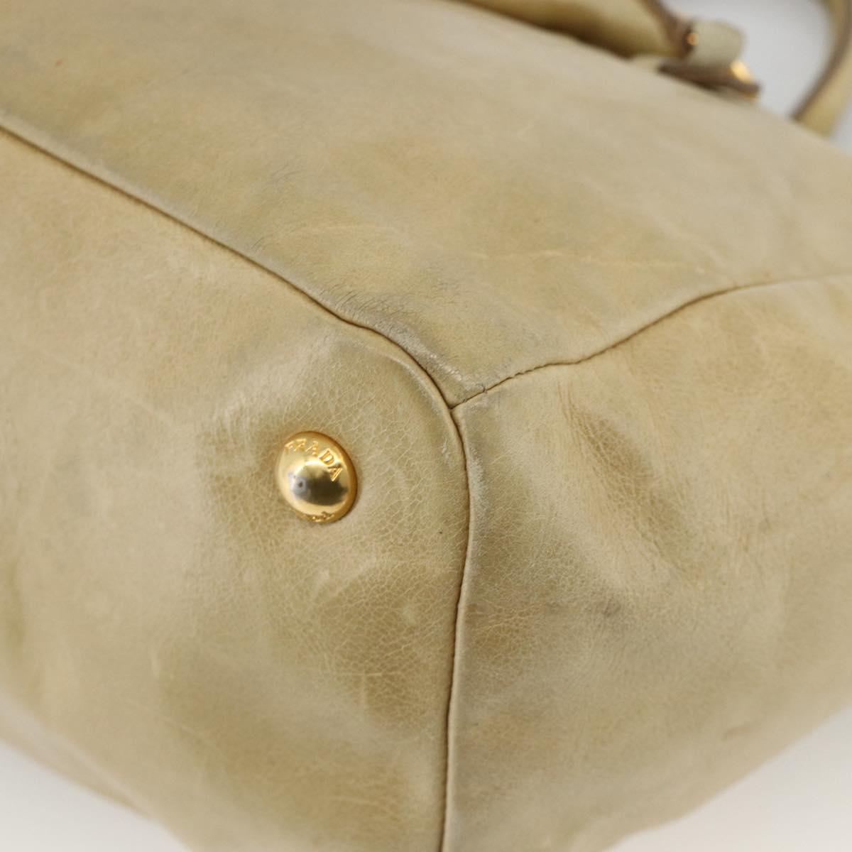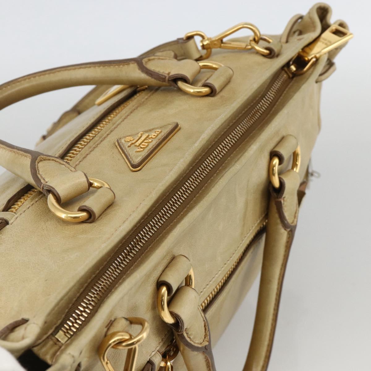 PRADA Hand Bag Leather 2way Beige Gold Auth 174345