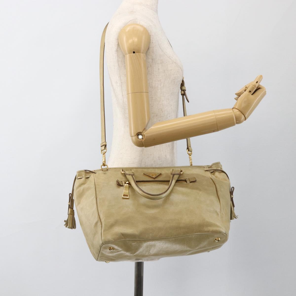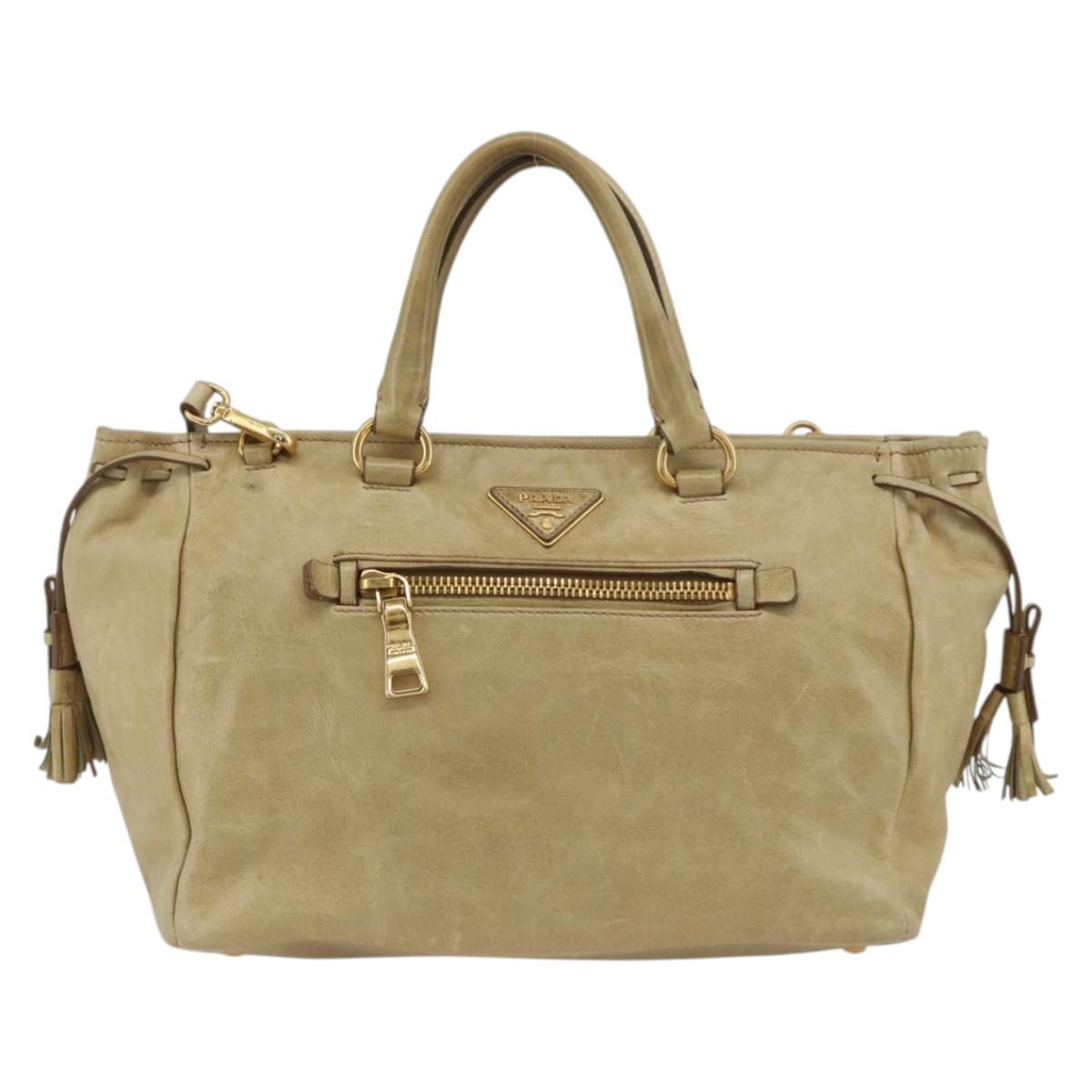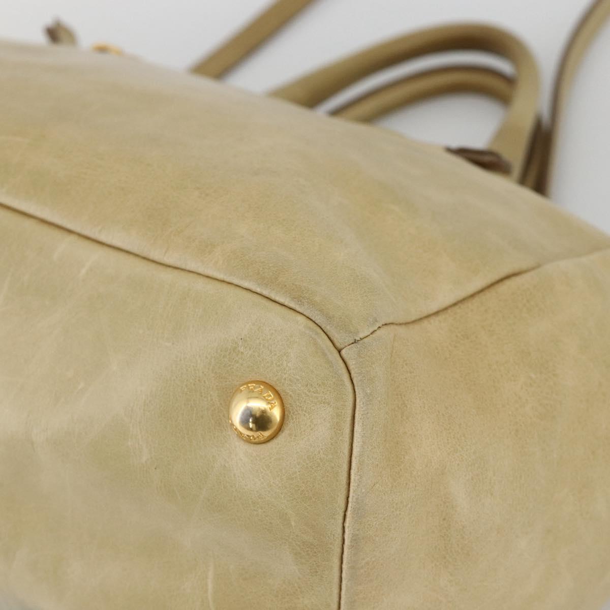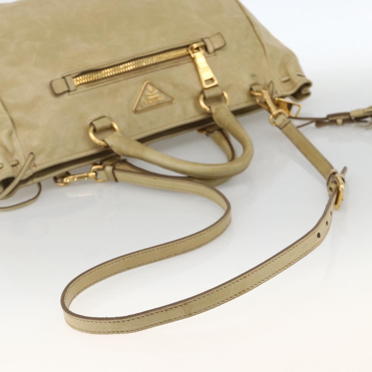 PRADA Hand Bag Leather 2way Beige Gold Auth 174345