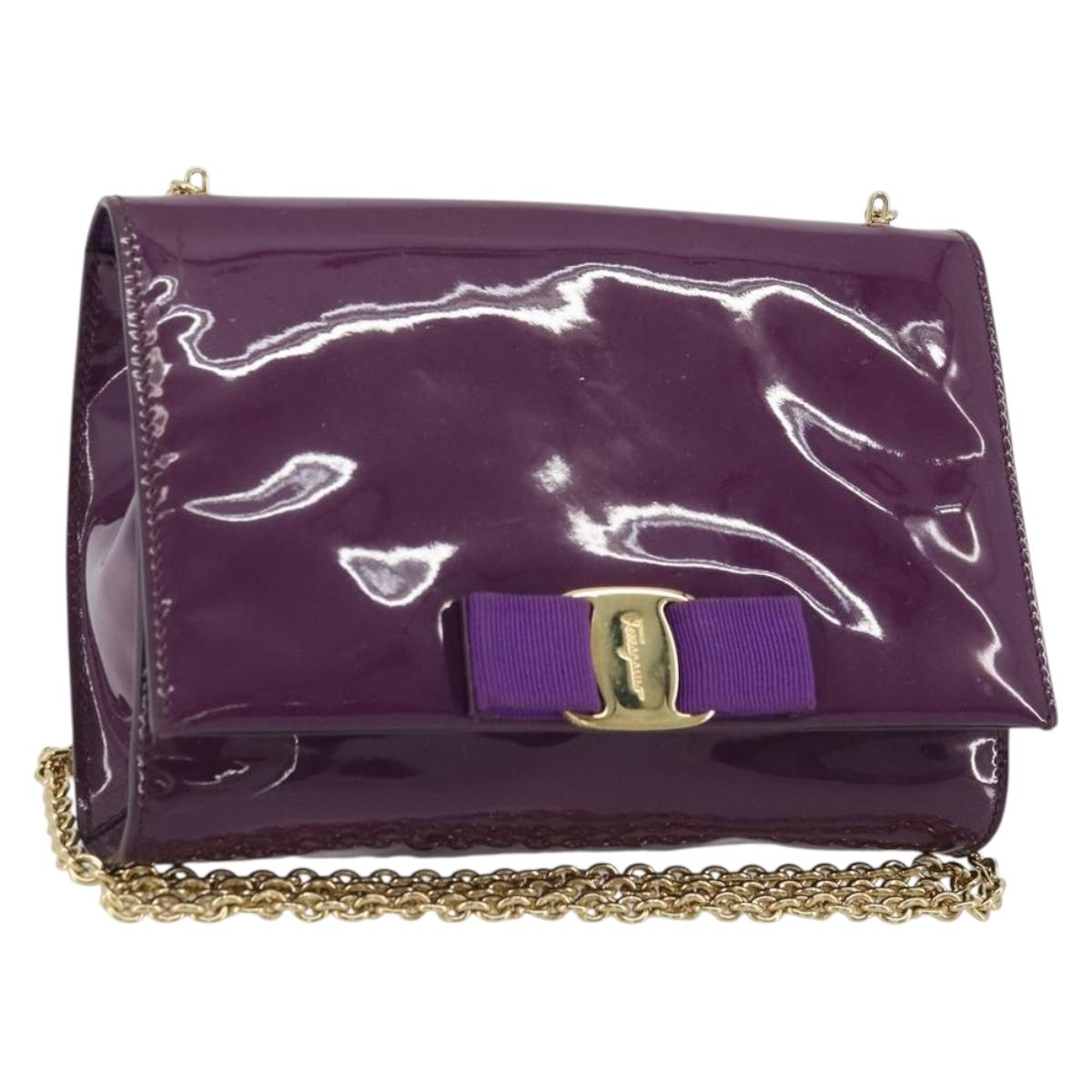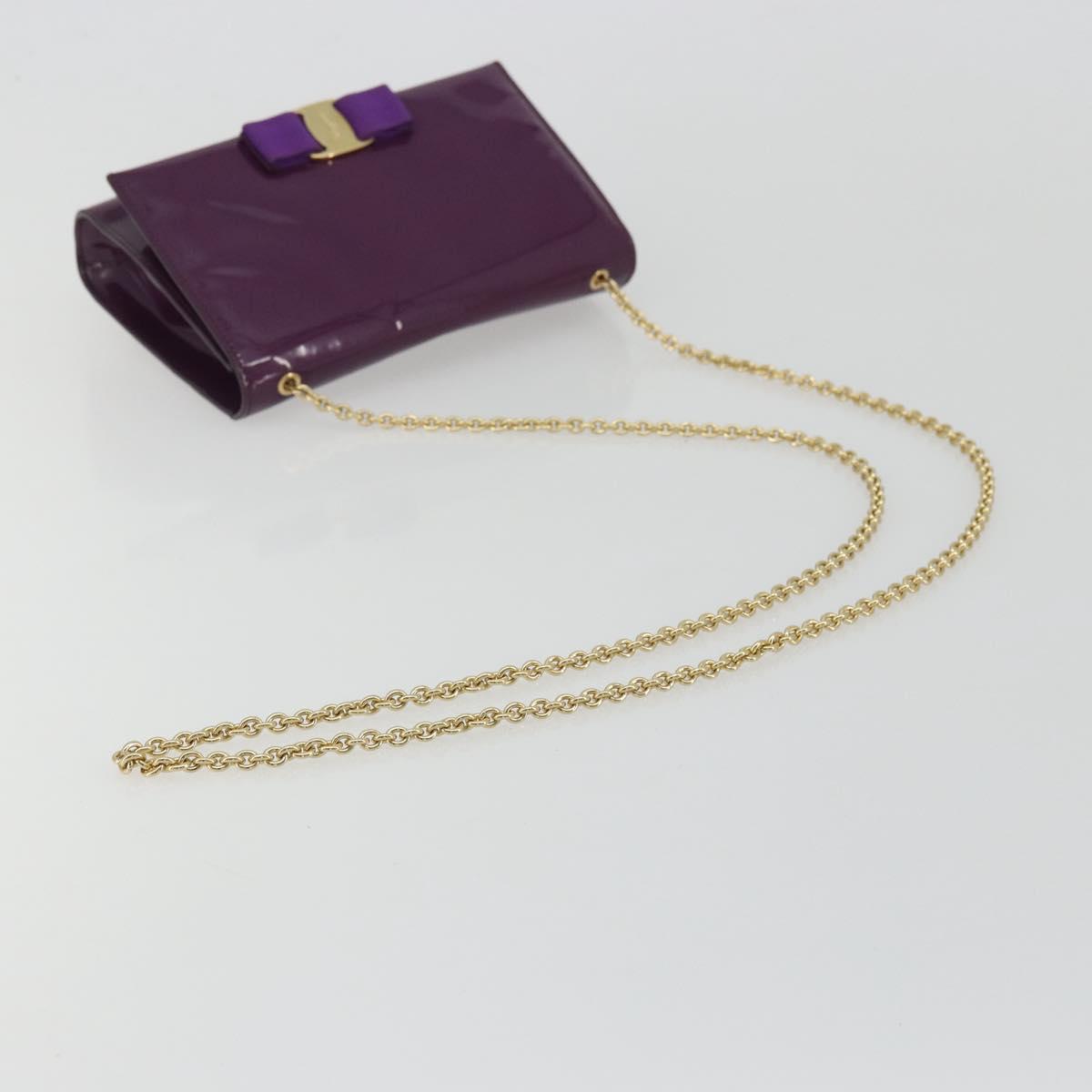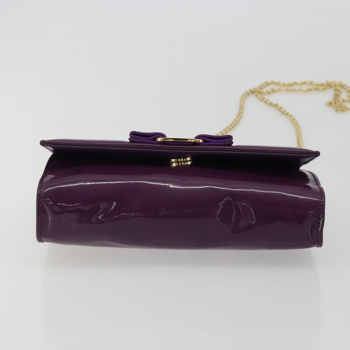 Salvatore Ferragamo Vala Chain Bag Patent leather Purple Gold Auth ARZ899