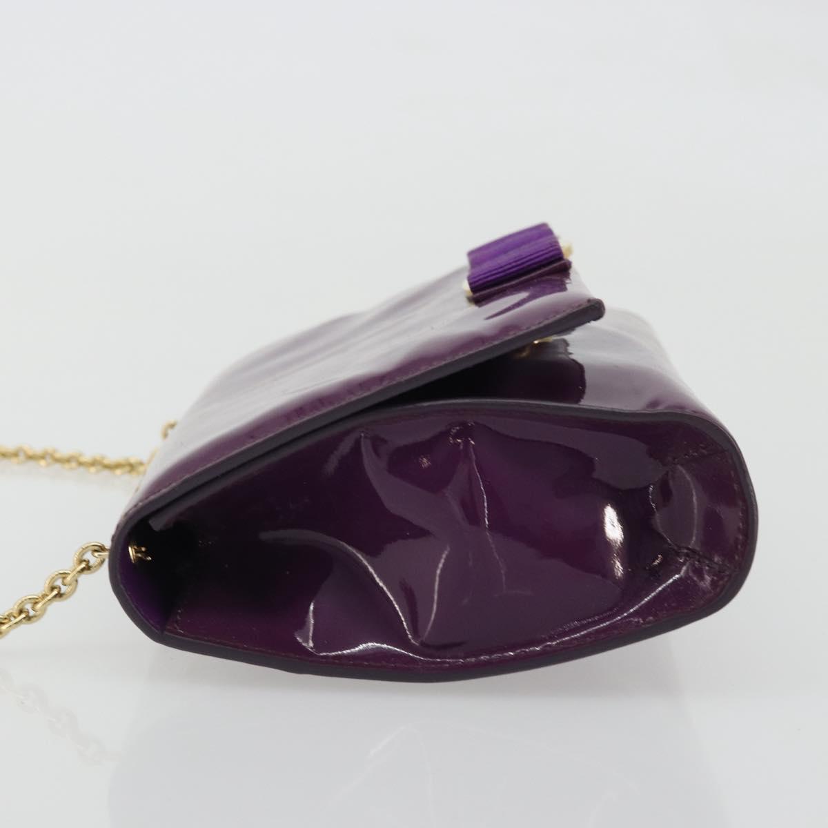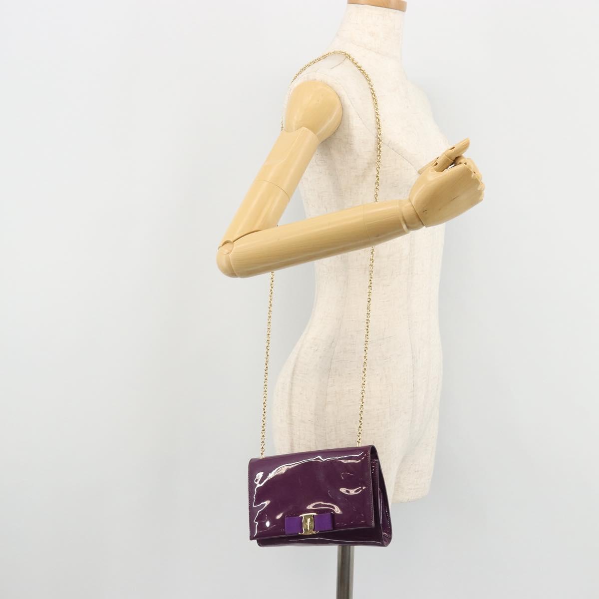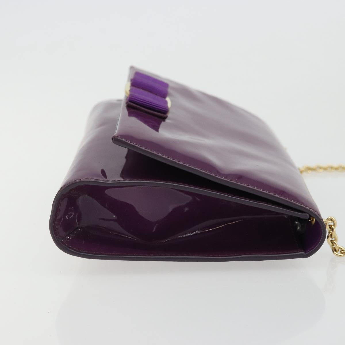 Salvatore Ferragamo Vala Chain Bag Patent leather Purple Gold Auth ARZ899