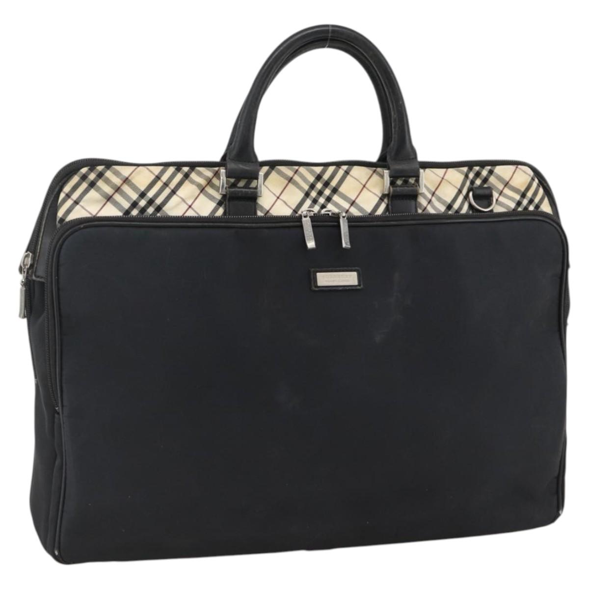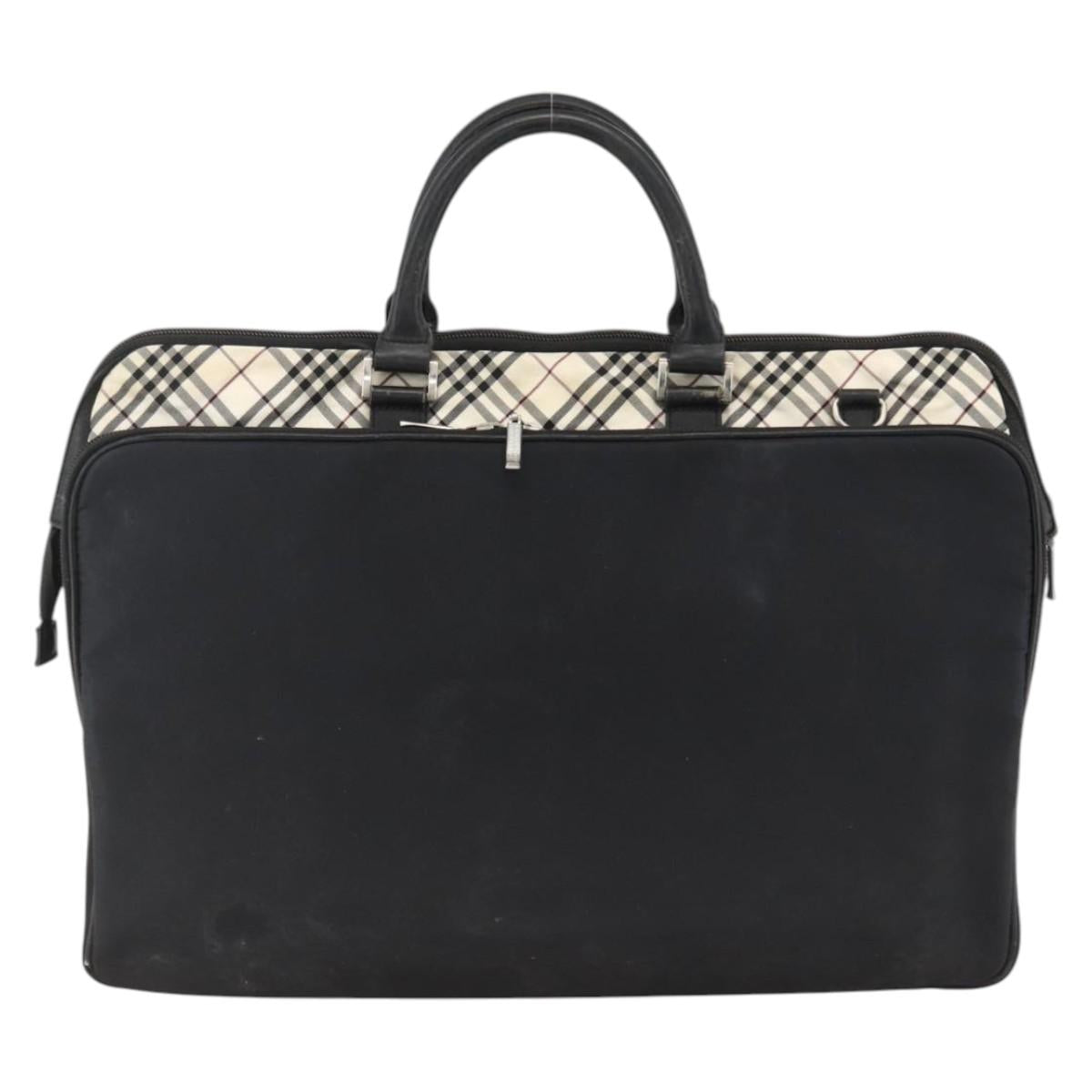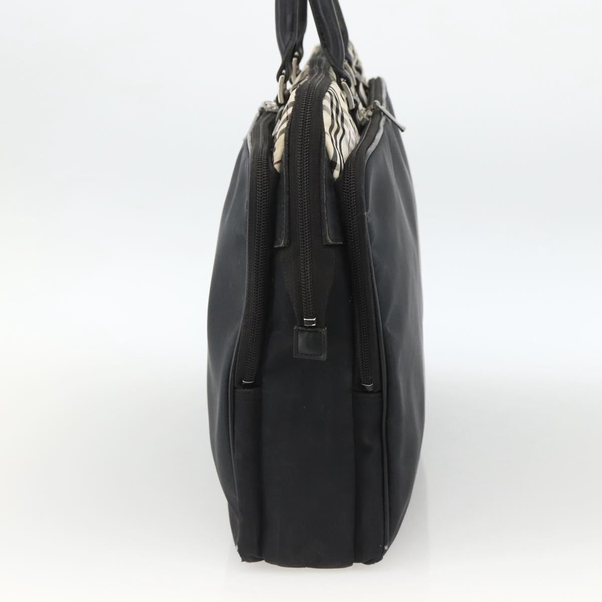 BURBERRY Nova Check Black label Hand Bag Nylon Silver Black Auth bs33588