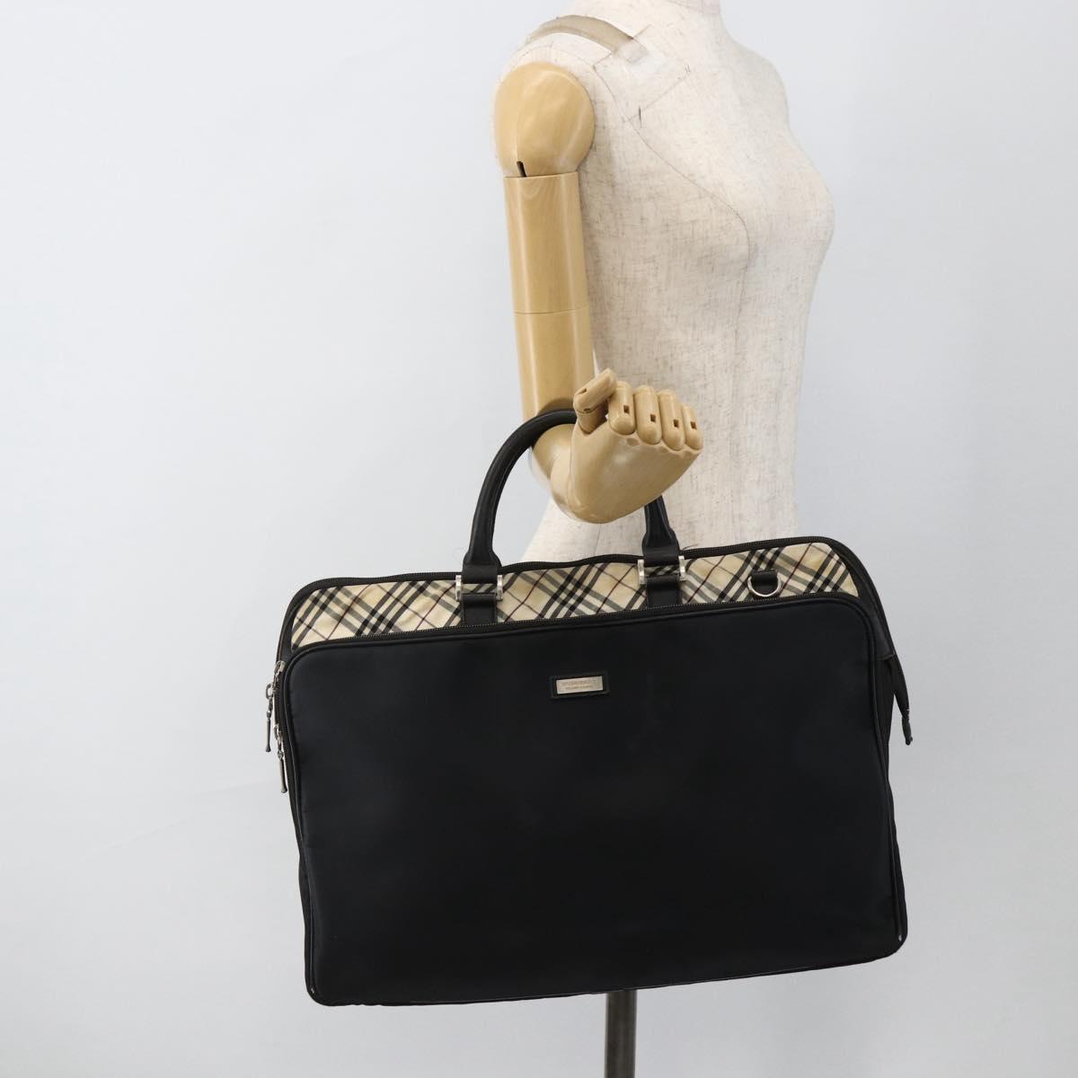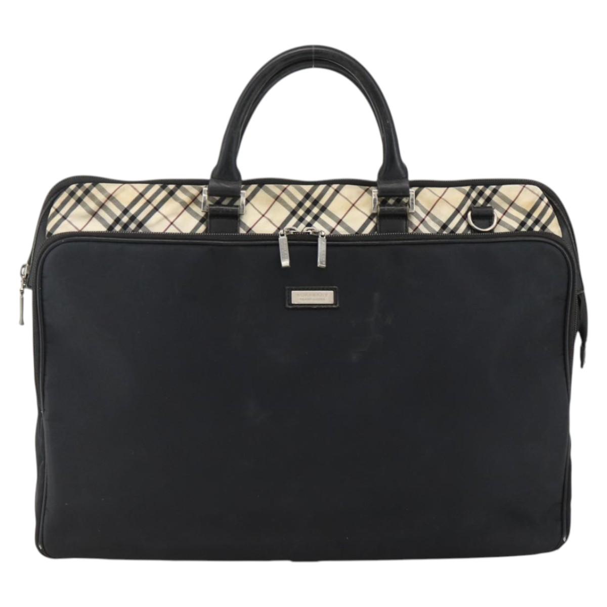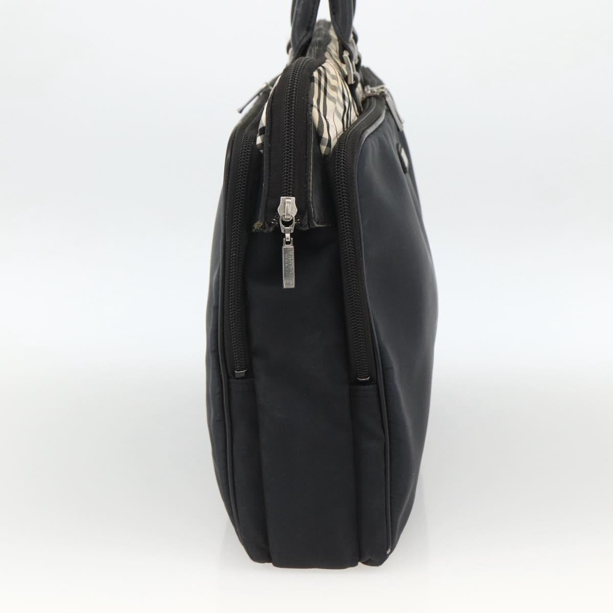 BURBERRY Nova Check Black label Hand Bag Nylon Silver Black Auth bs33588