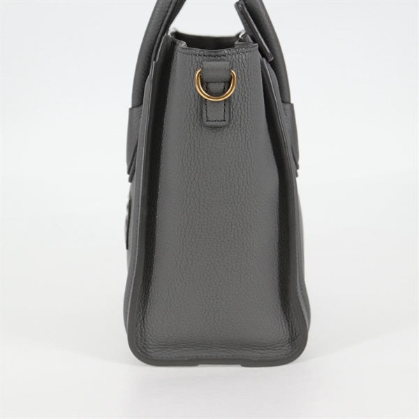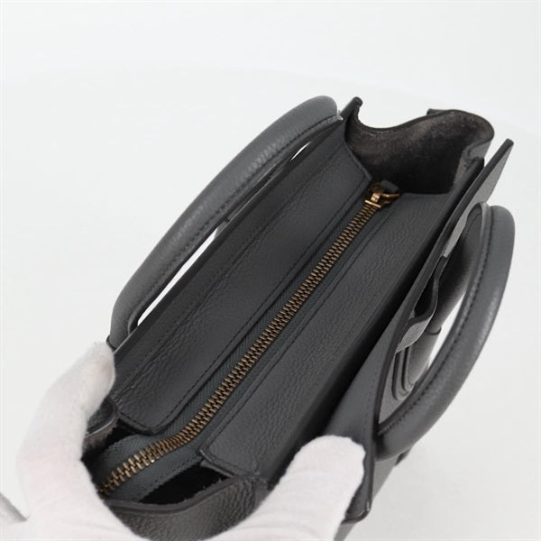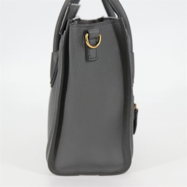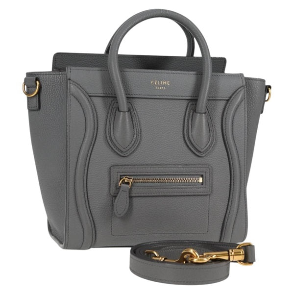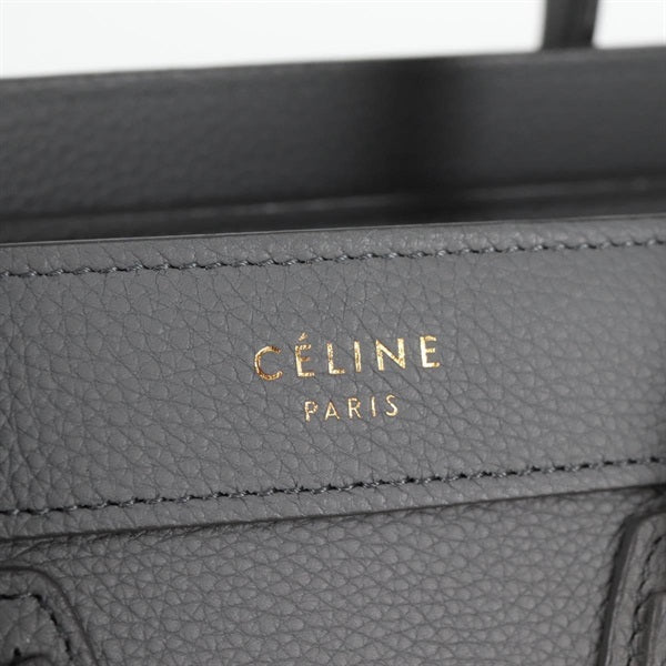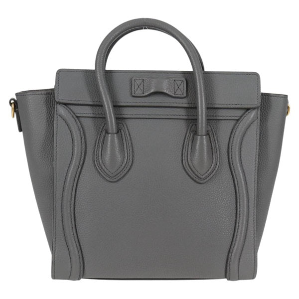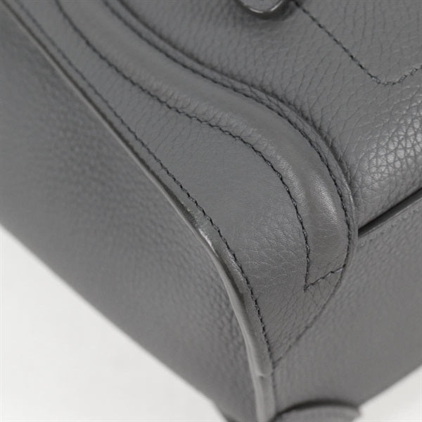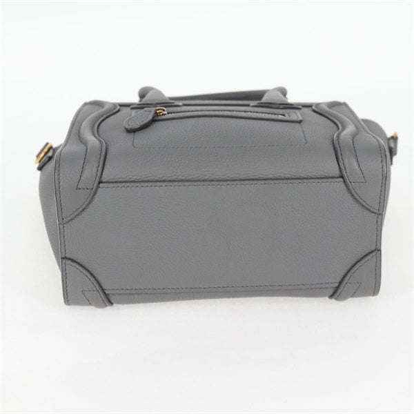 CELINE Luggage Nano Shopper Hand Bag Grey Matte Gold Leather Auth