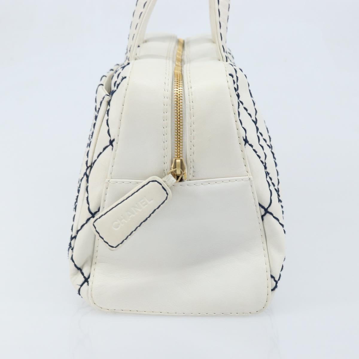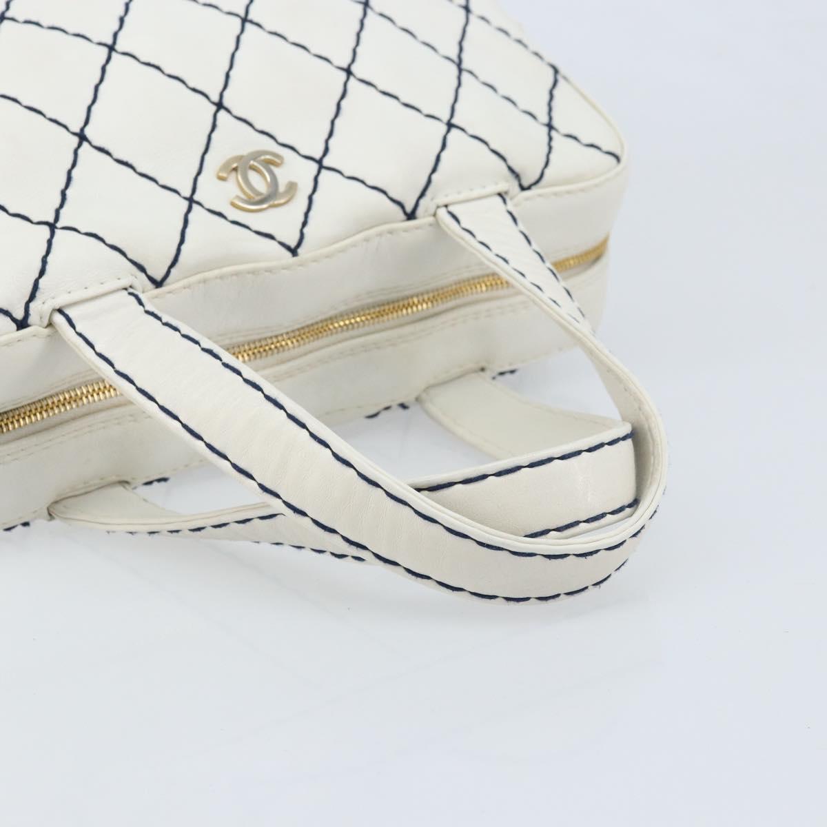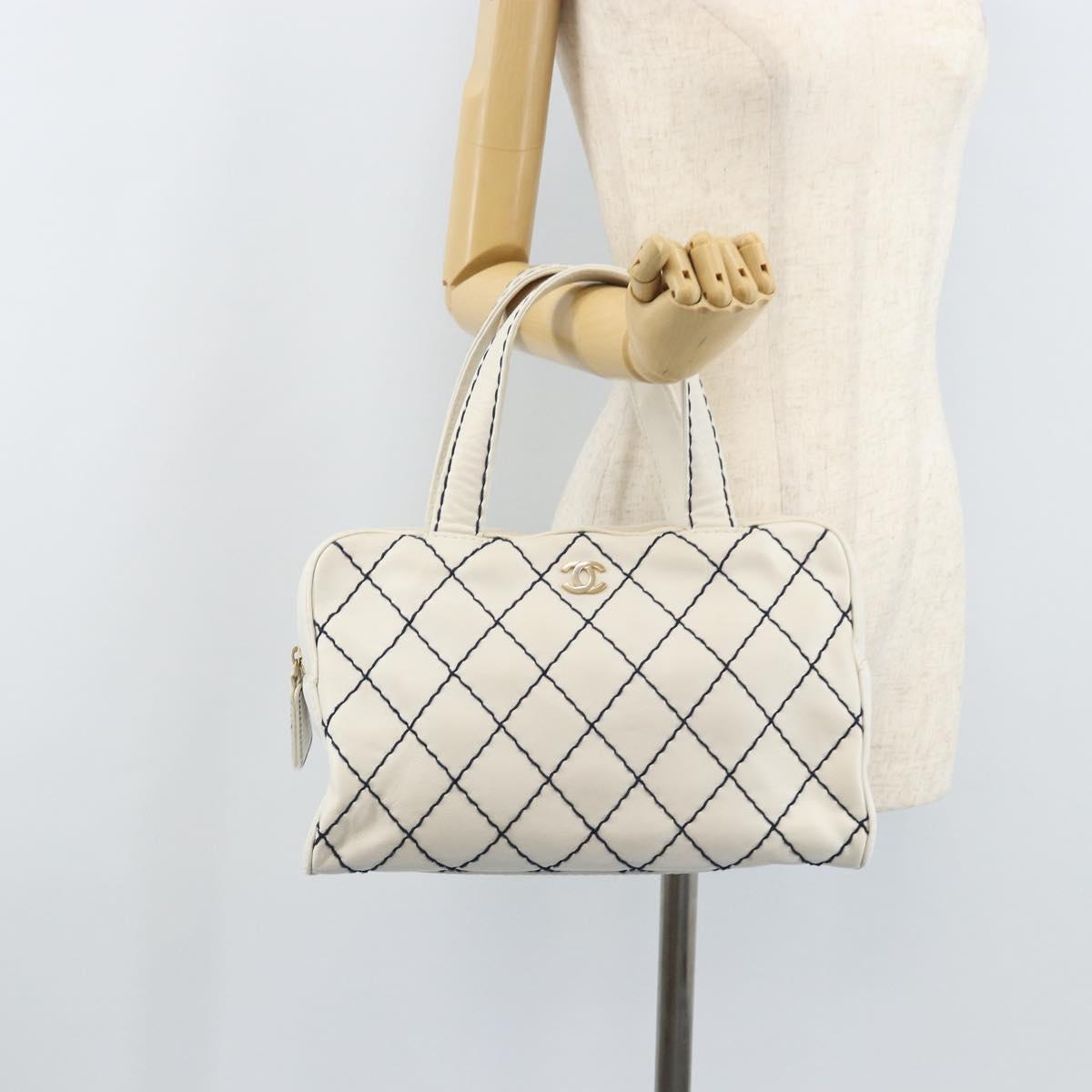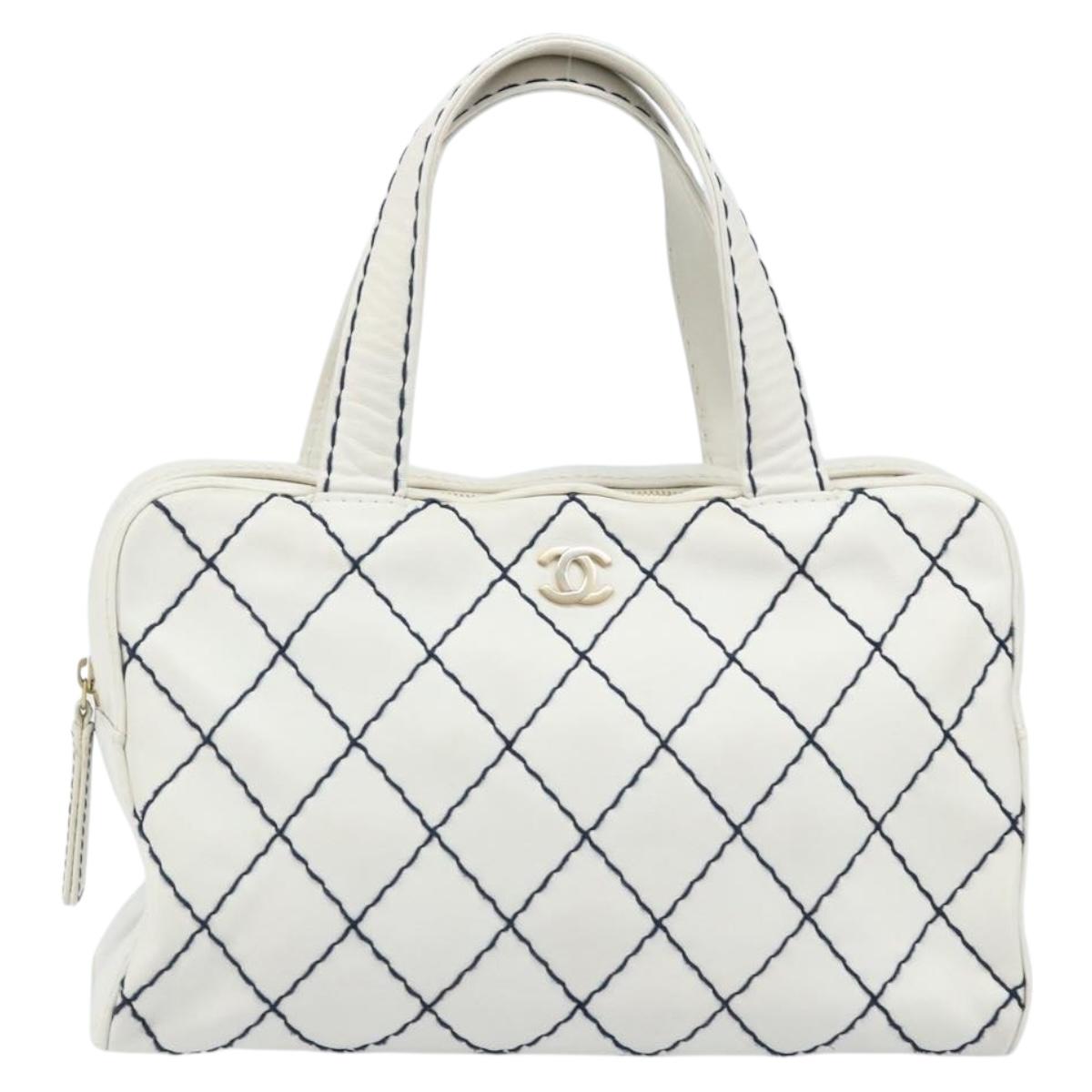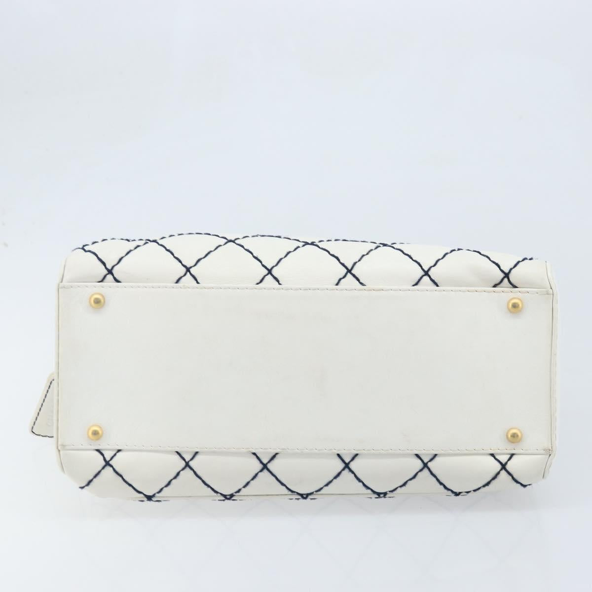 CHANEL Wild Stitch Hand Bag Leather White Gold CC Auth BAZ253A