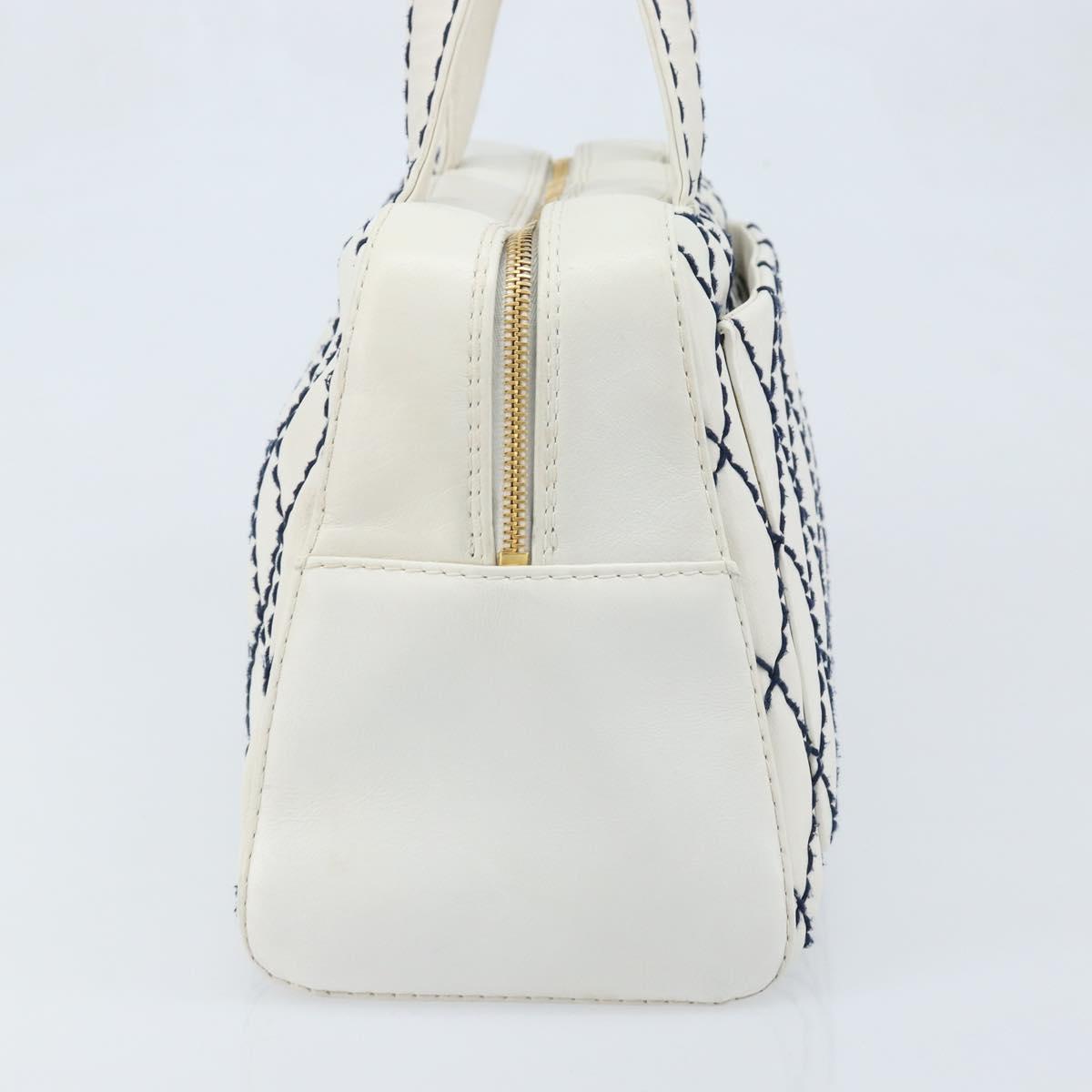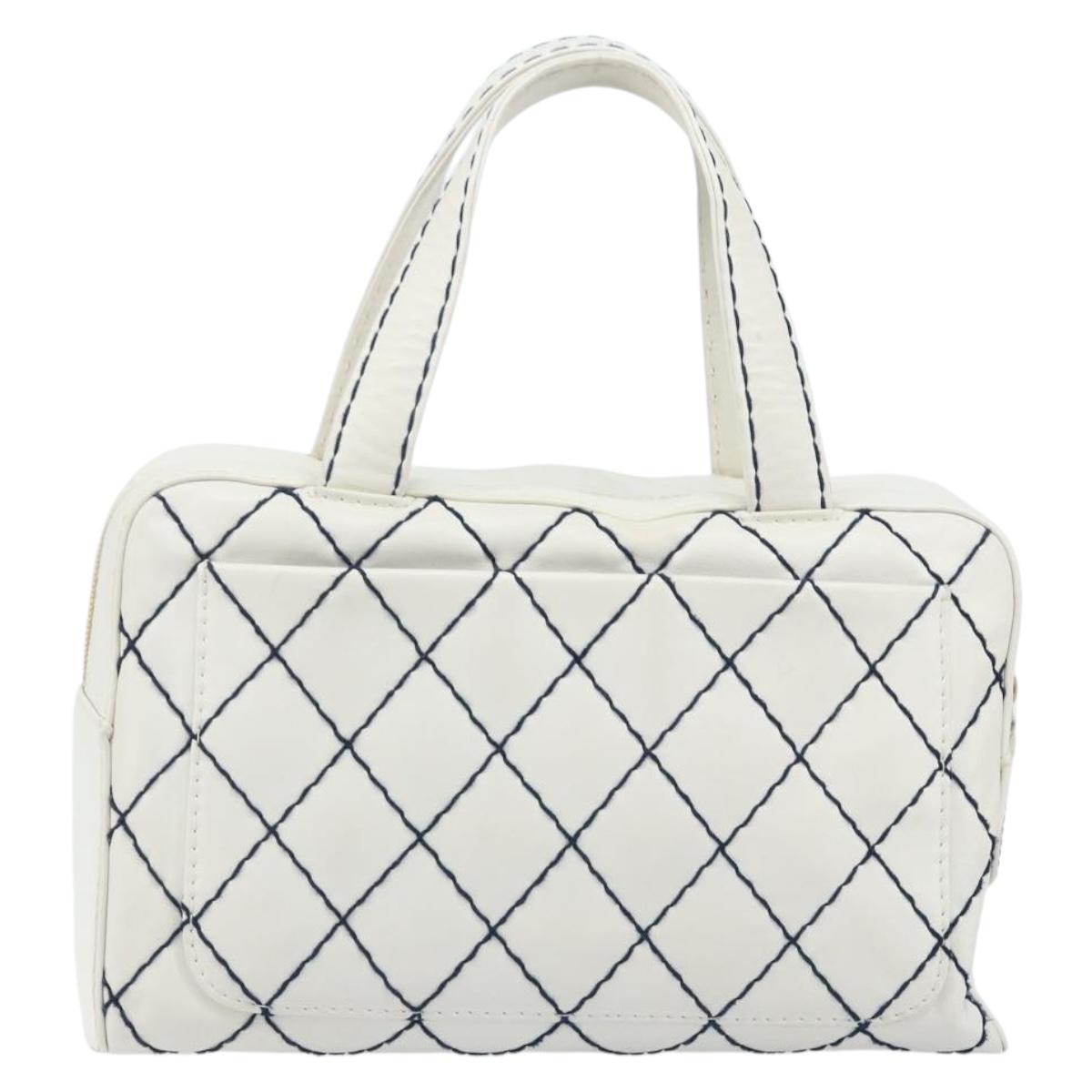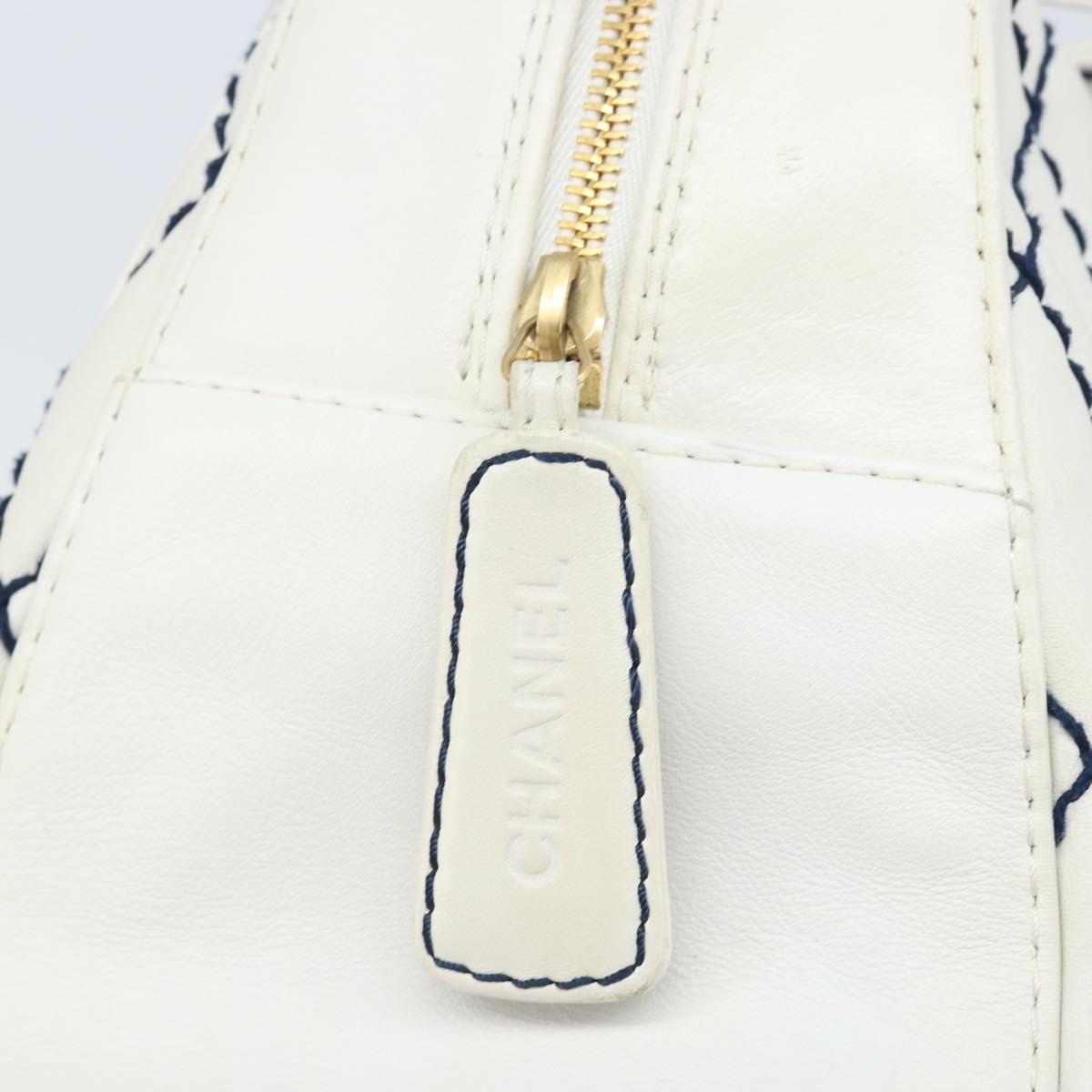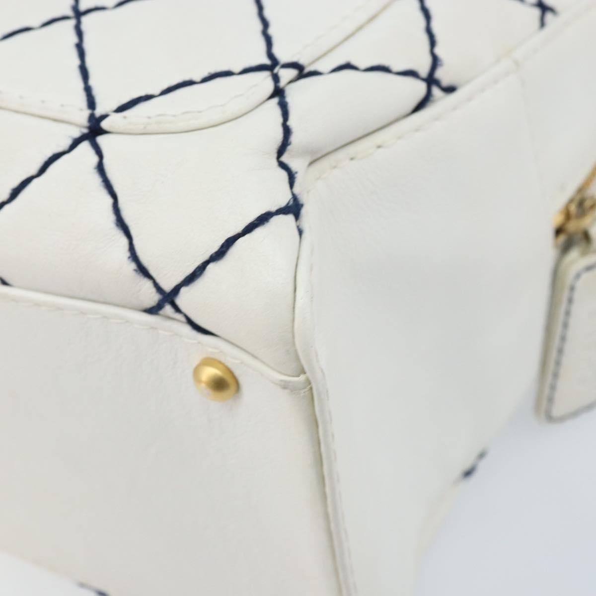 CHANEL Wild Stitch Hand Bag Leather White Gold CC Auth BAZ253A